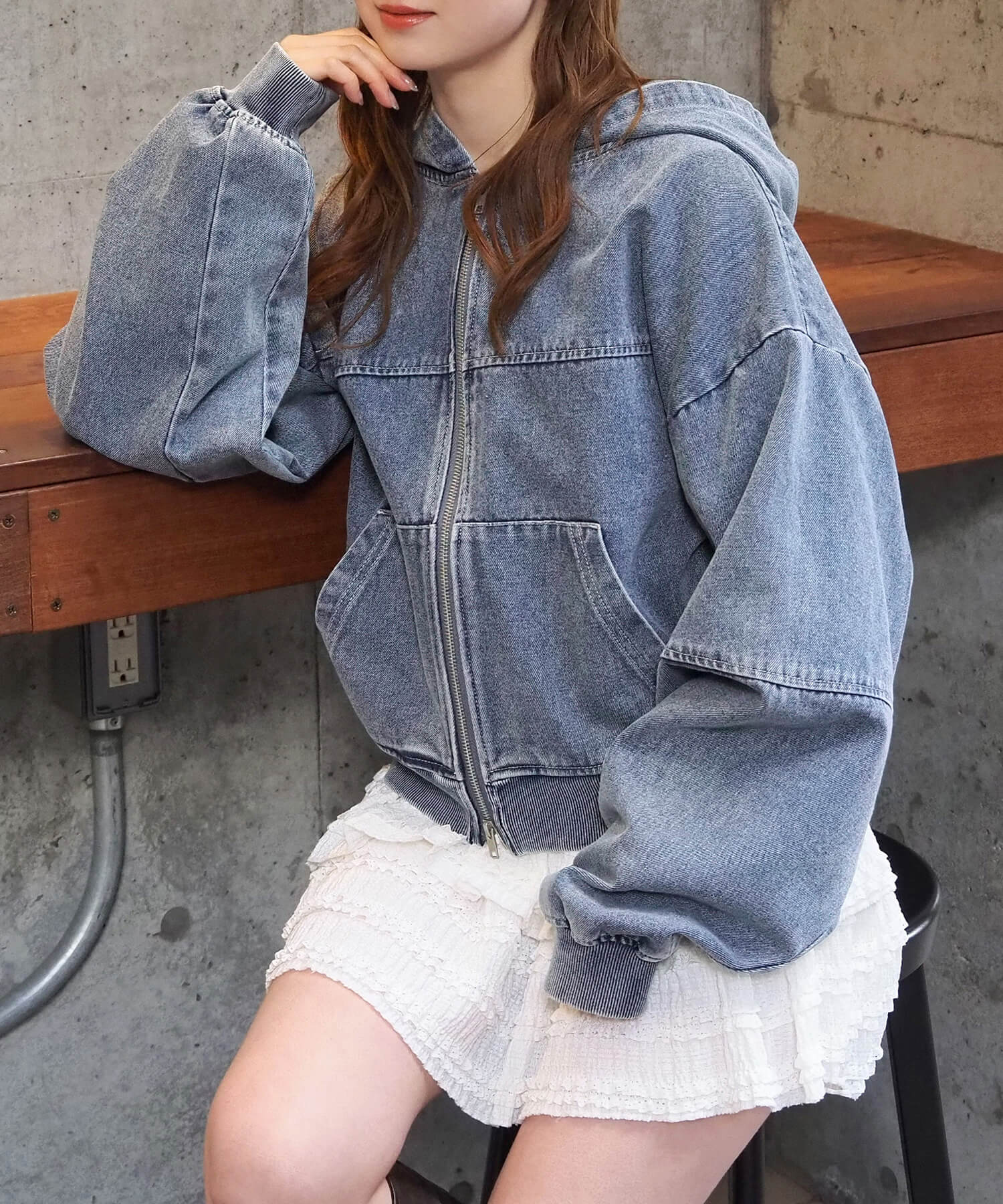 【web限定アイテム】袖ライン畦編みジップブルゾン
