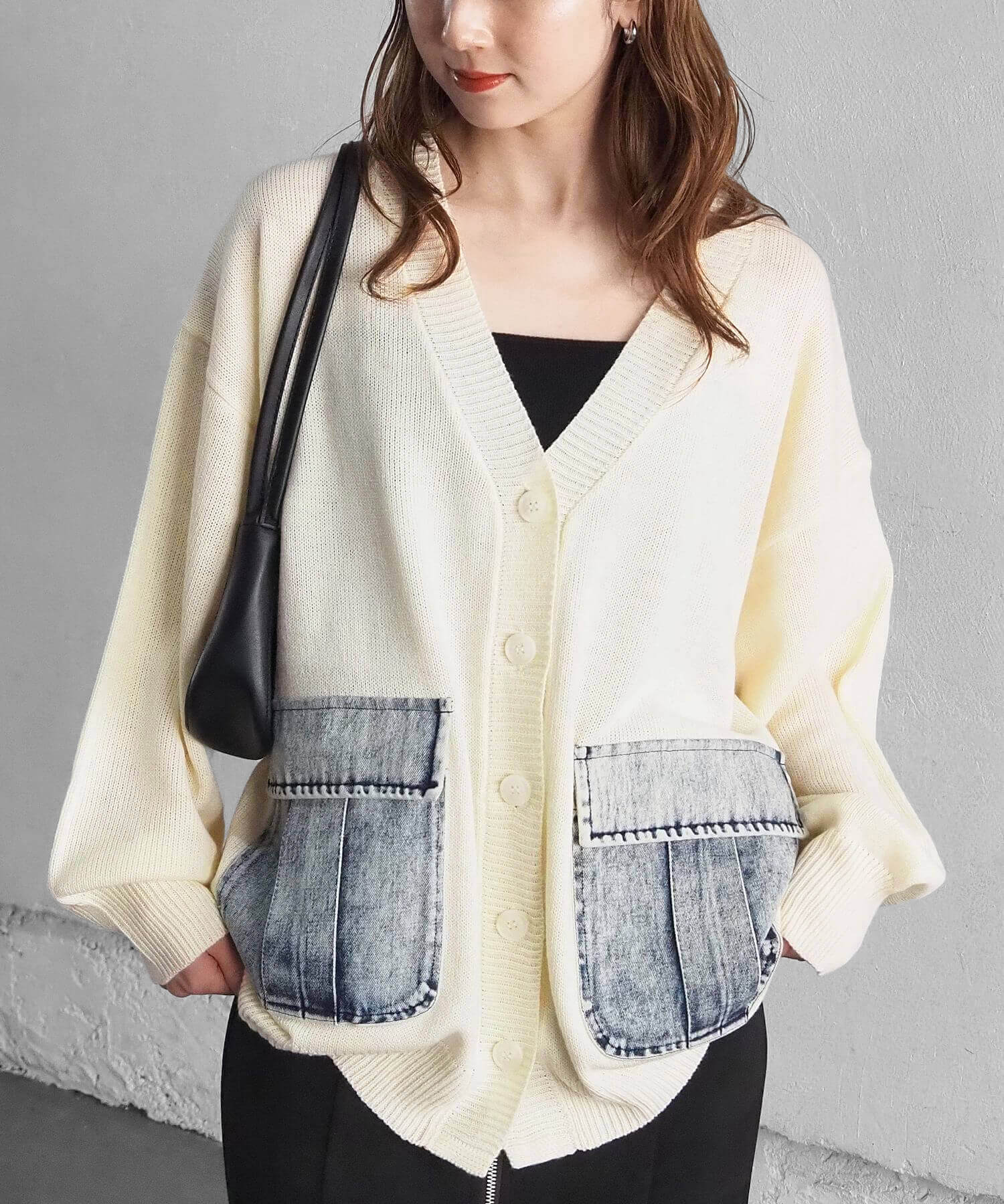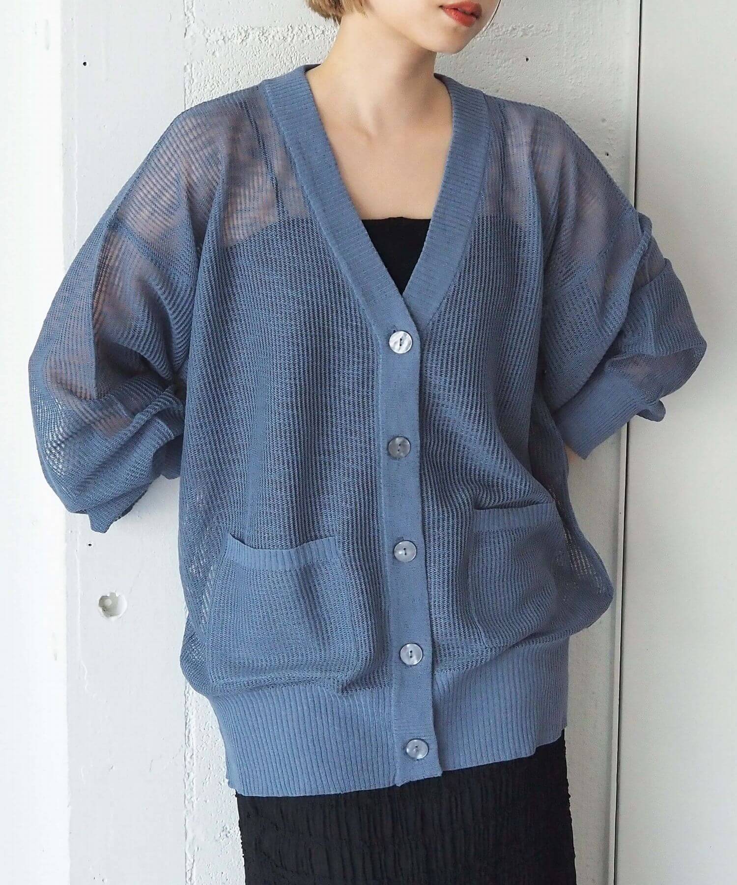 [3月31日販売開始!!] シアー配色クルーネックカーディガン