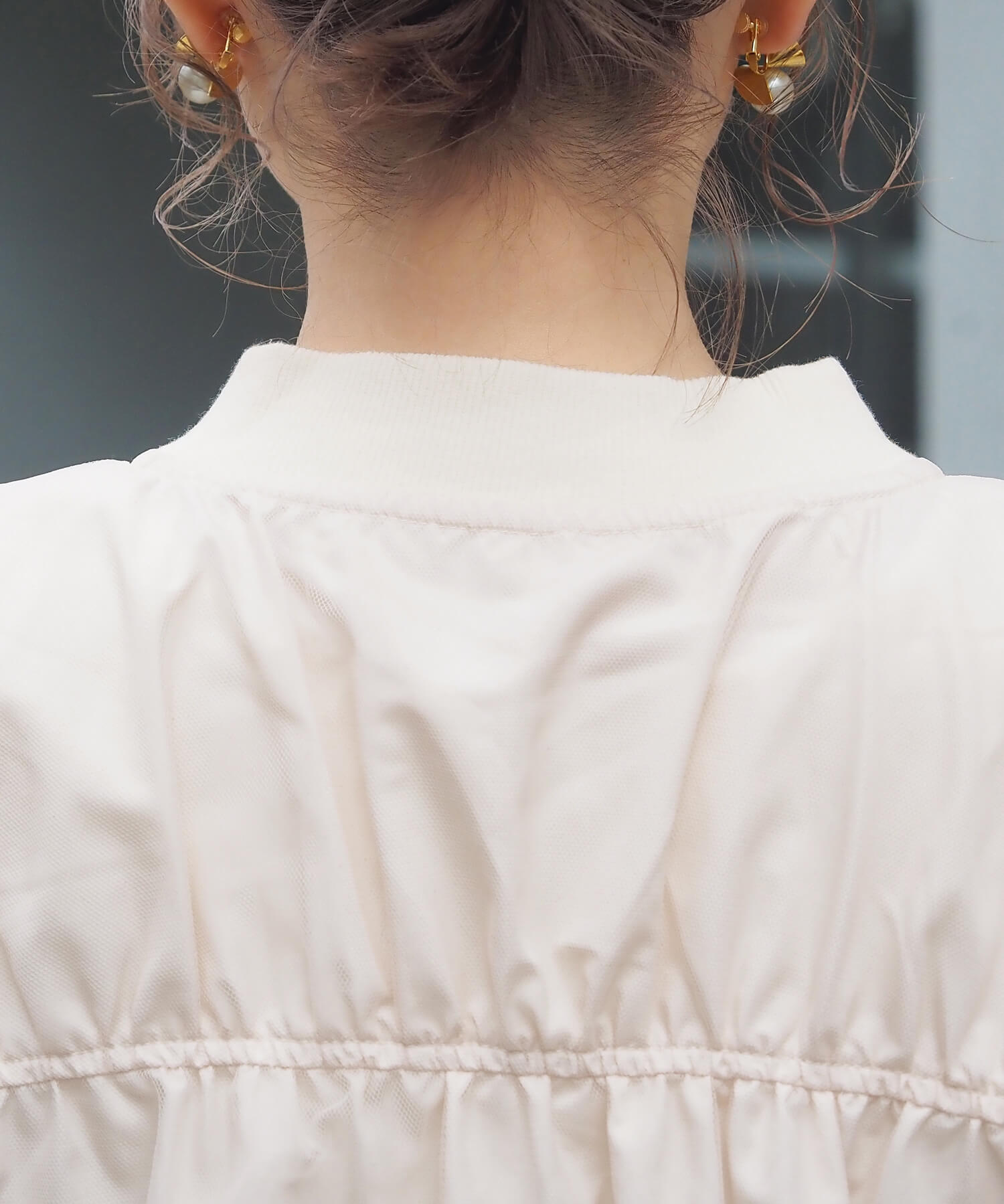 ・抜き衿でざっくり羽織ると、袖から背中にかけてのギャザーのボリュームが引き立ち可愛く着て頂けます。