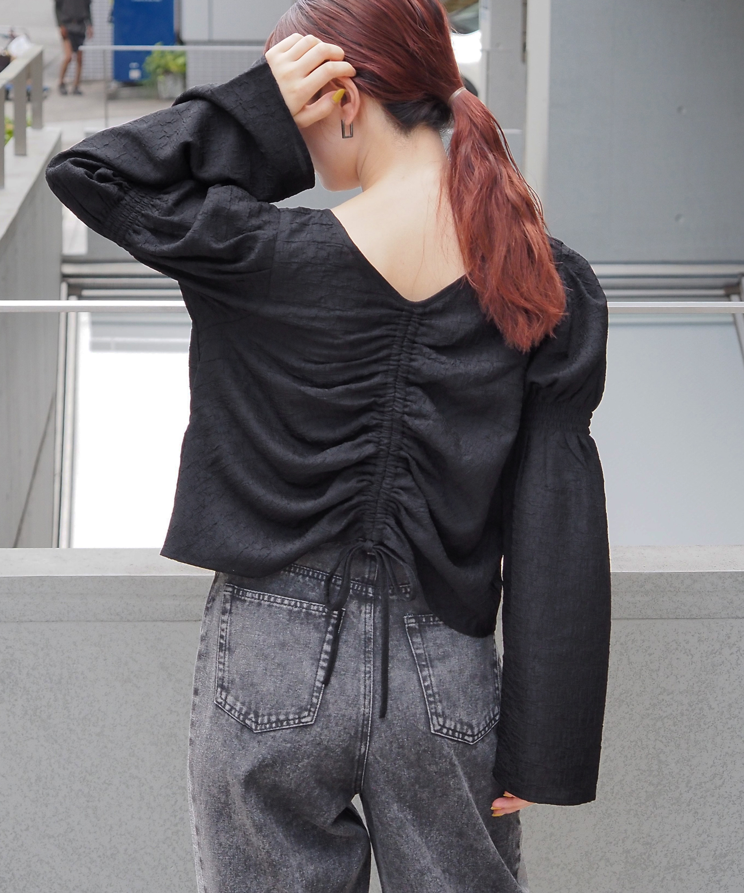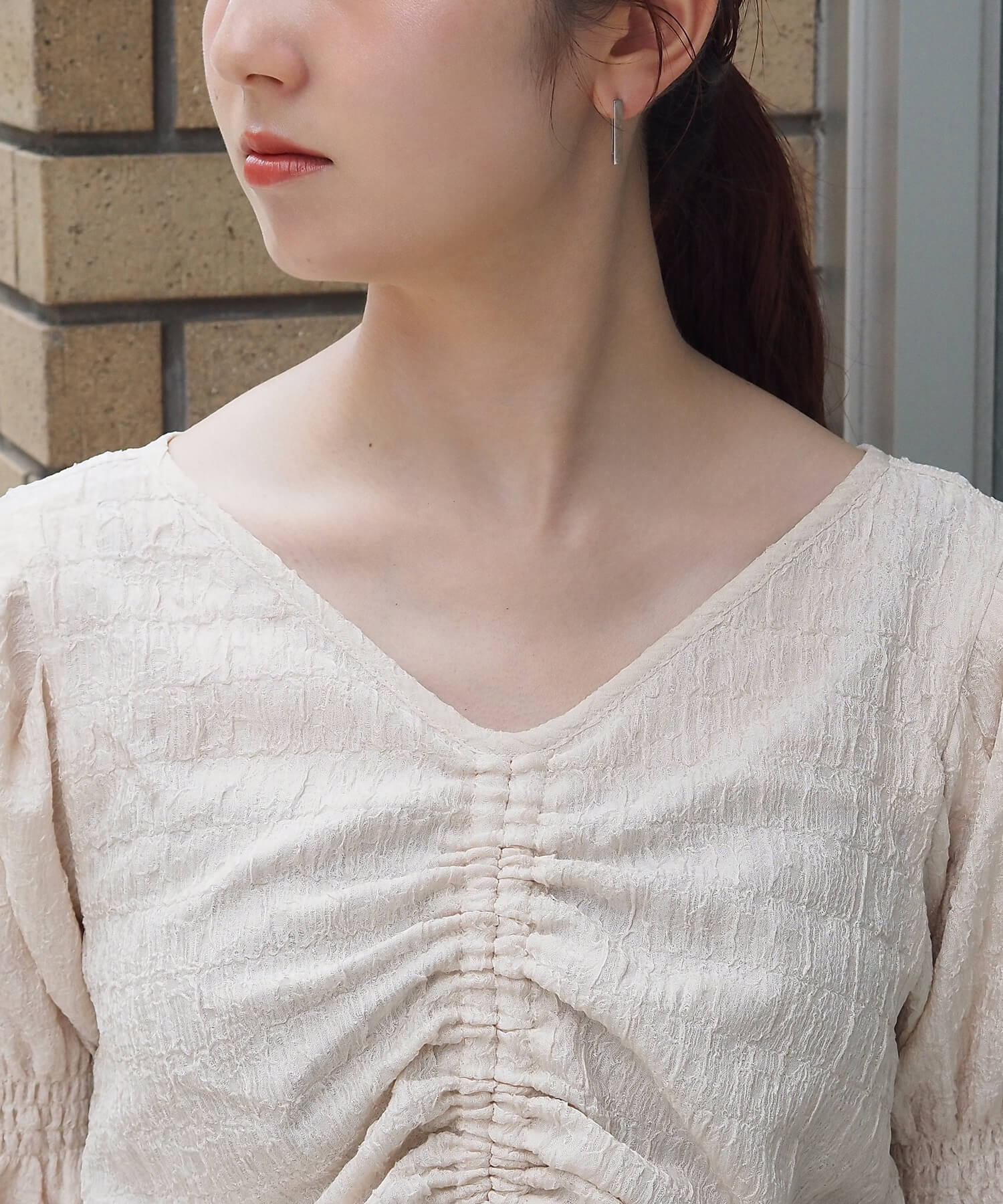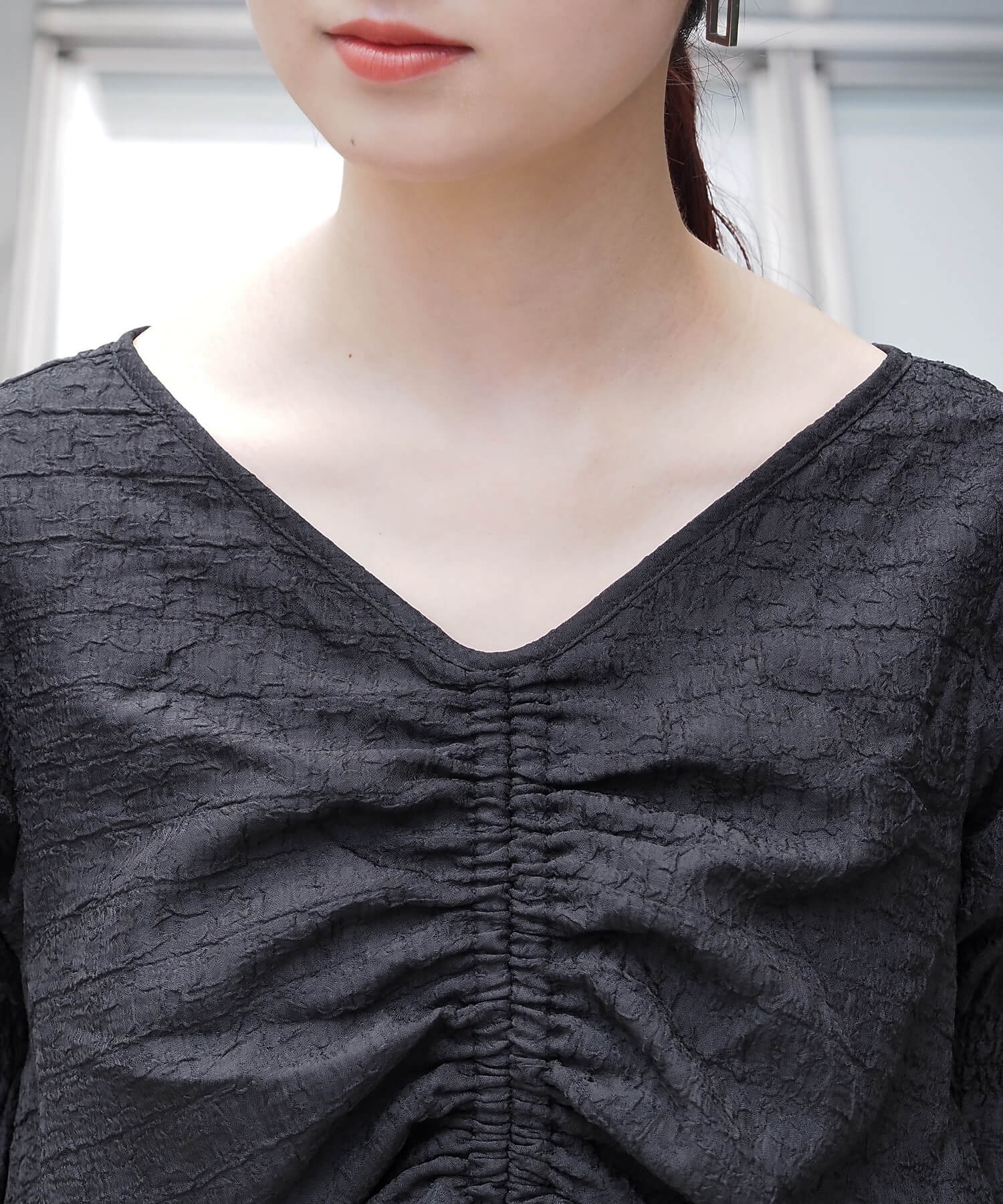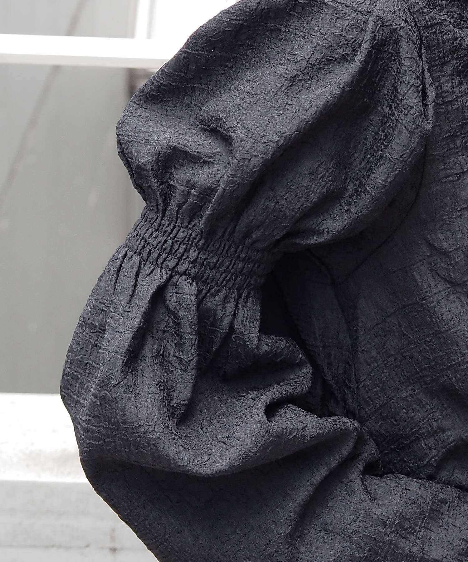 ・袖にはシャーリング加工をプラスし、適度なボリューム感とフレアなラインが好バランスなシルエットに。