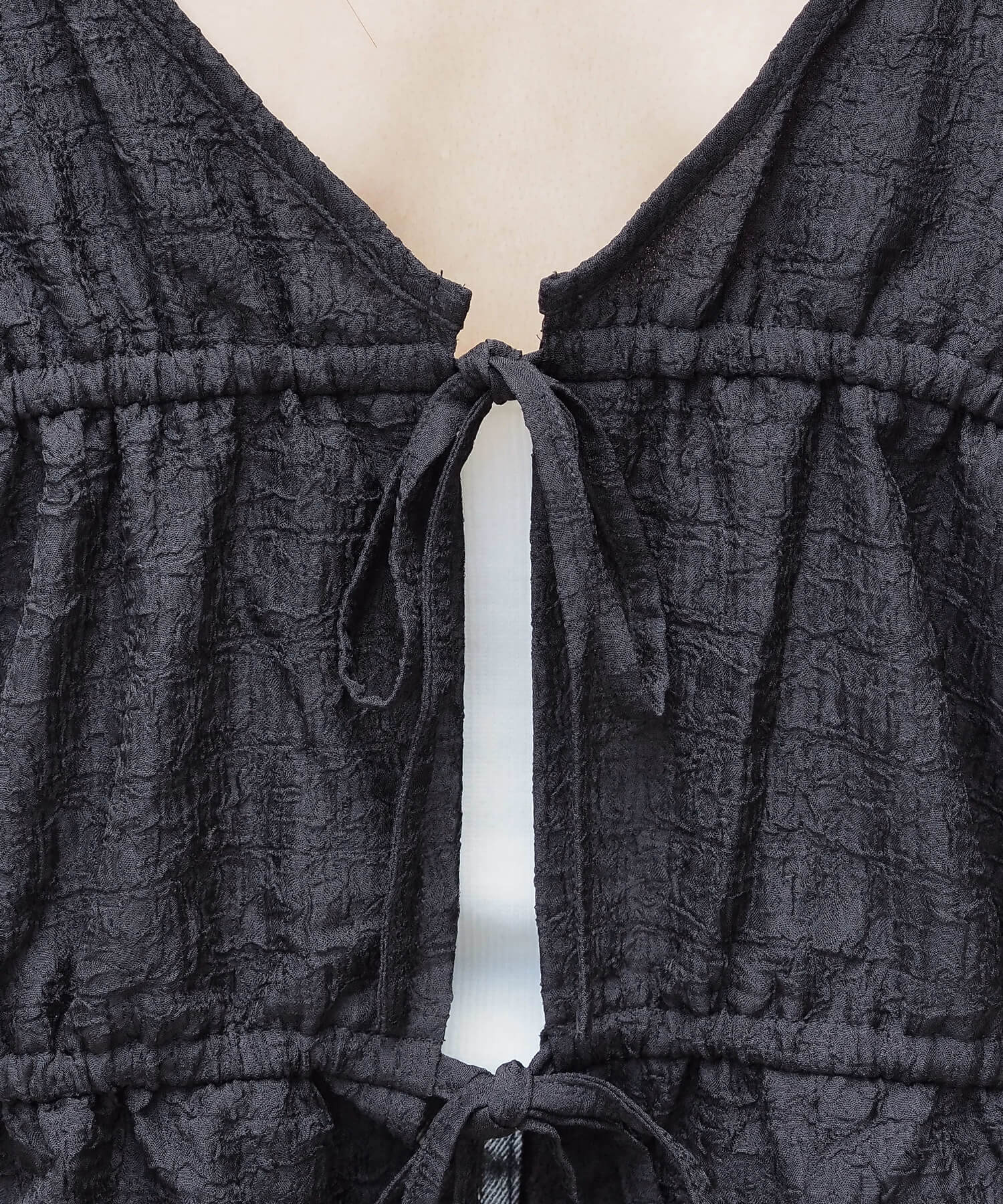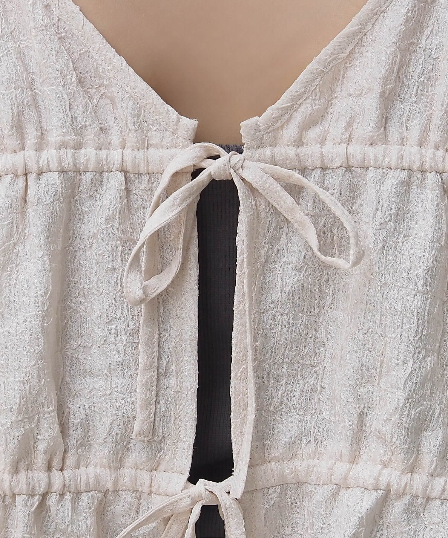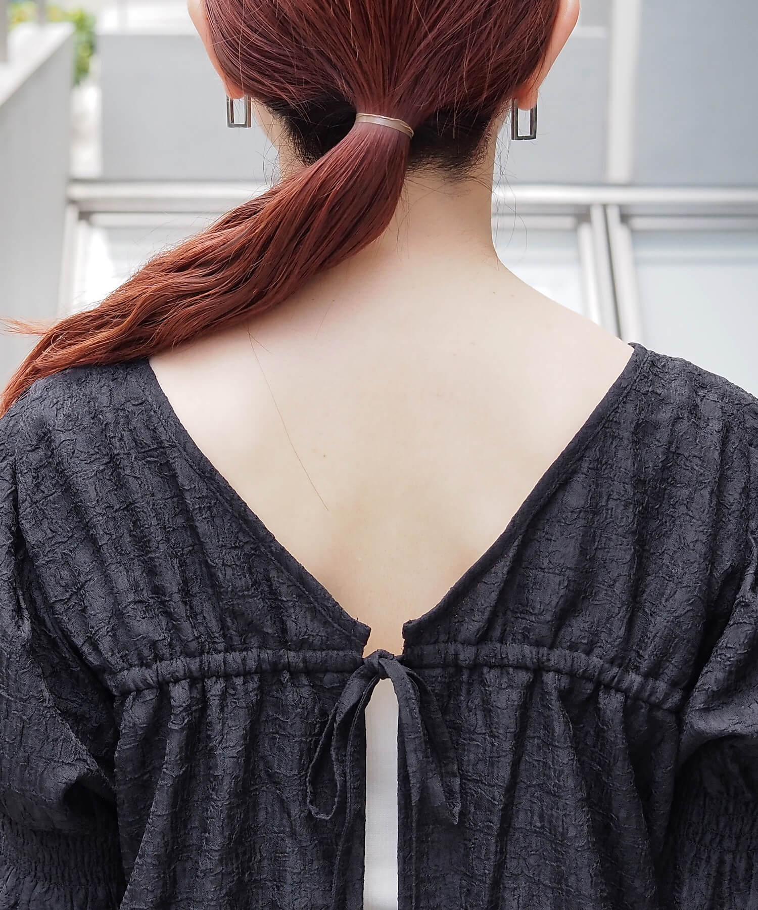 ・フロントドロストやバックのダブルリボン、パフ袖など女性らしいディテールをぎゅっと詰め込んだこだわりの1枚。