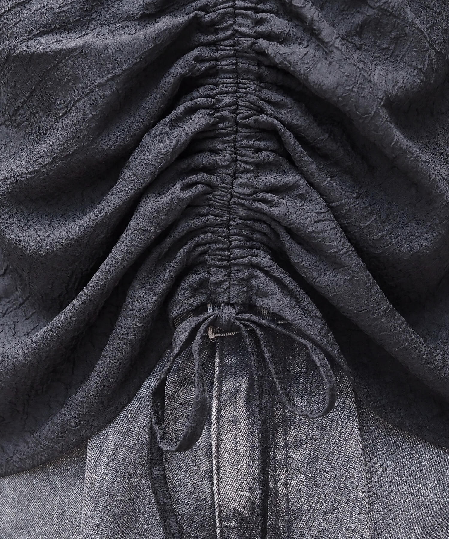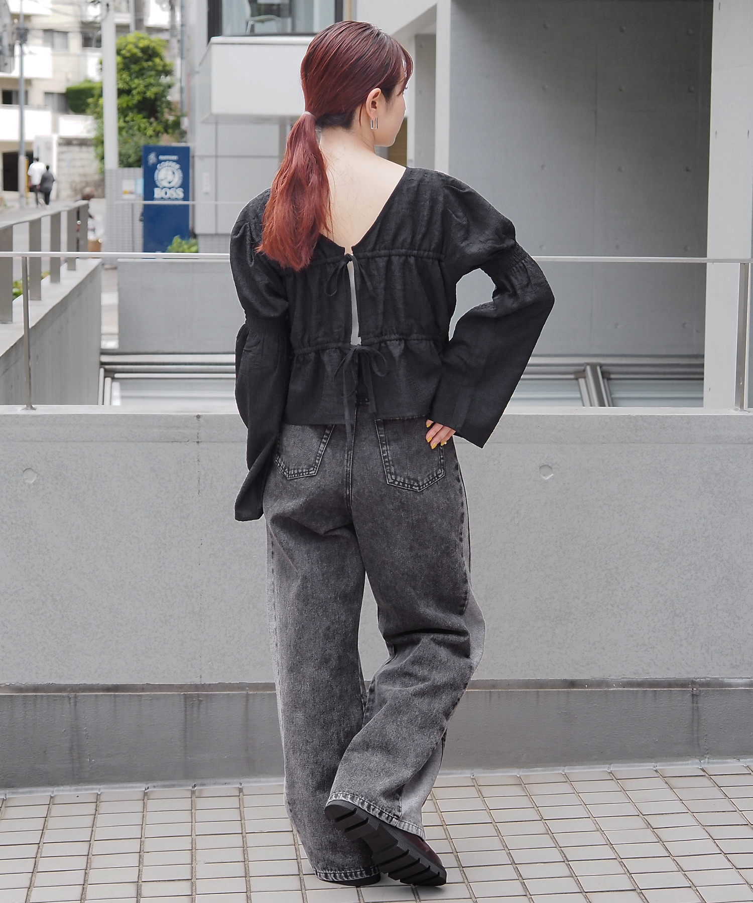 ・ドロストリングはお好みで絞り具合の調節が可能。ギャザーをたっぷりと寄せたり、あえてゆるめにドローコードを垂らしたりと雰囲気を変えていただけます。