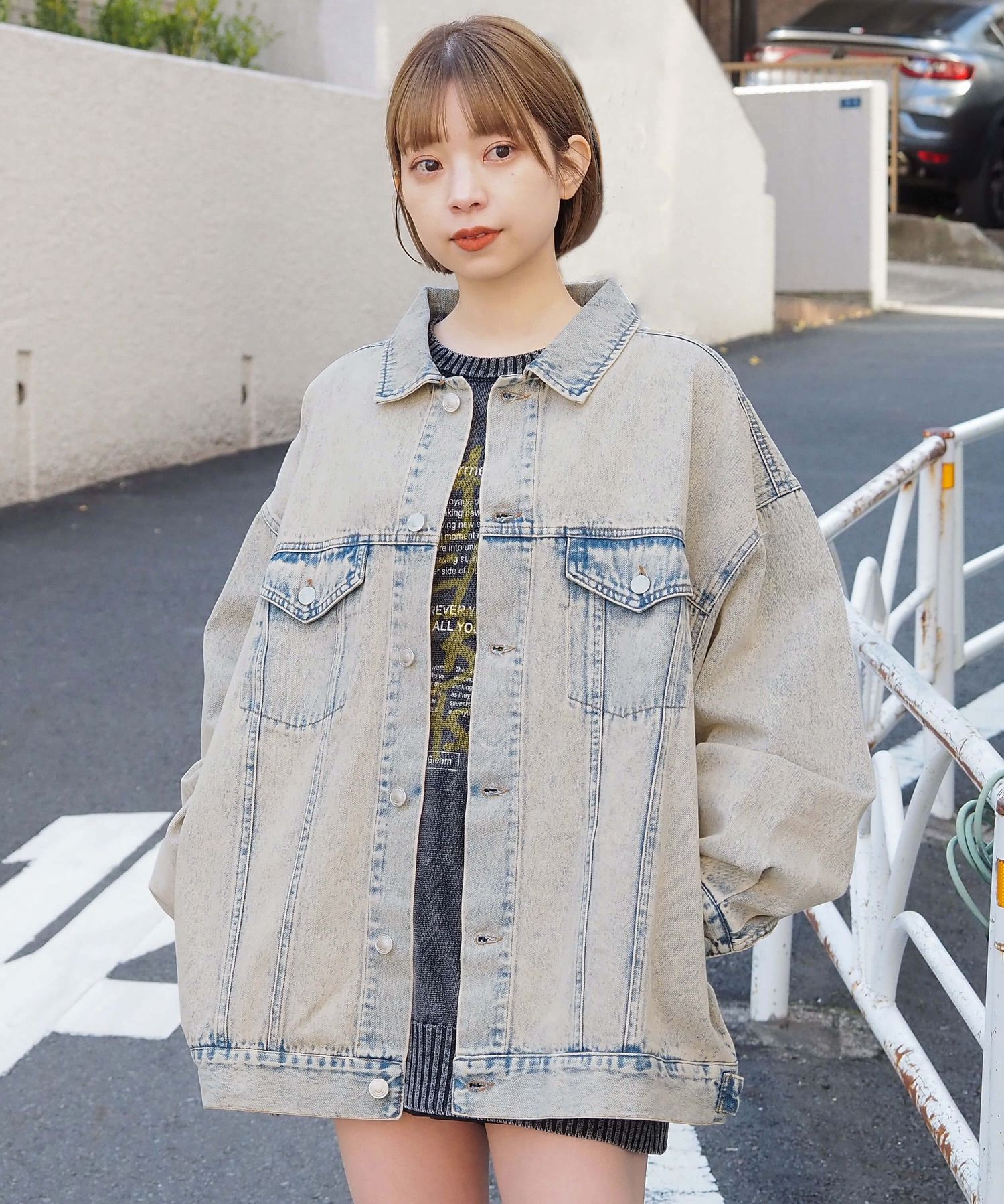 ・春の着こなしに欠かせないデニムジャケット。ビッグシルエットでこなれ感が出ます。
