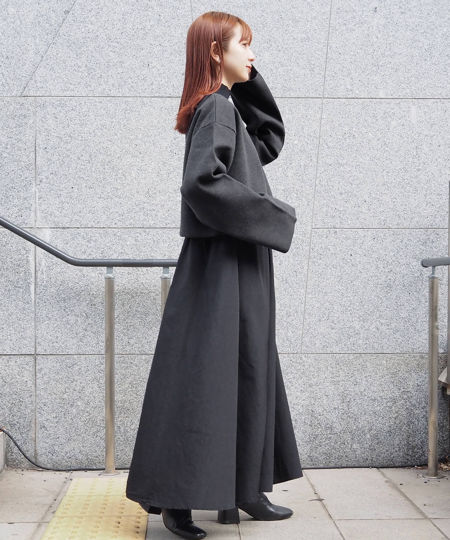 ・ウールライクなトップスは、コンパクトなショート丈とこなれ感のあるワイドスリーブがポイント。アクセサリーいらずのハーフジップデザインで、着こなしがぐっと格上げされます。