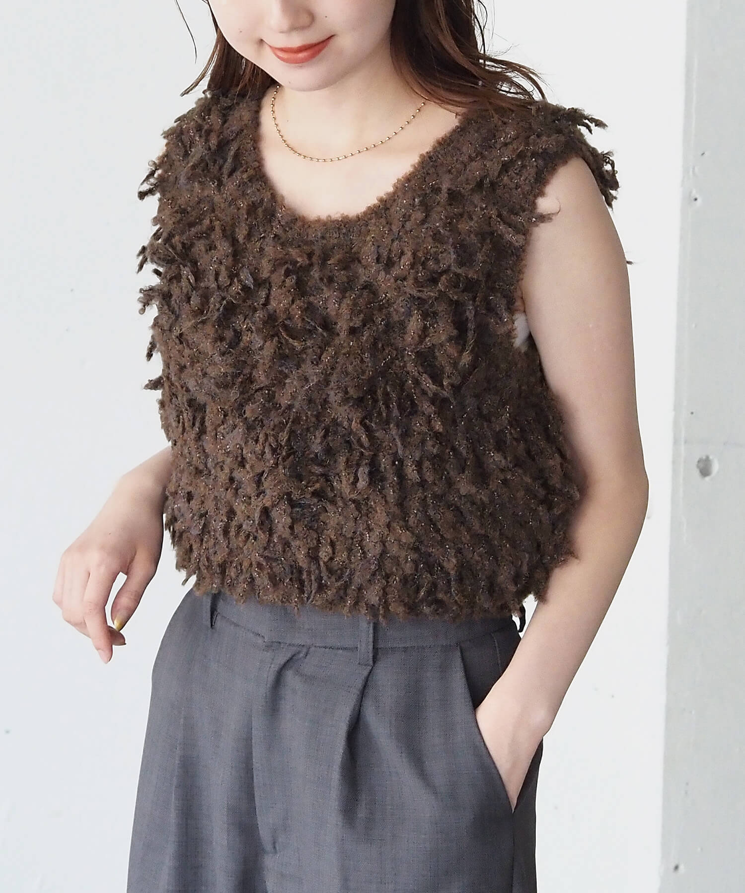 ・ふんわりとしたフェザーヤーンが華やかなキャミソールビスチェです。