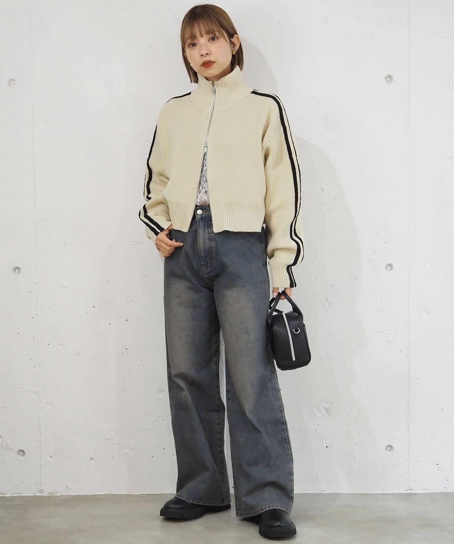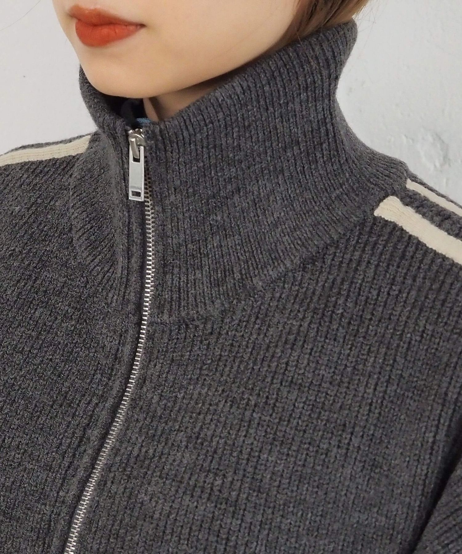 ・ダブルジップとラインデザインがポイントのショート丈ニットです。