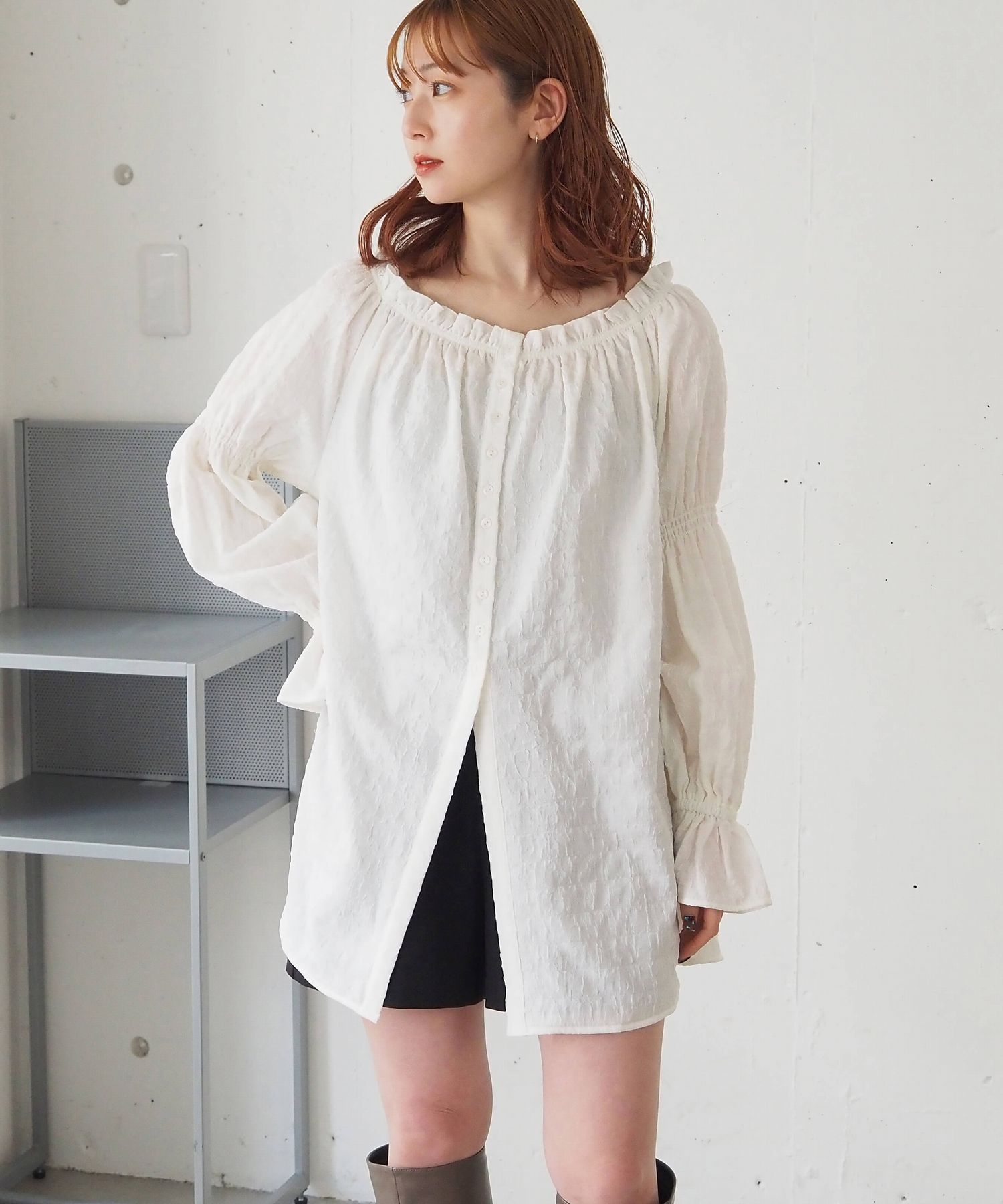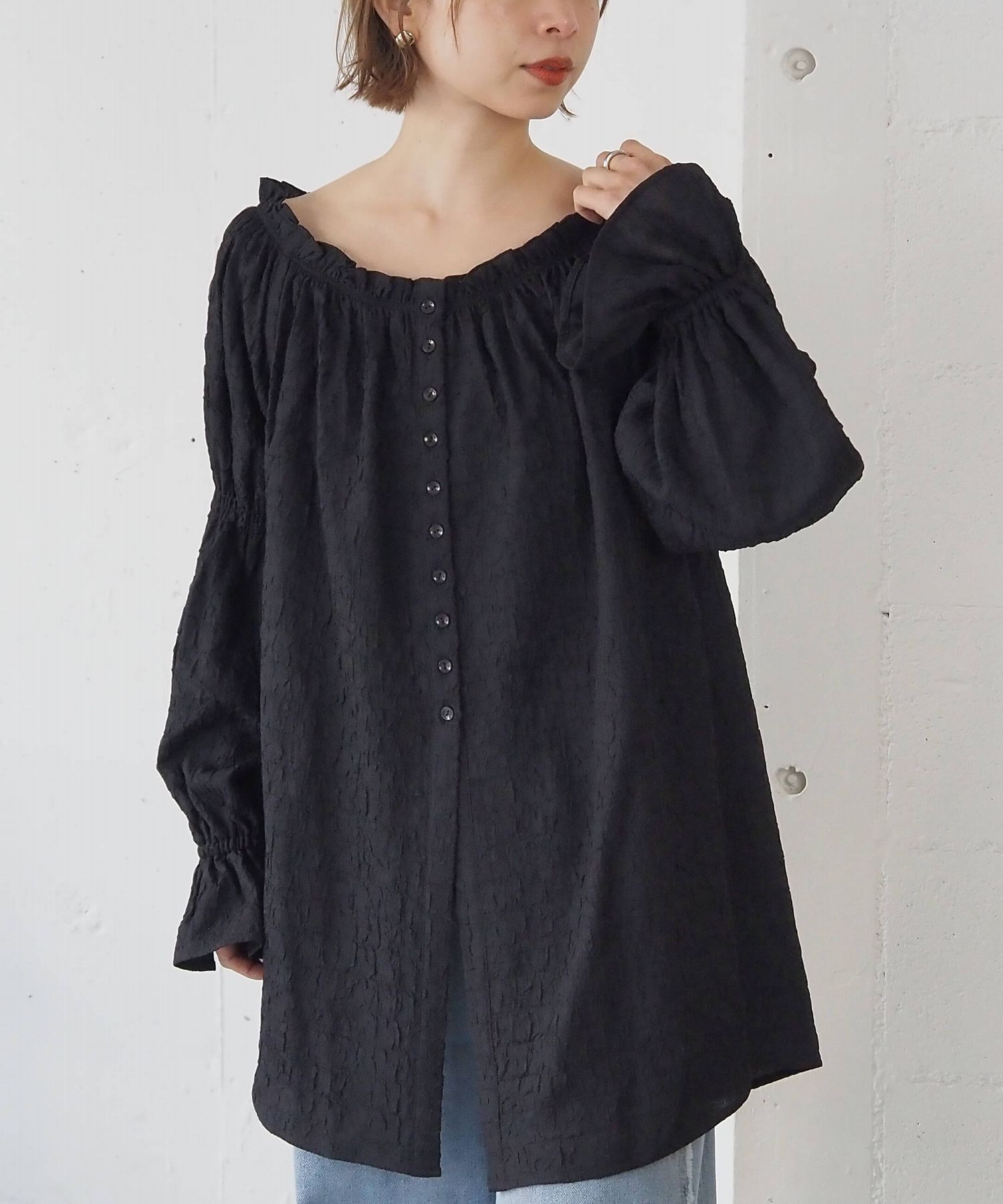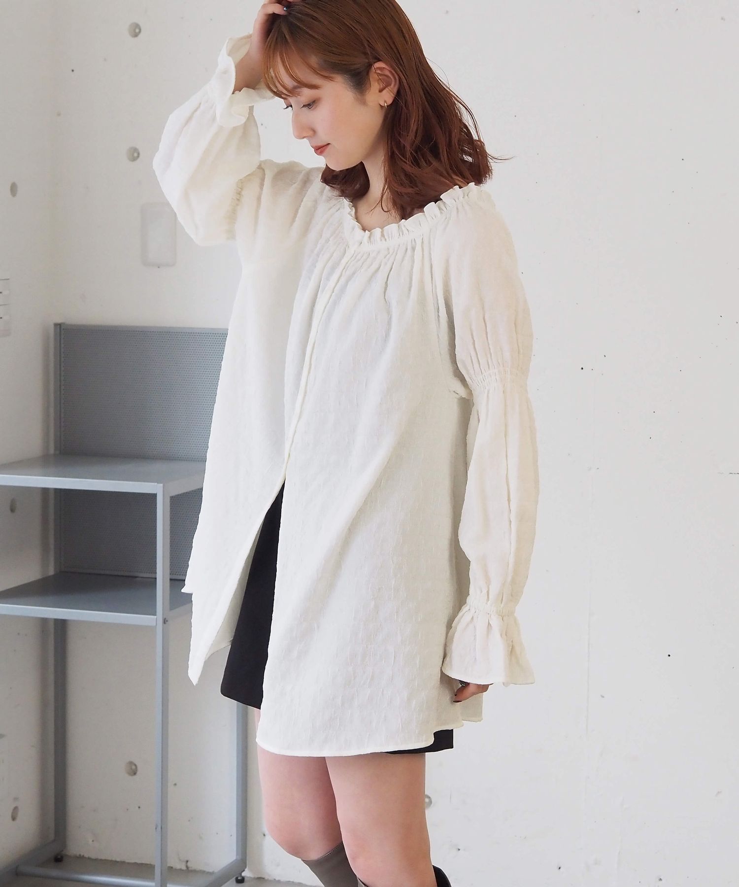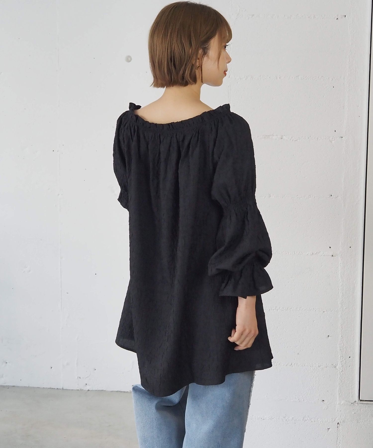 凸凹生地がかわいいトレンドライクなチュニックブラウス