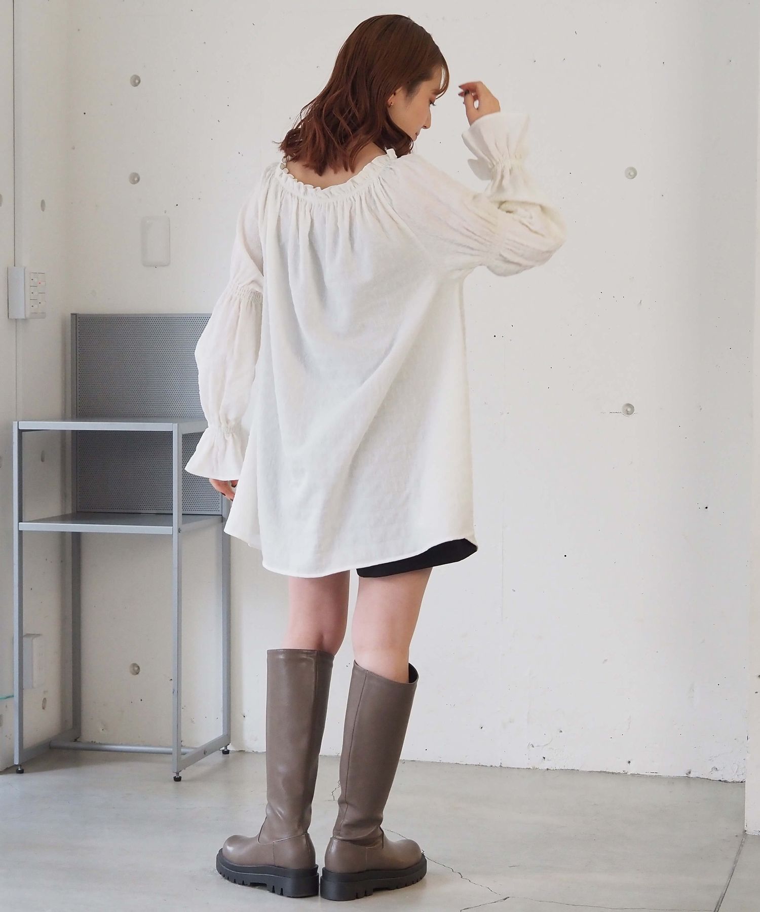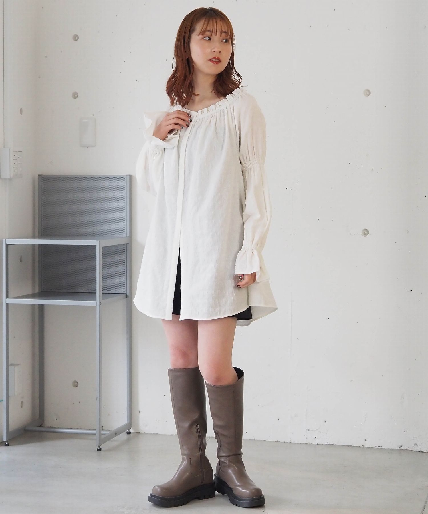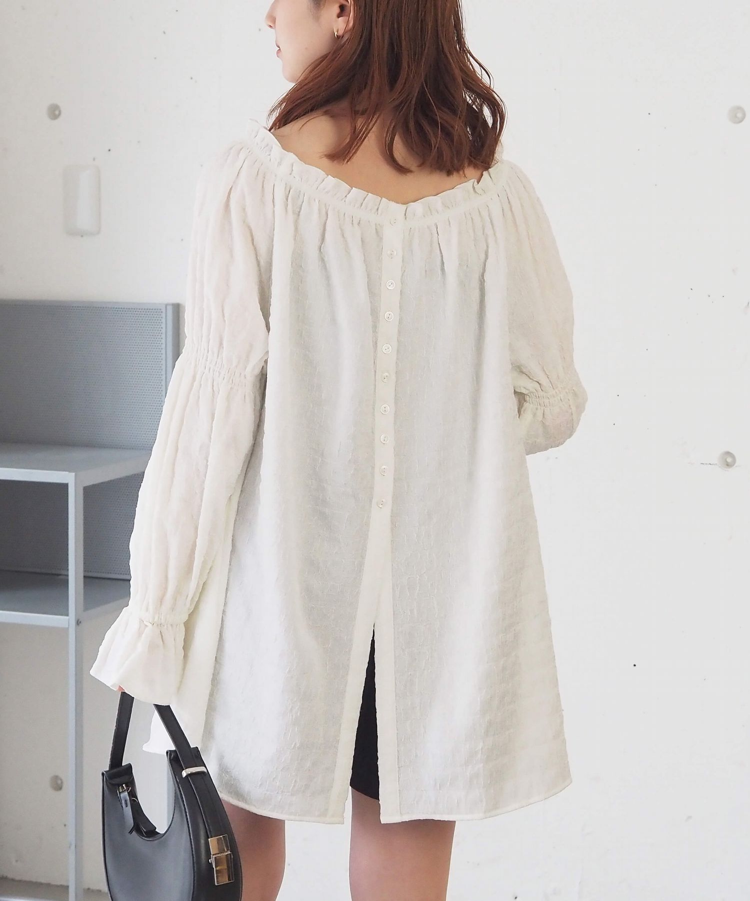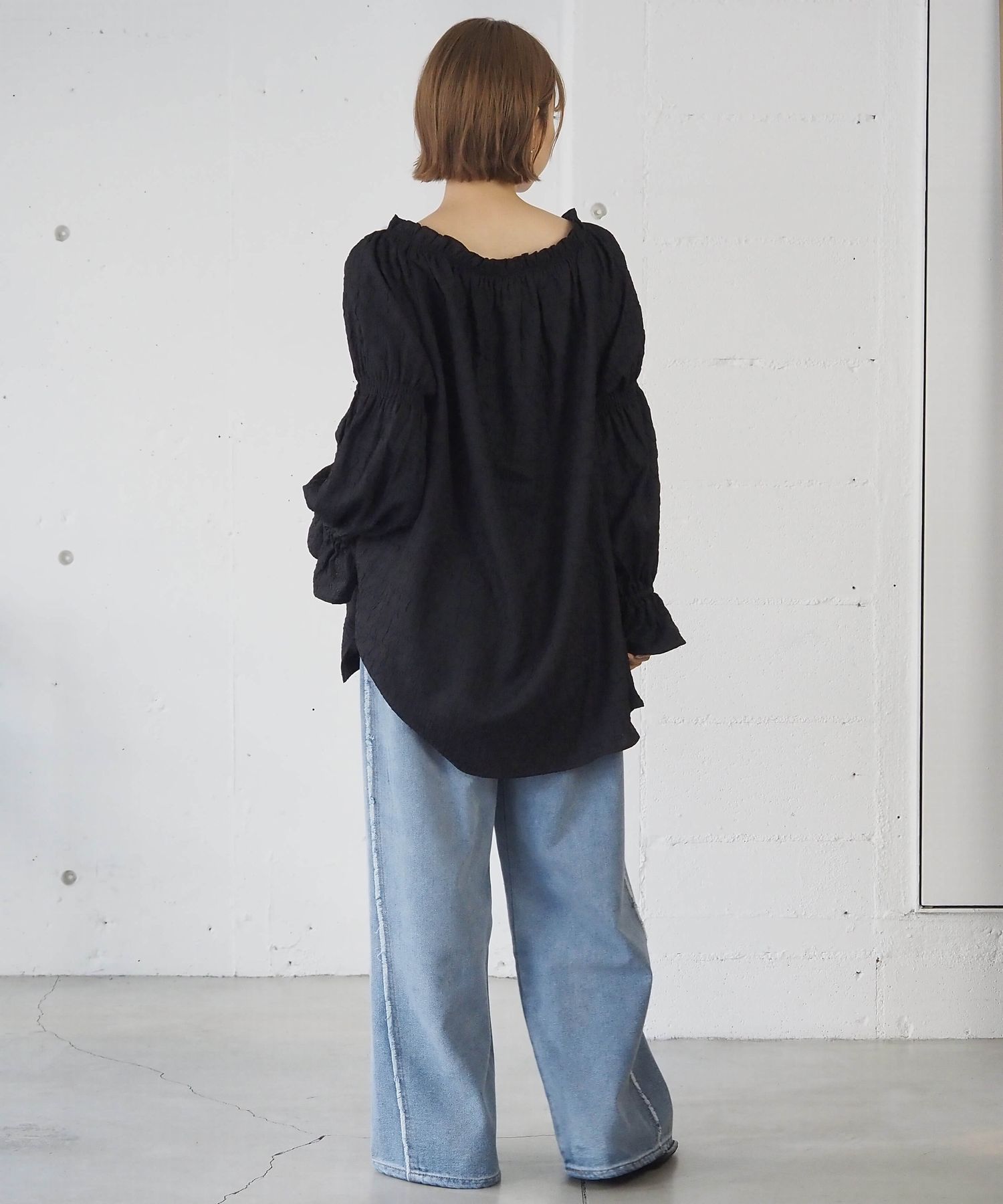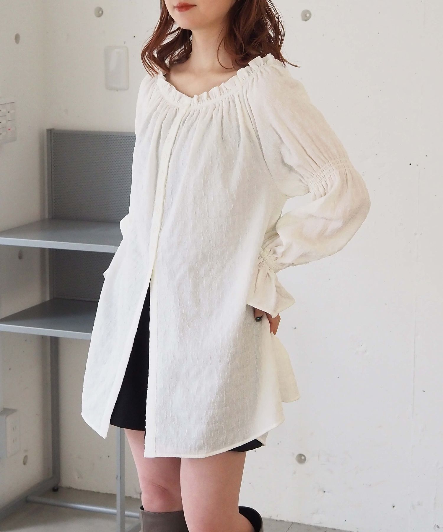 凸凹生地がかわいいトレンドライクなチュニックブラウス