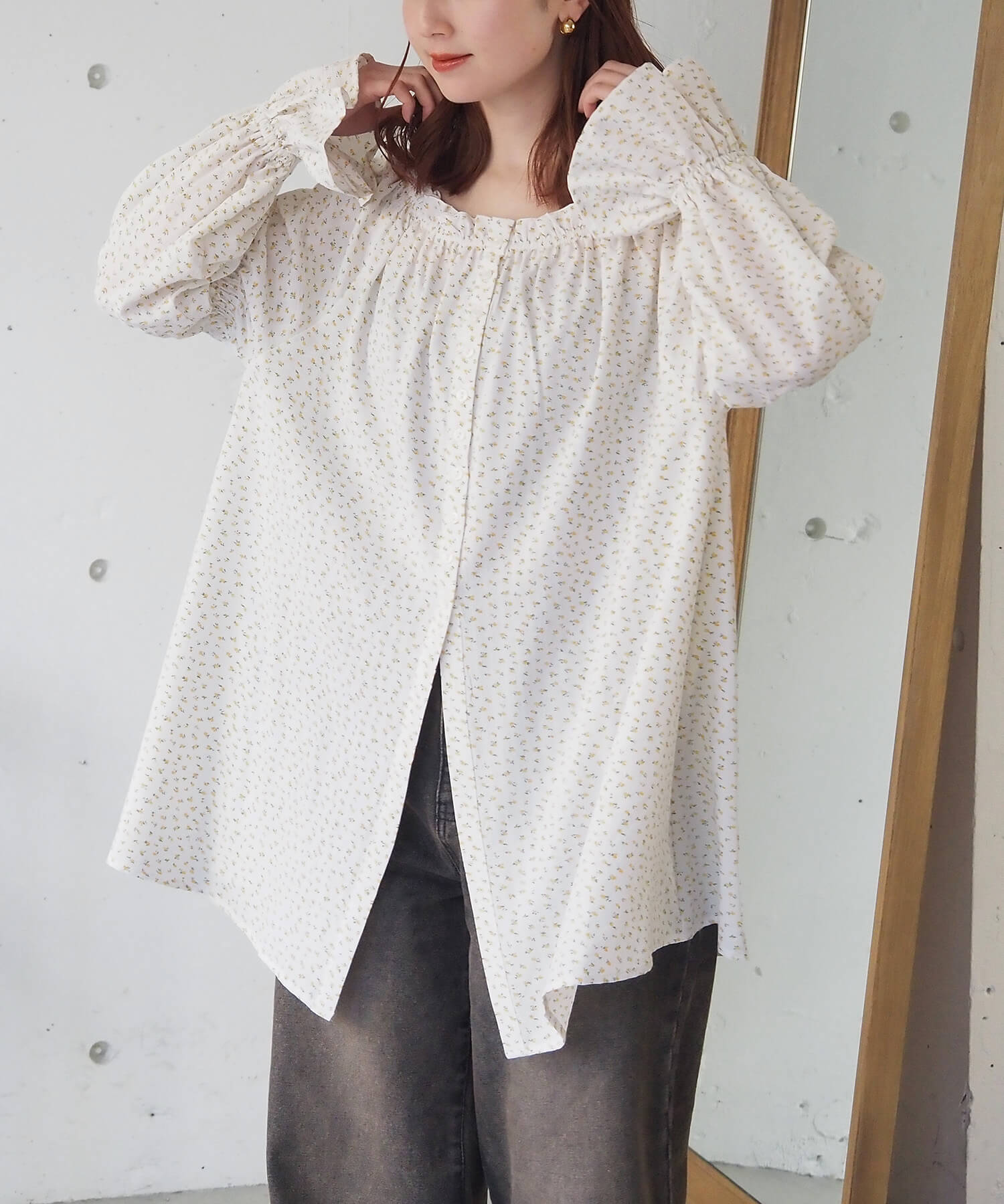 ・マルチwayな着こなしが楽しめるチュニック丈のブラウス。