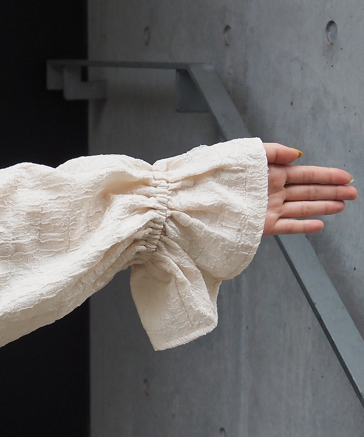 ・シャーリングを加えメリハリを出したキャンディスリーブもポイントです。