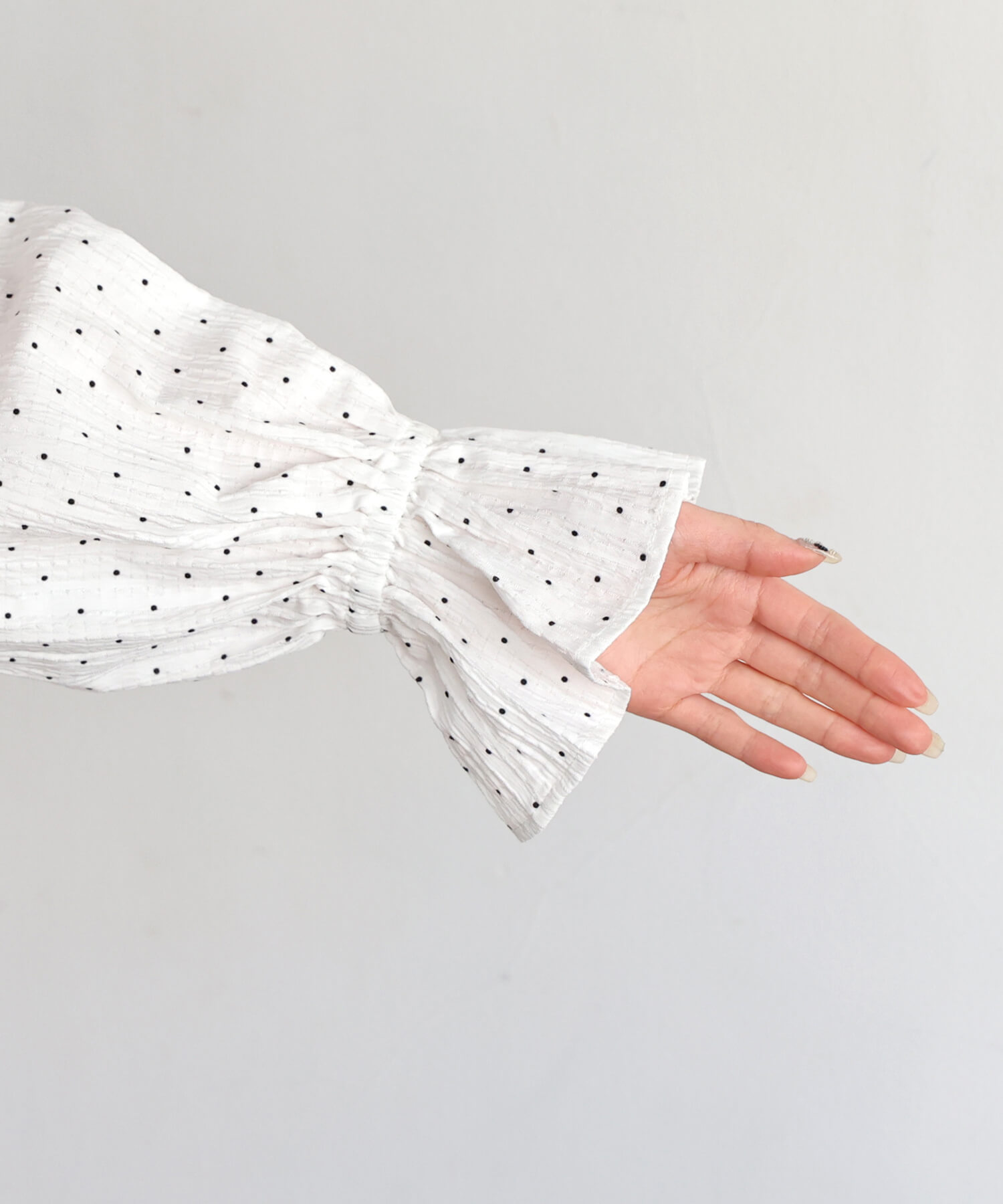 • ホワイト系その他2(ドット柄) model:H155 着用サイズ:FREE