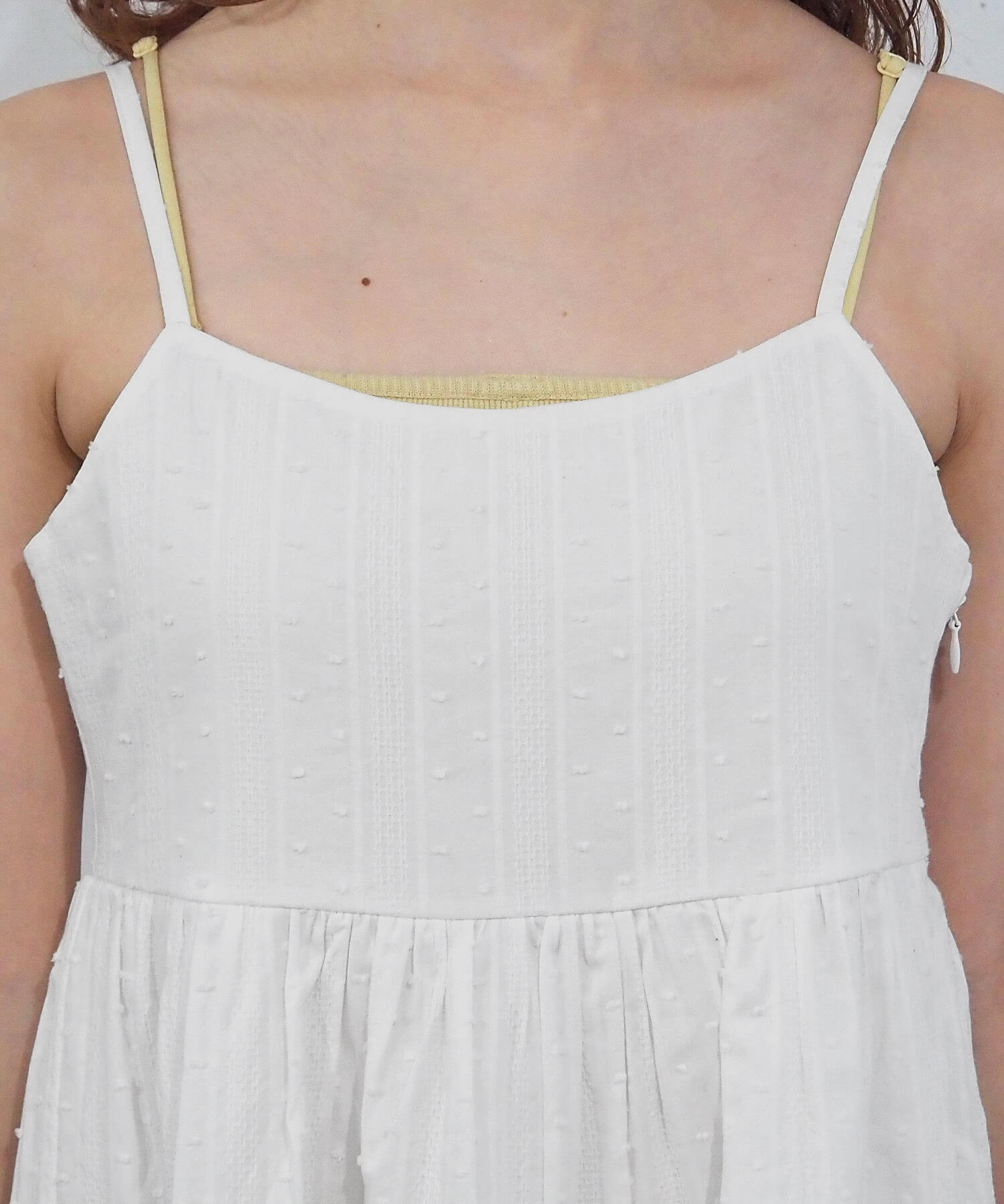 ・表面感が魅力のドビードット生地は春夏らしいコットン100%素材なので、ナチュラルな風合いと爽やかな雰囲気が楽しめます。