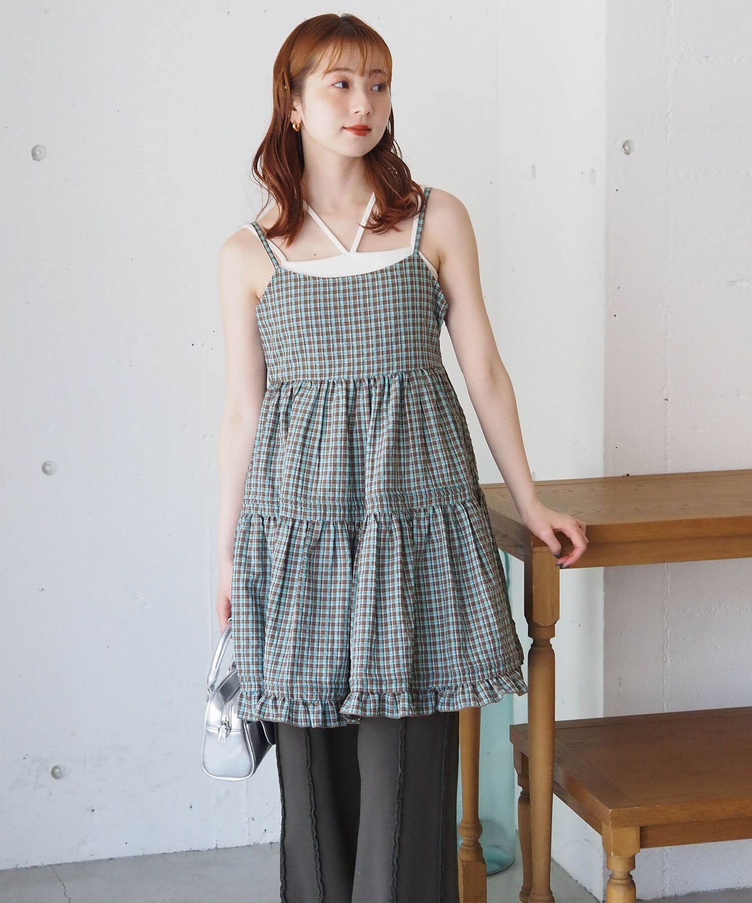 ・タック×フリルが女性らしいミニ丈のキャミソールワンピース。