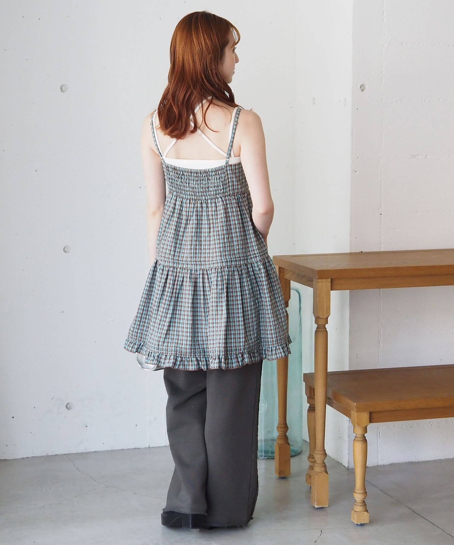 ・ワイドパンツやフレアパンツに合わせてチュニックとして。こなれ感たっぷりのレイヤードコーデが完成します。