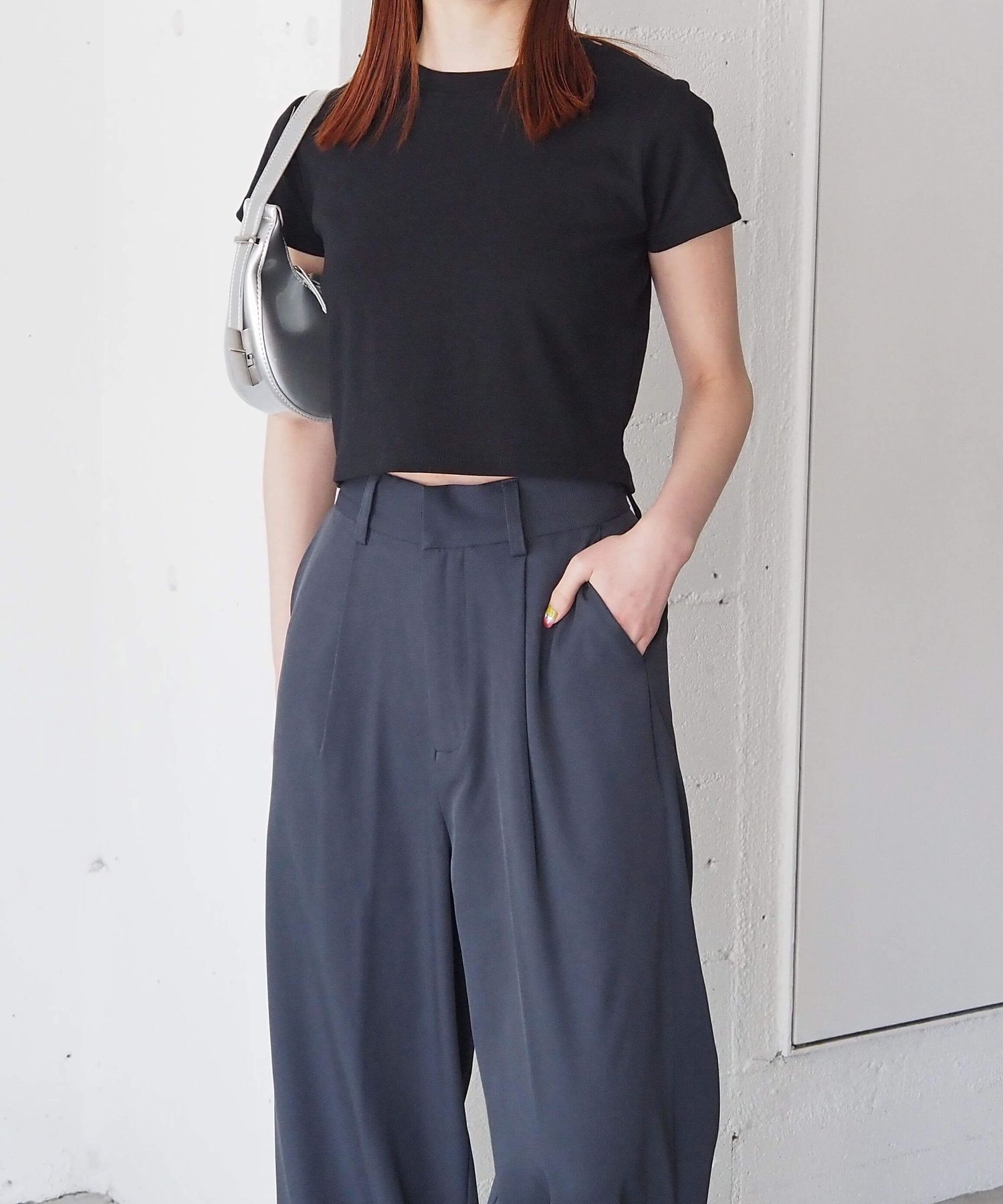 ・大人カジュアルな印象に仕上がる絶妙なクルーネックや、肩周りをすっきりと見せる袖丈もポイント。