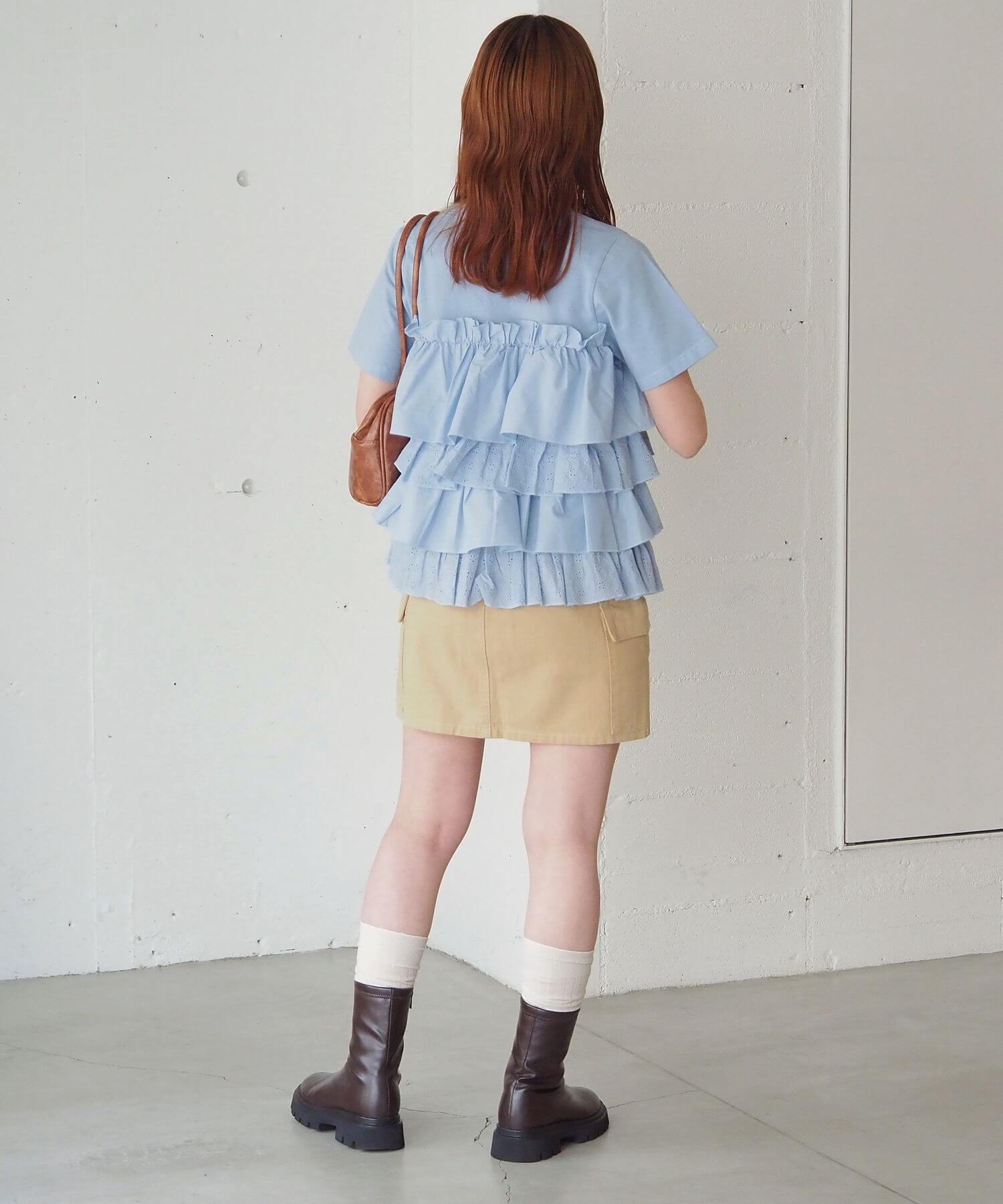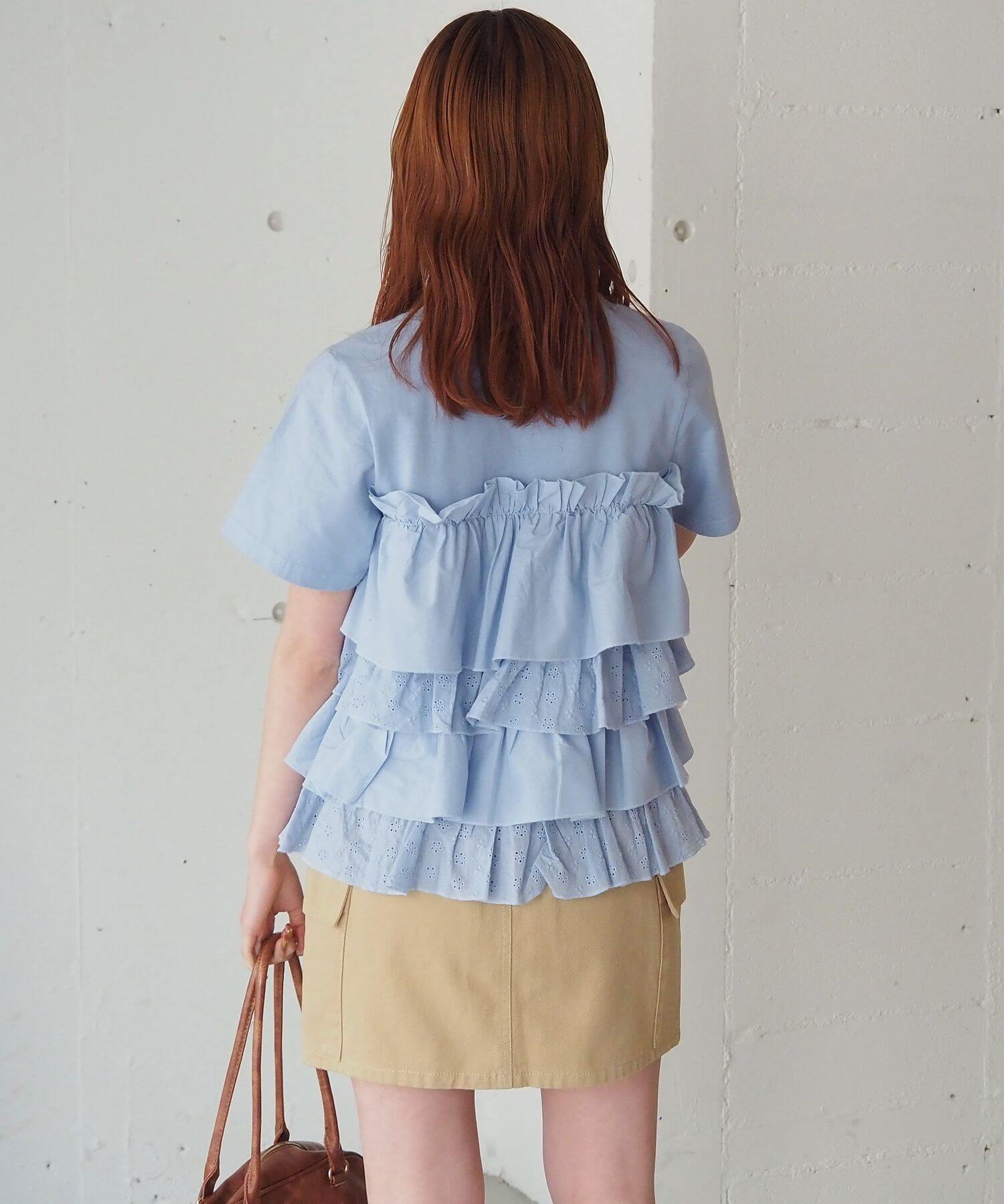 ・たっぷりのフリルとティアードデザインが女性らしいドッキングTシャツです。