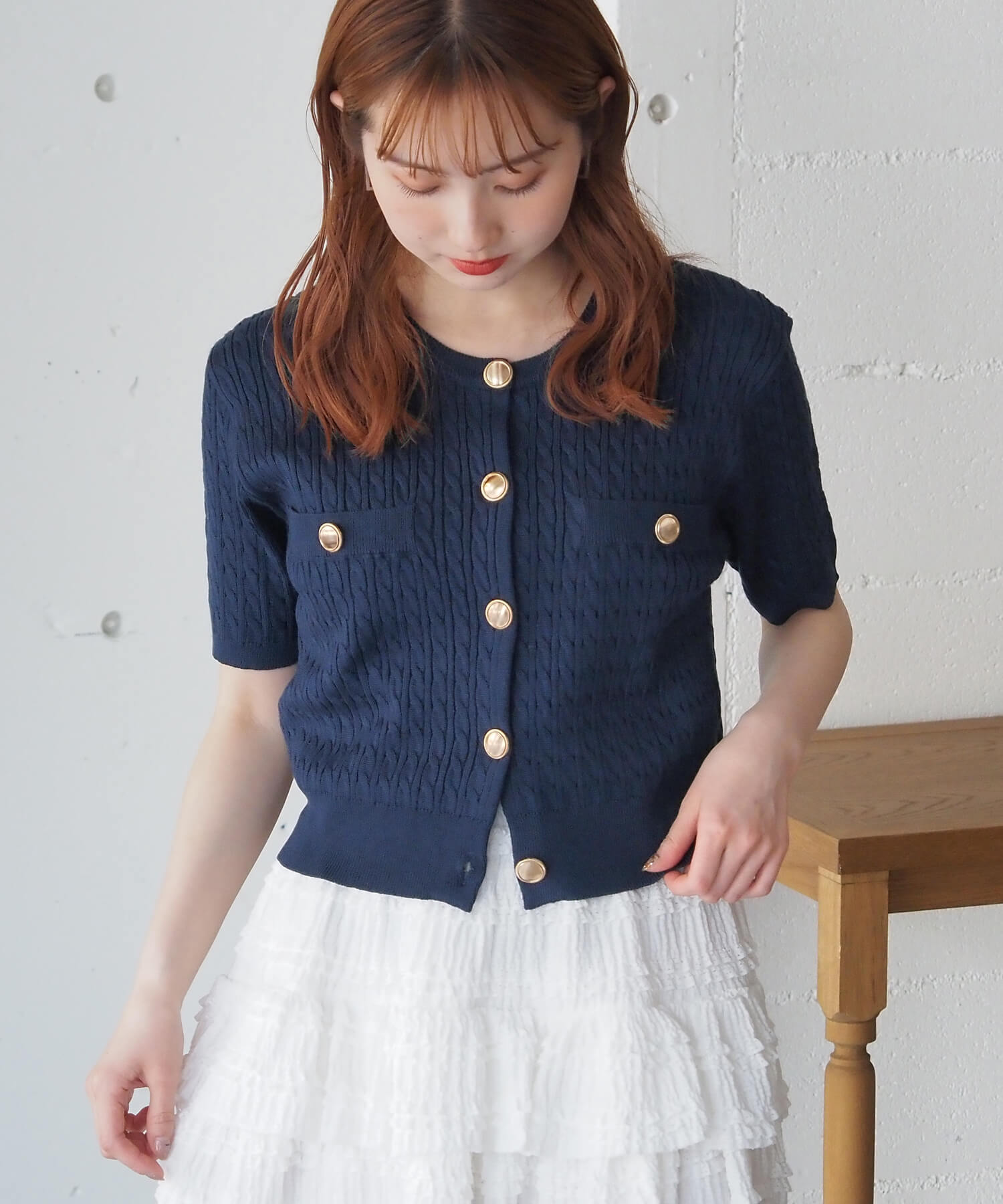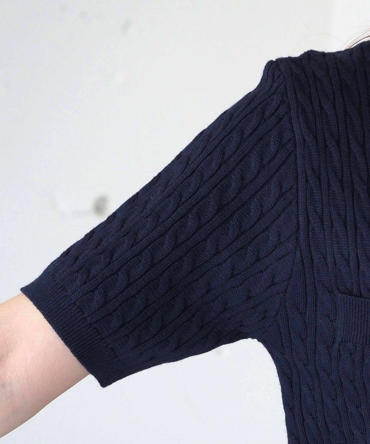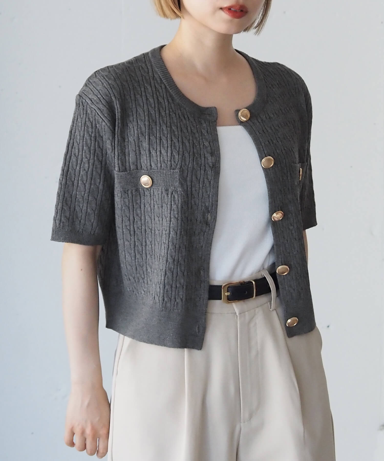 ・品のあるケーブル柄がトレンドライクな半袖ニットカーディガンです。