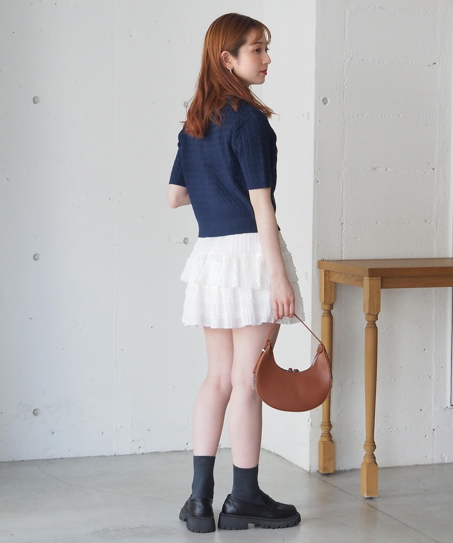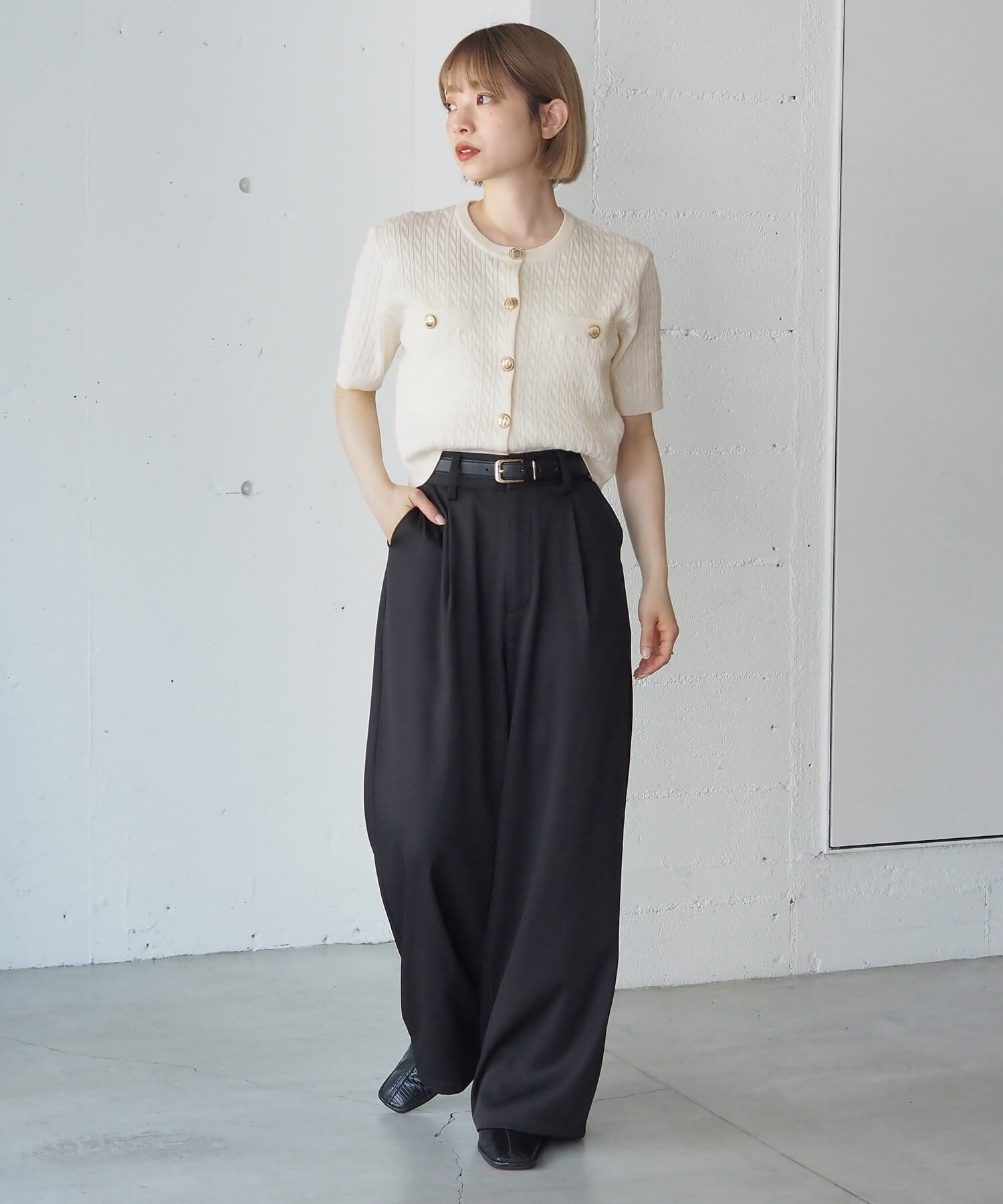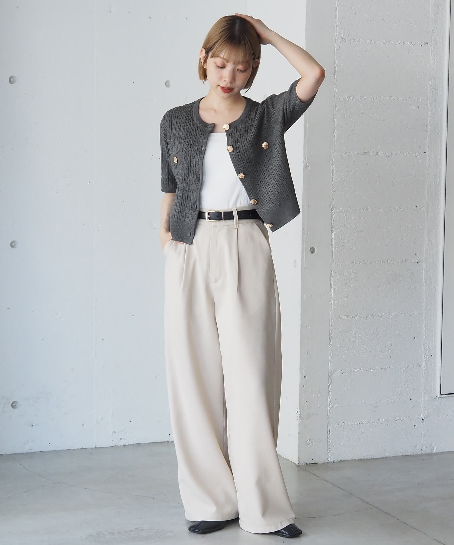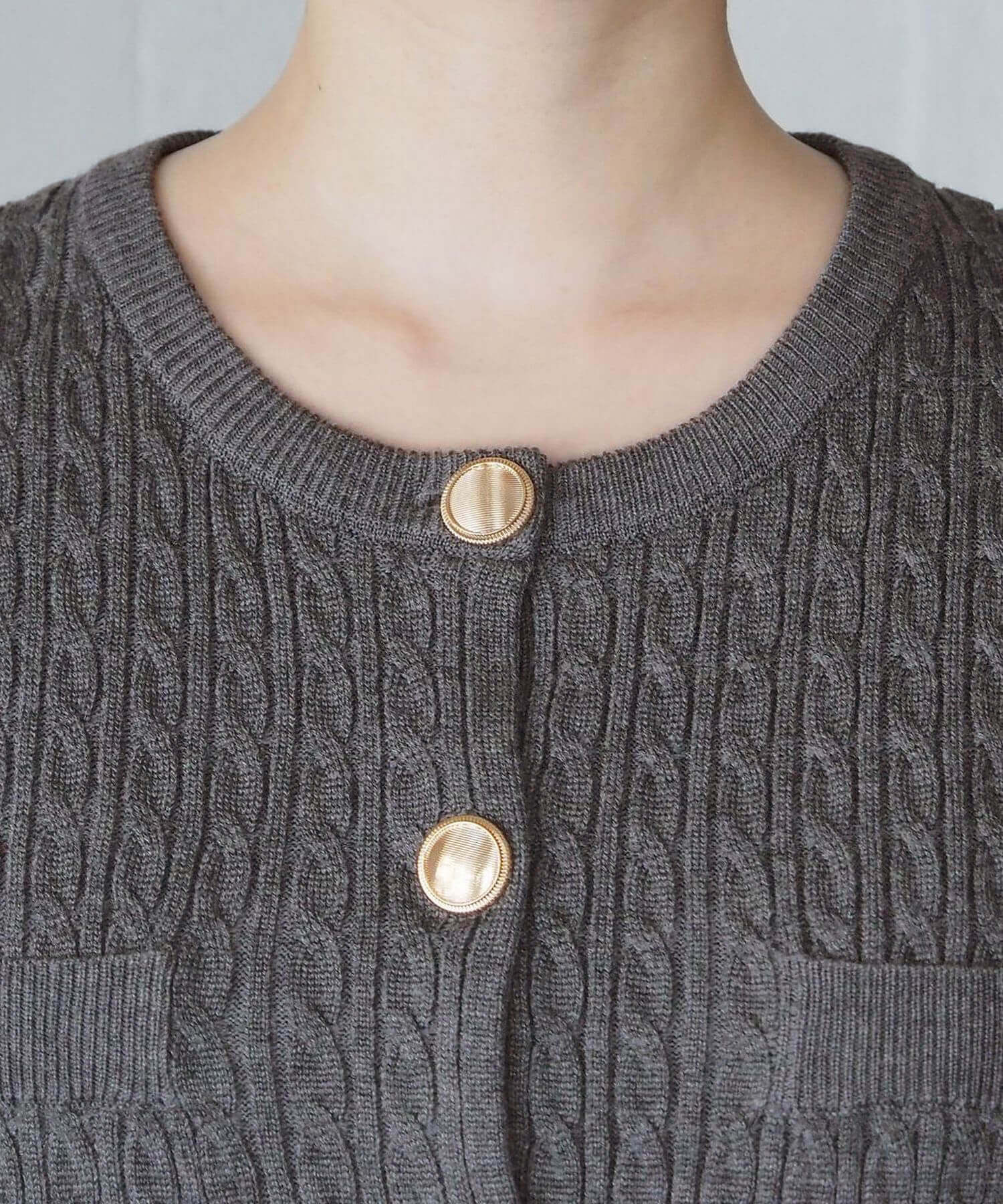 ・品のあるケーブル柄がトレンドライクな半袖ニットカーディガンです。