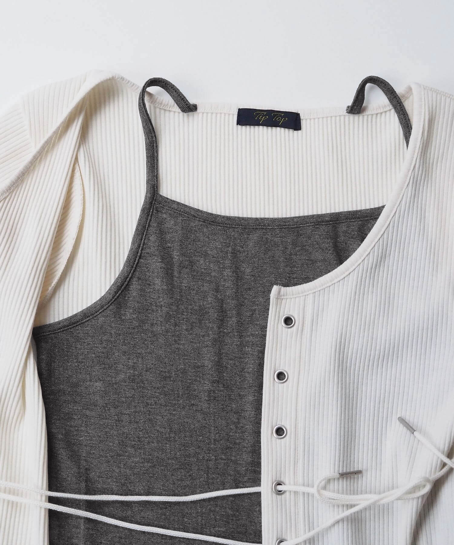 ・前身ごろはキャミソールに半袖カーディガンを羽織ったようなデザイン。2枚重ねているので、よりリアルな着こなしが楽しめます♪