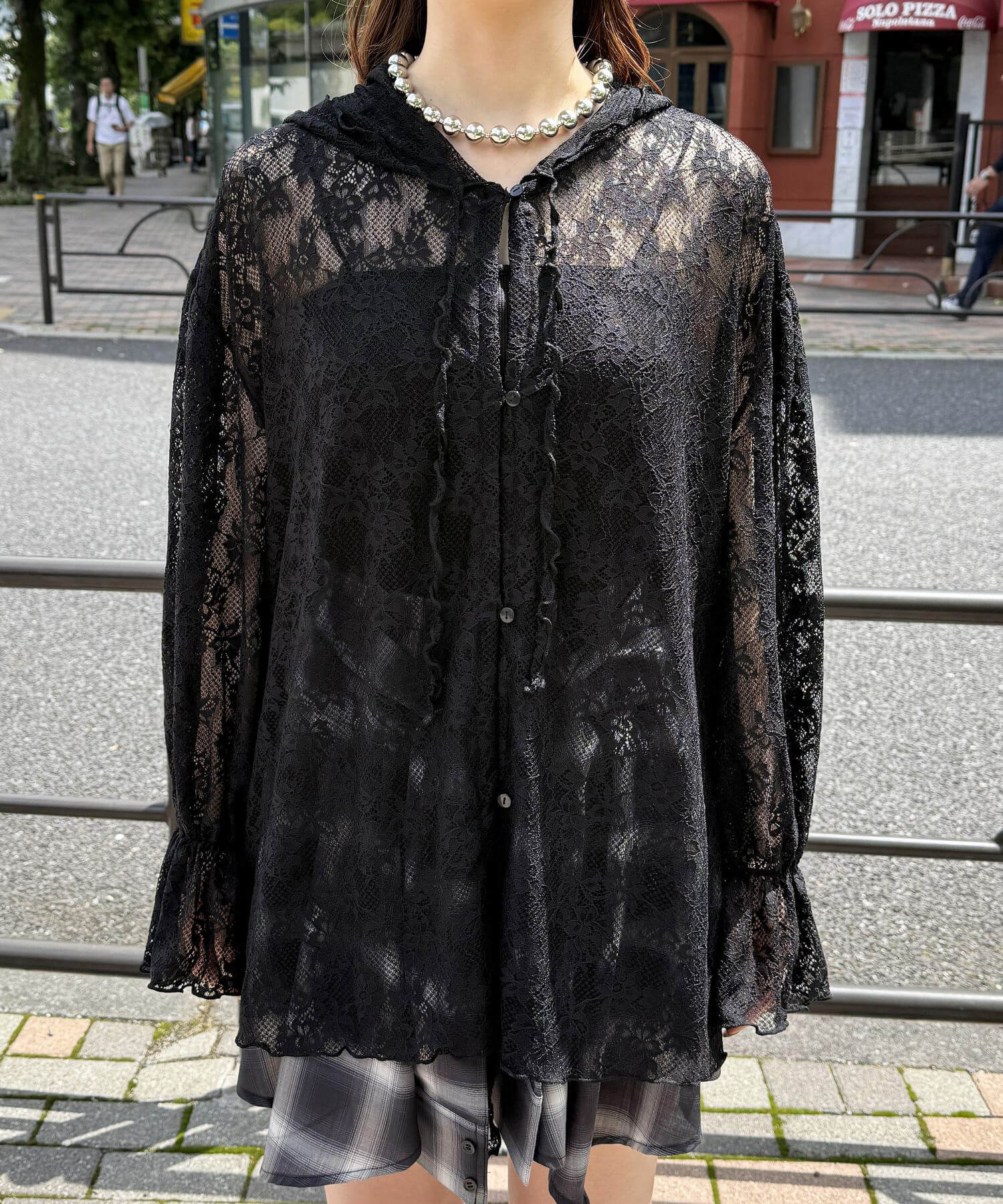 ・ミニスカートでコンパクトに。ゆるっと感のあるレースフーディならではの、絶妙なガーリーカジュアルが完成します。