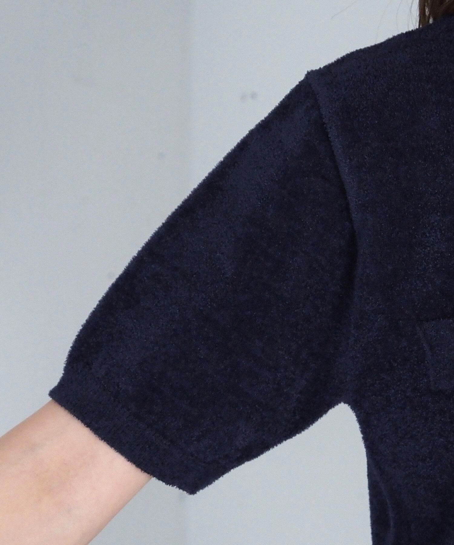 ベロア調金釦半袖カーディガン