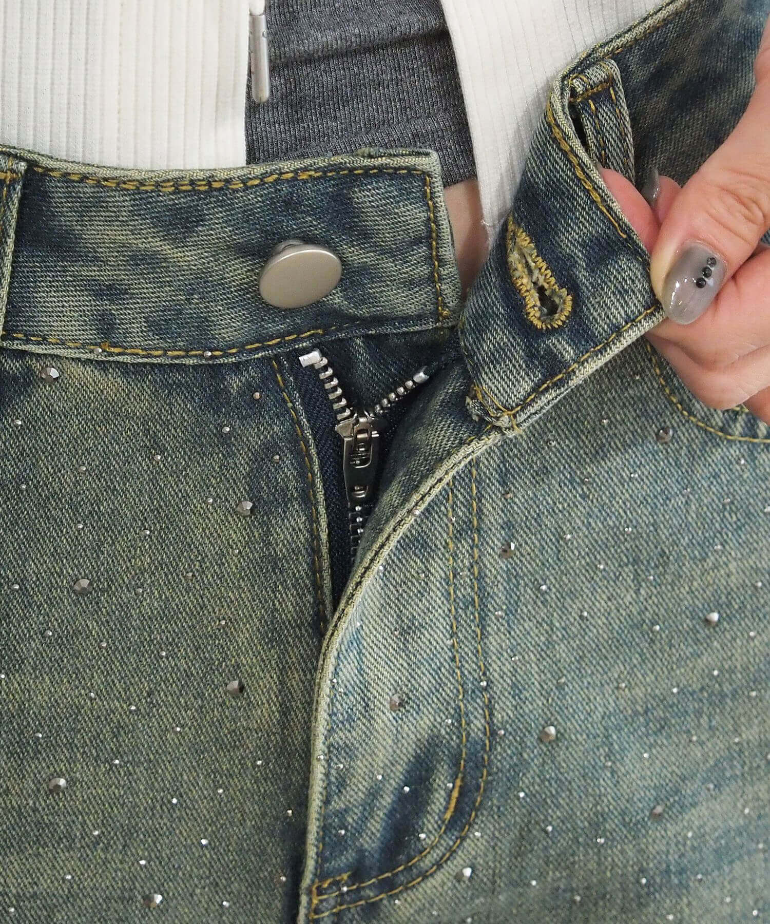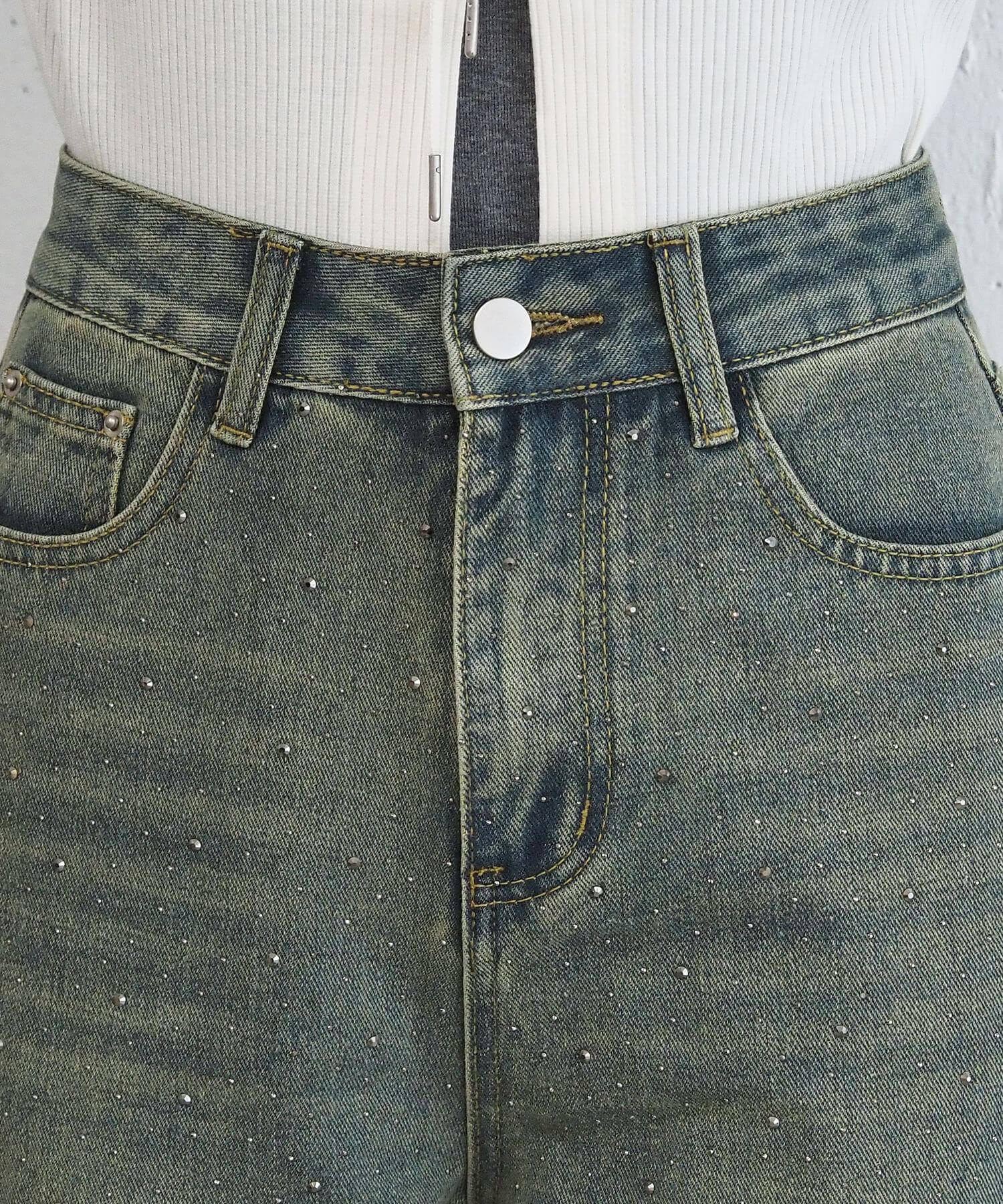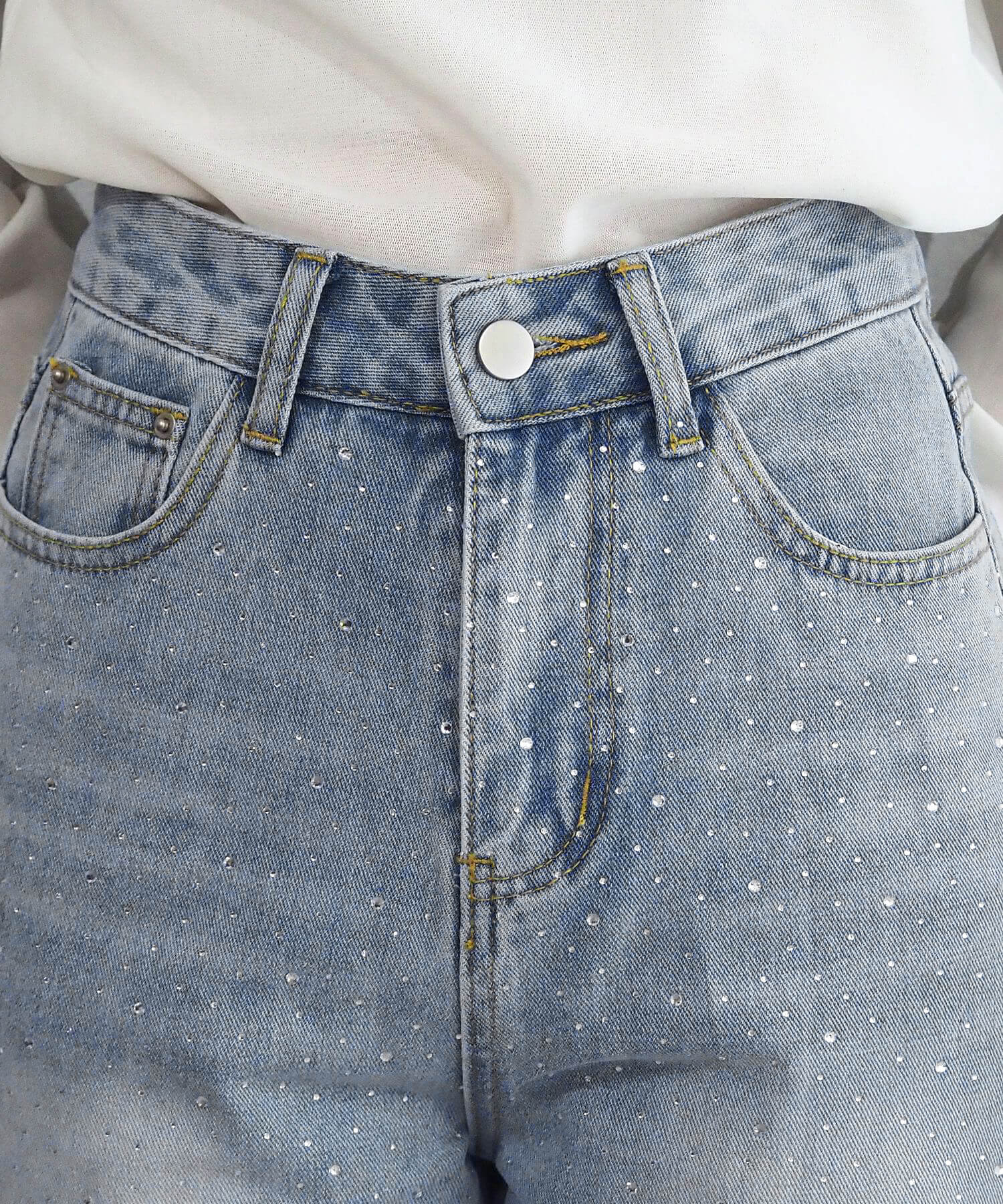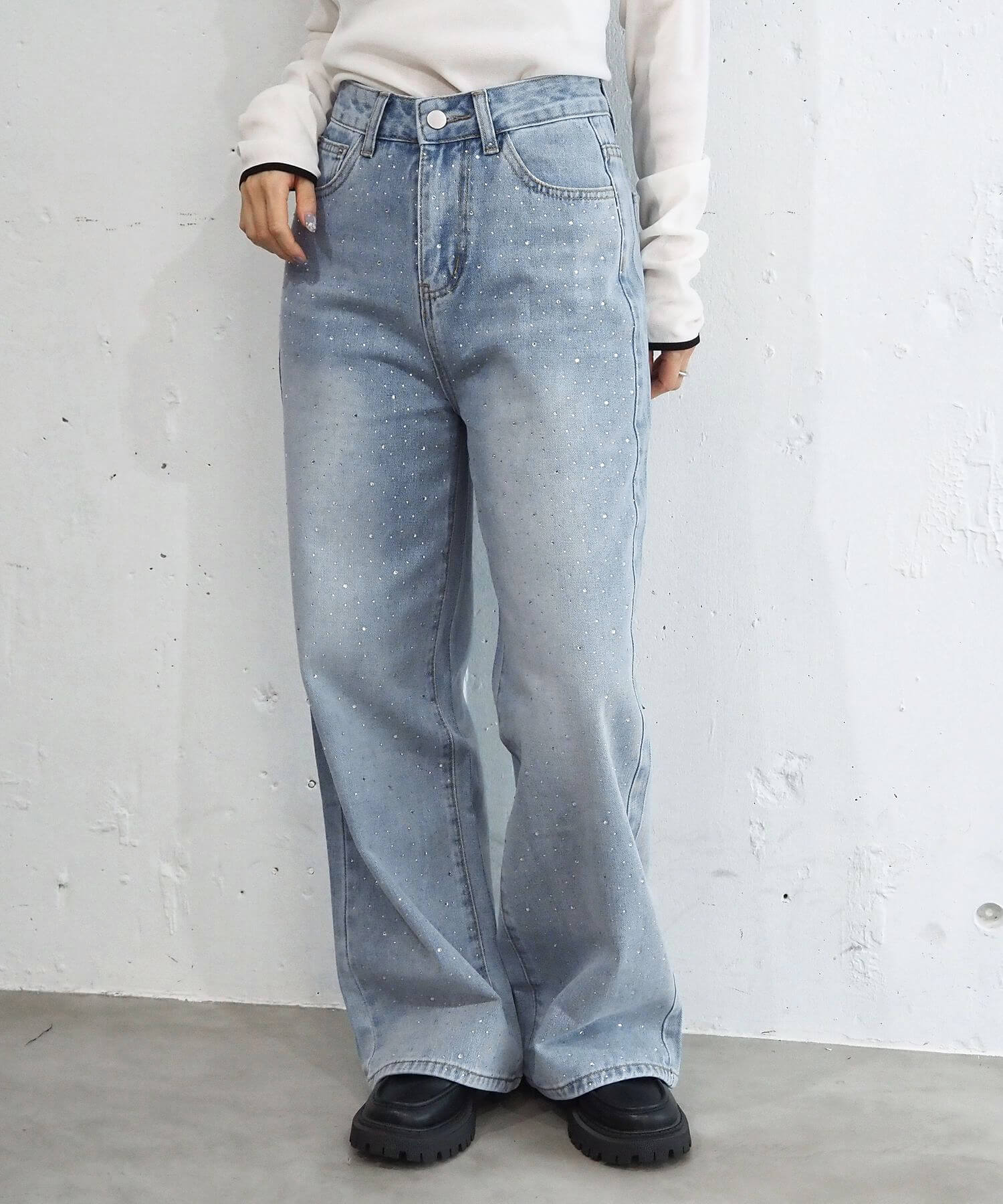 ・華やかなビジューを贅沢に散りばめたトレンドライクなデニムパンツです。