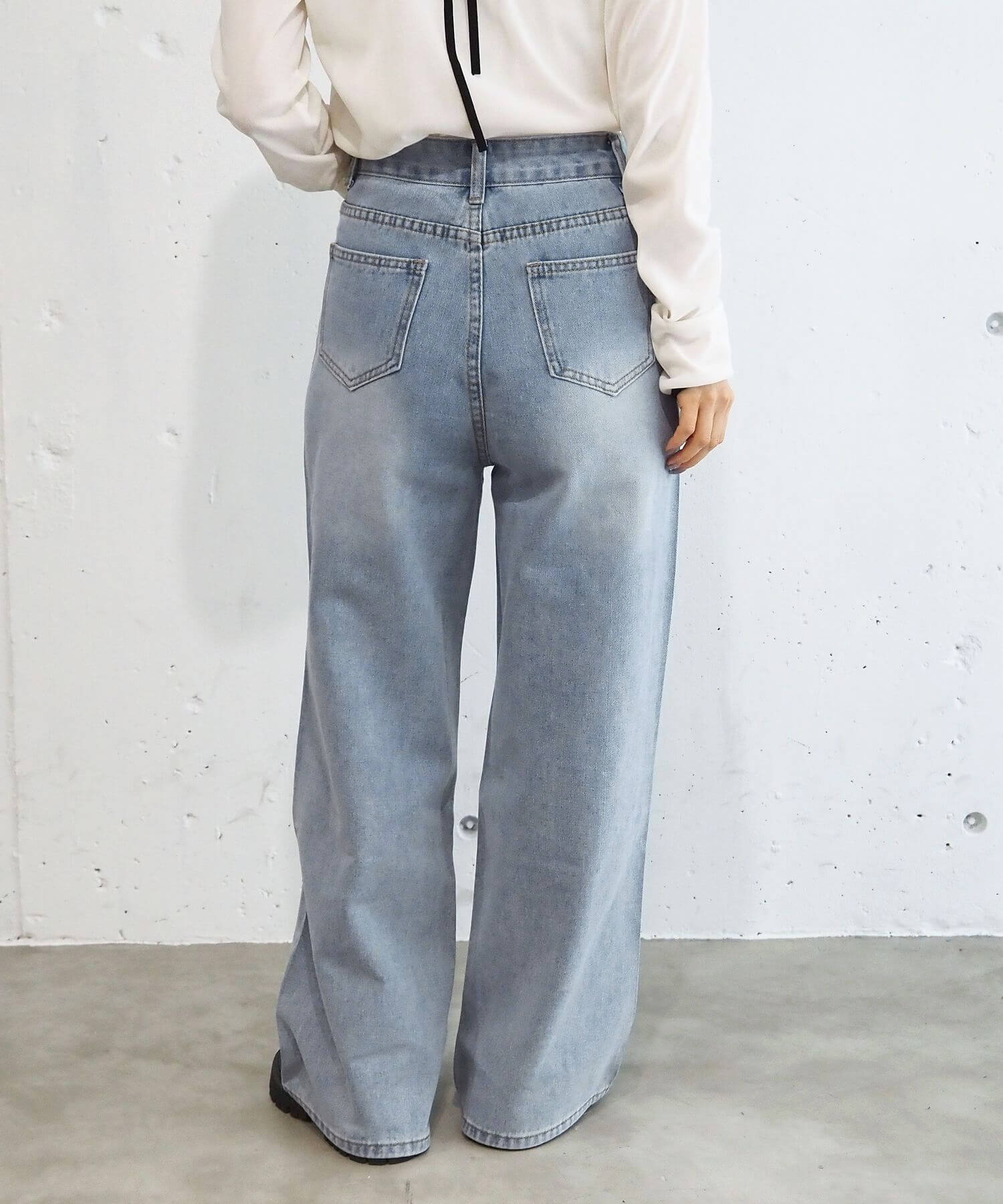 ・デニム生地自体にもヴィンテージ加工を施し、大人カジュアルに仕上げたのがポイント。