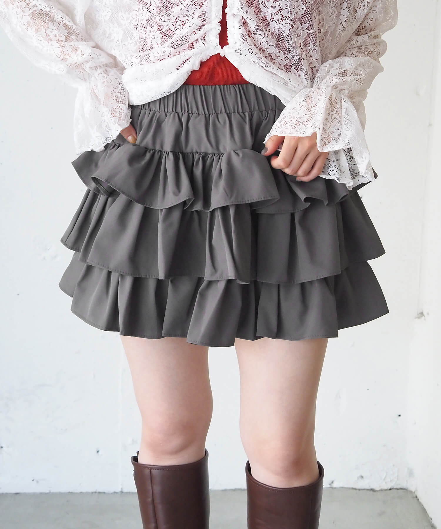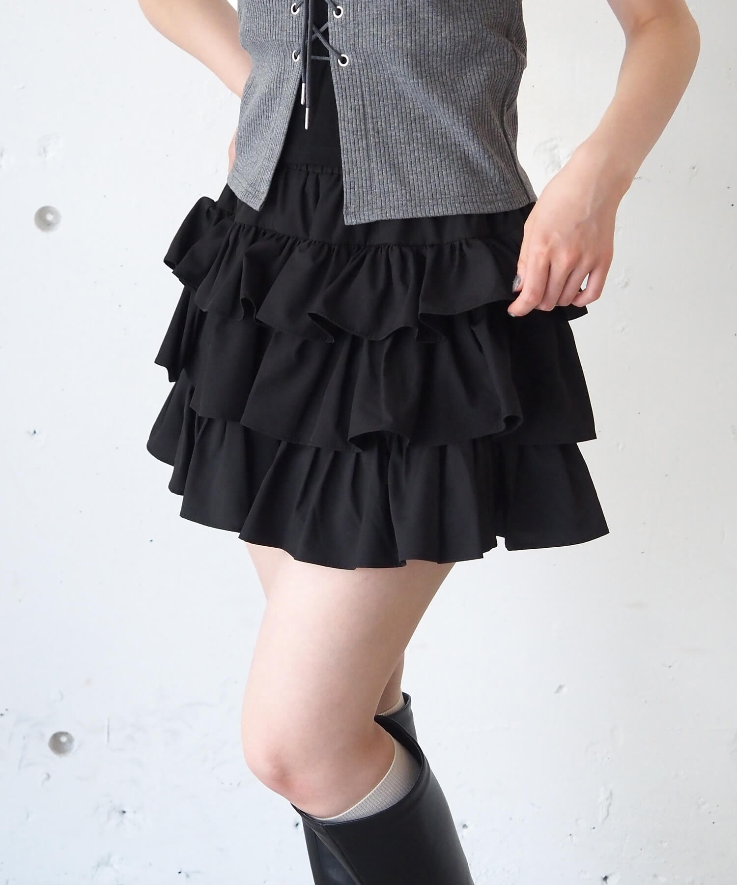 ・ボリュームたっぷりの3段フリルが可愛いミニスカートです。