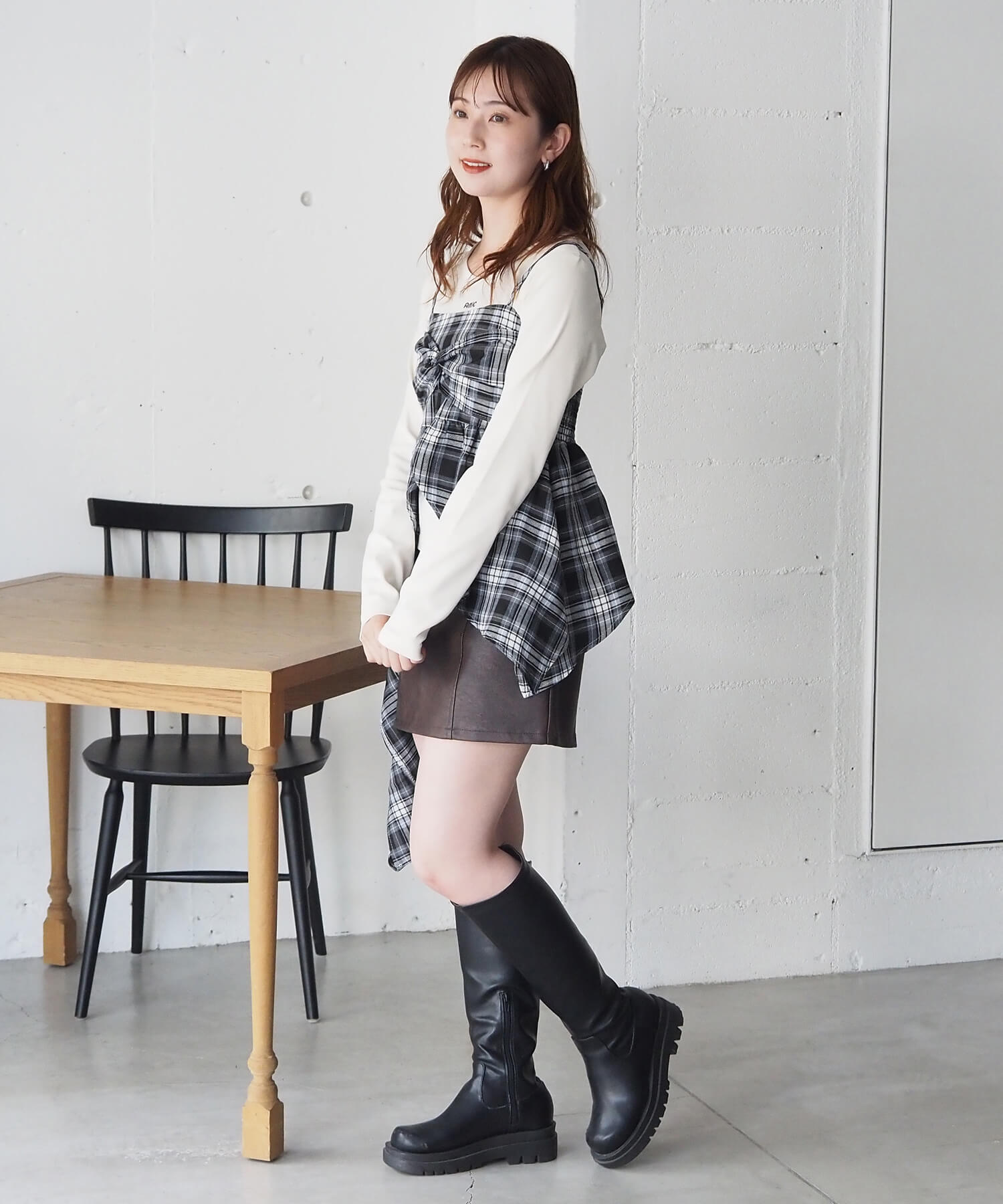 ・落ち着いたトーンのチェック柄が秋先どりにぴったり。