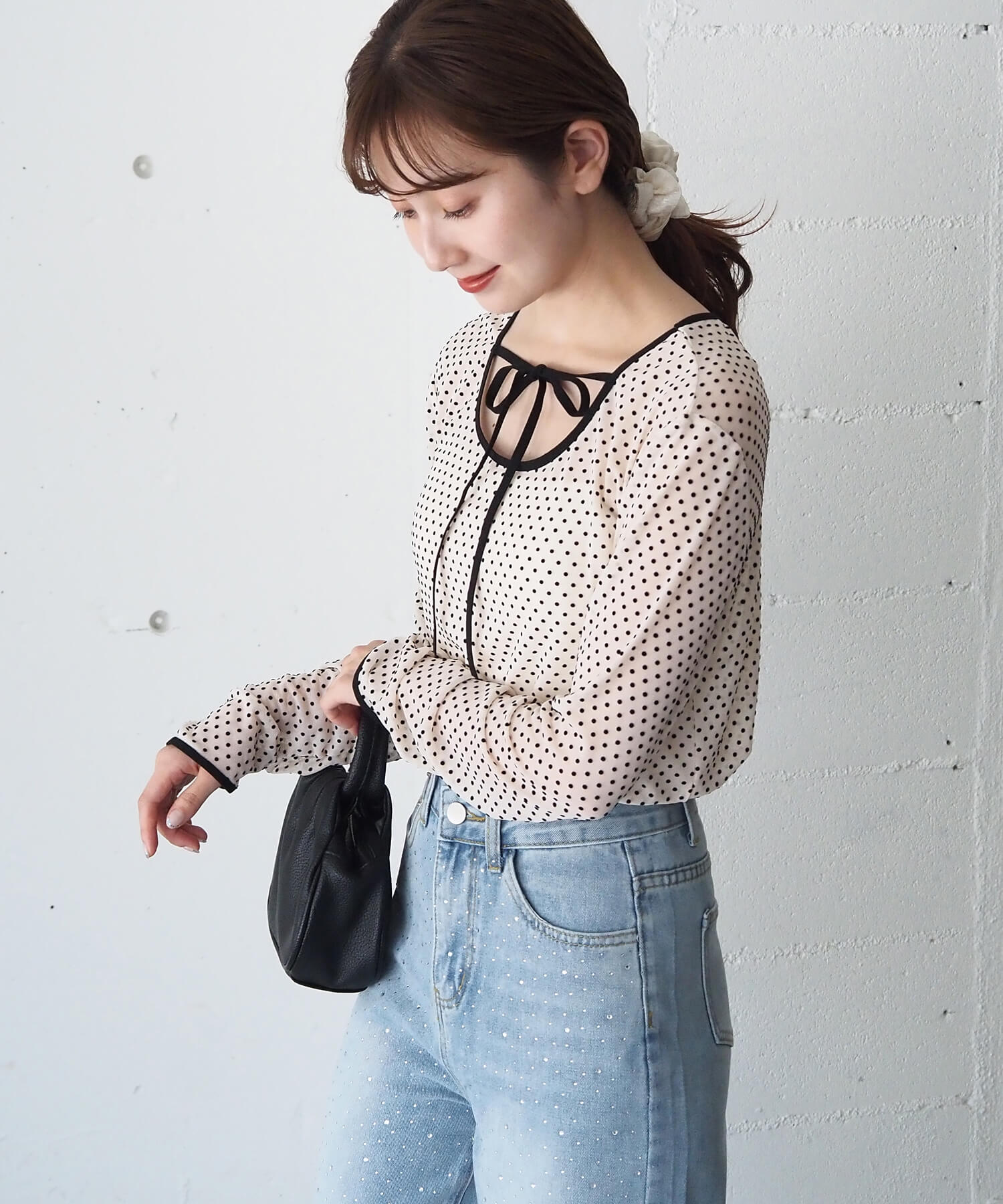 ・大人可愛いドット柄チュール生地と、上品なベロア調無地の2タイプ。どちらも程よいシアー感で軽さのあるアイテムです。