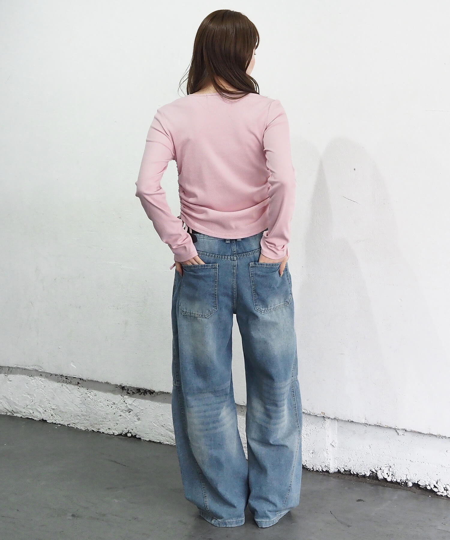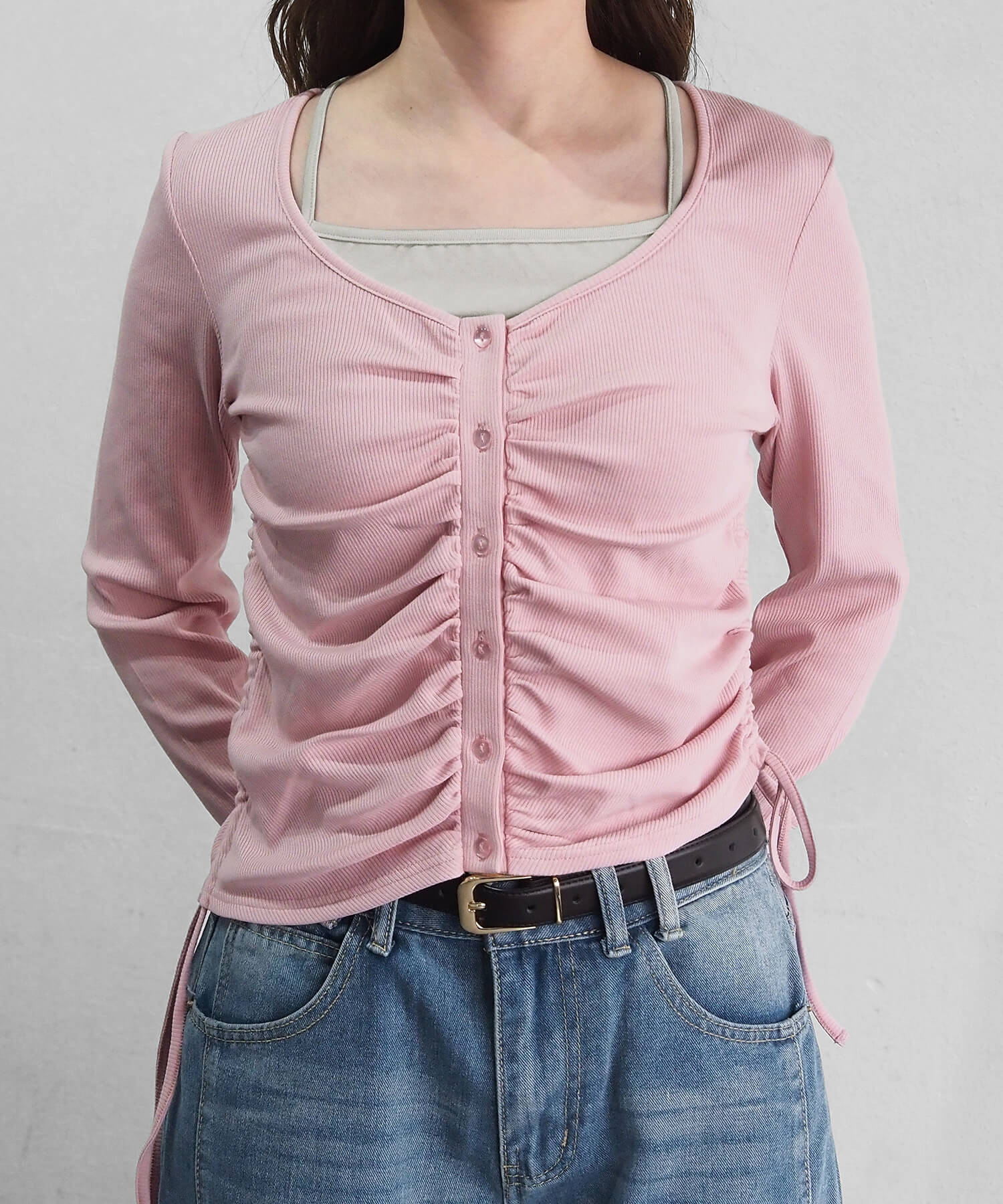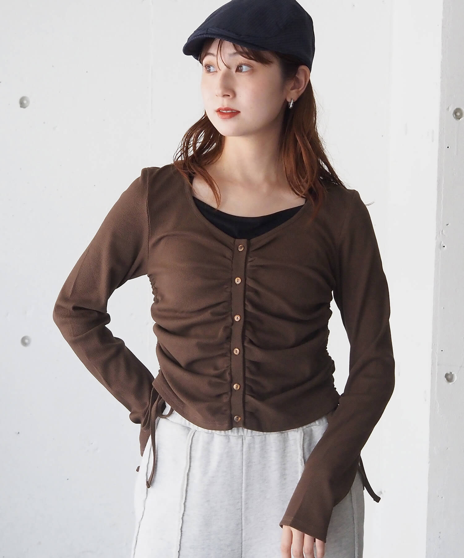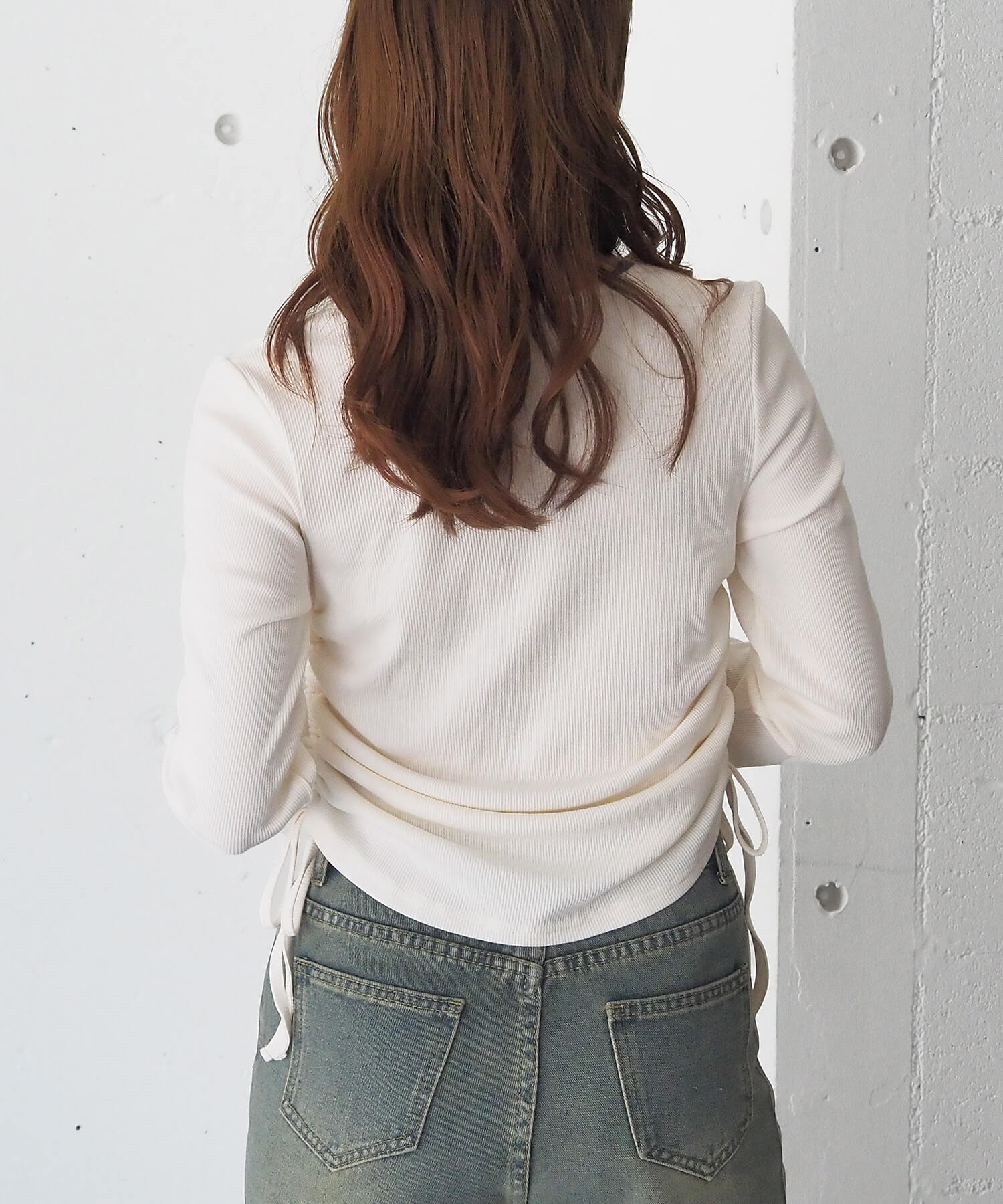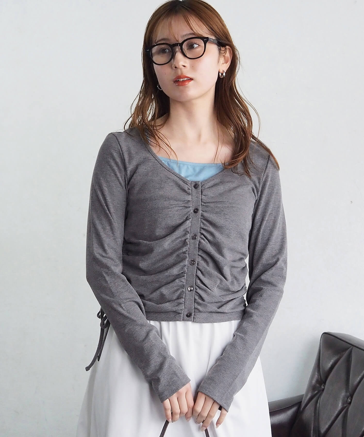 ・サイドのドロストとフロントのギャザーでトレンド感と着痩せ効果も抜かりなく◎