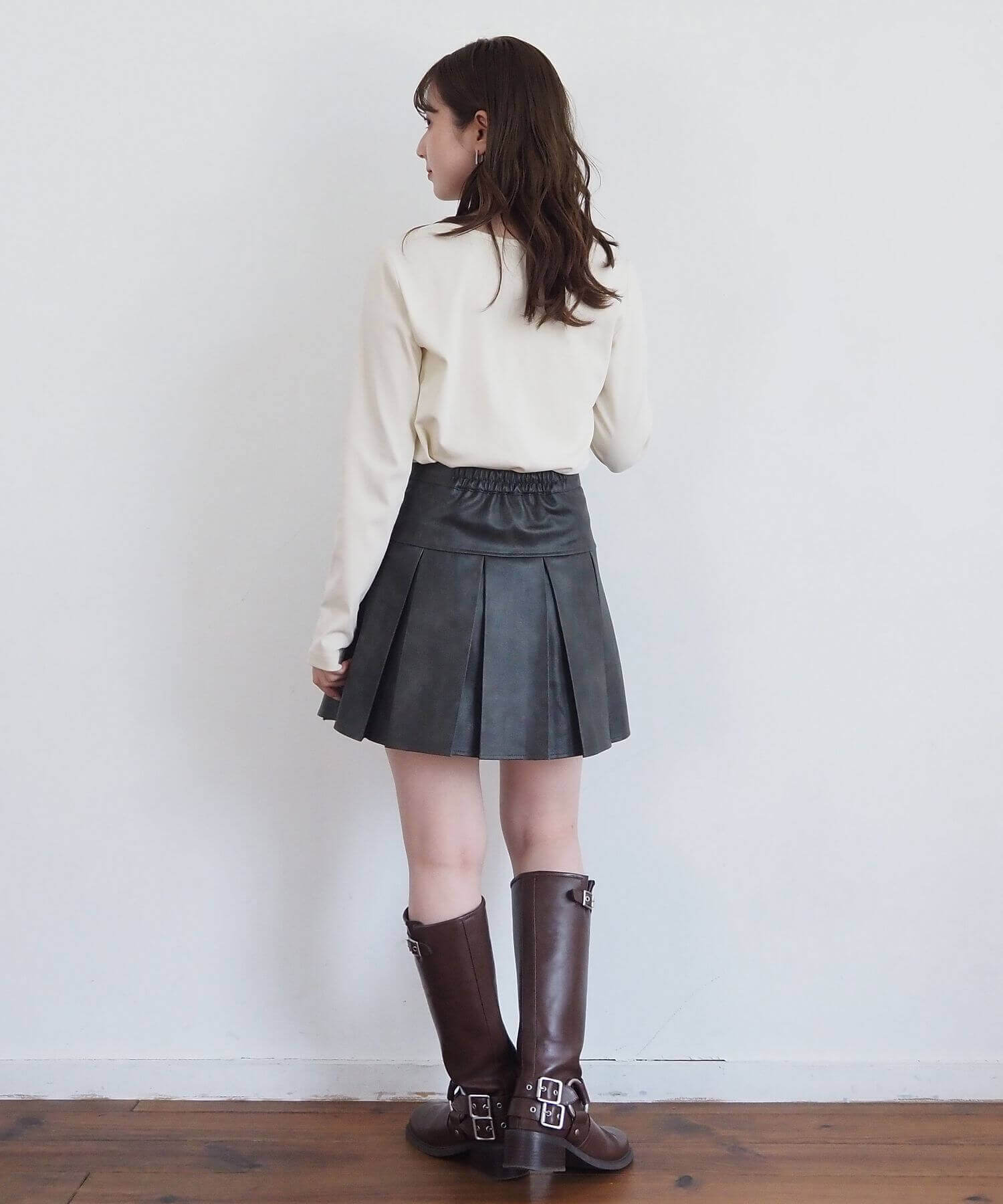 ・オーバーサイズのニットやパーカーからプリーツをチラ見せであざと可愛いコーディネートにも最適です。