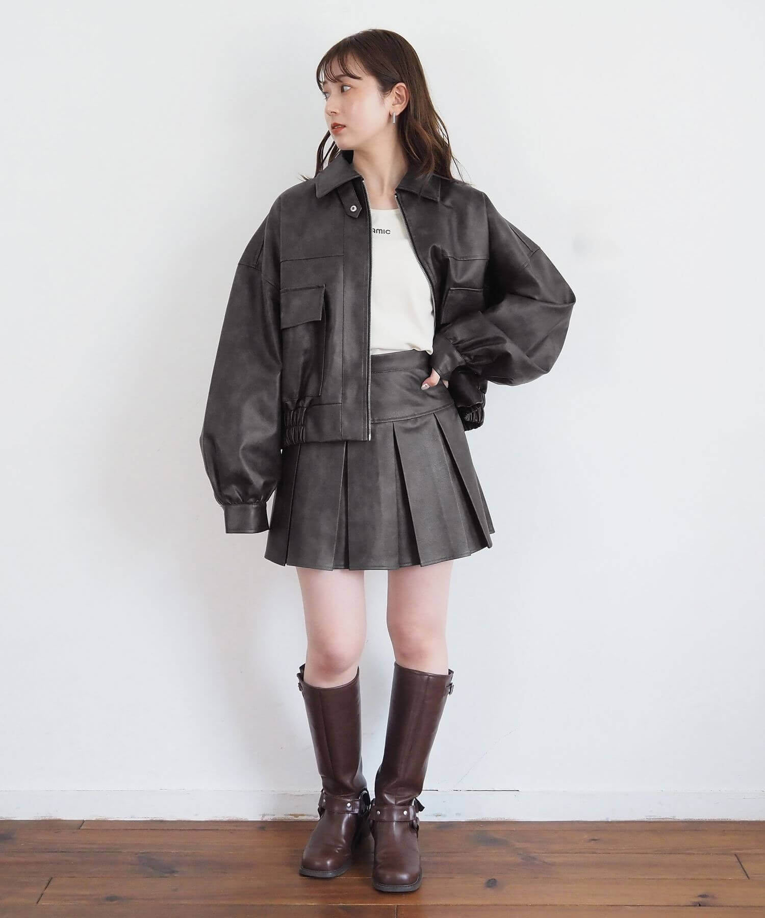 ・セットアップ対応のビッグショート合皮ブルゾン(品番:1760246493)と、さらにトレンドライクなコーディスコートも可能です。