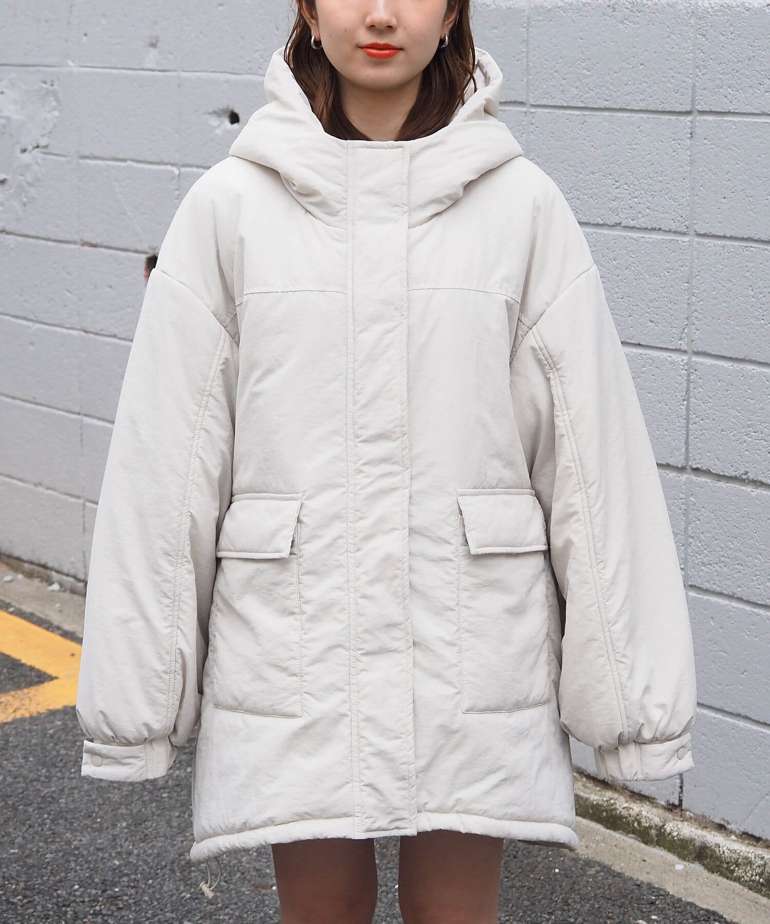 ・ビッグシルエットが魅力のフード付きブルゾンです。