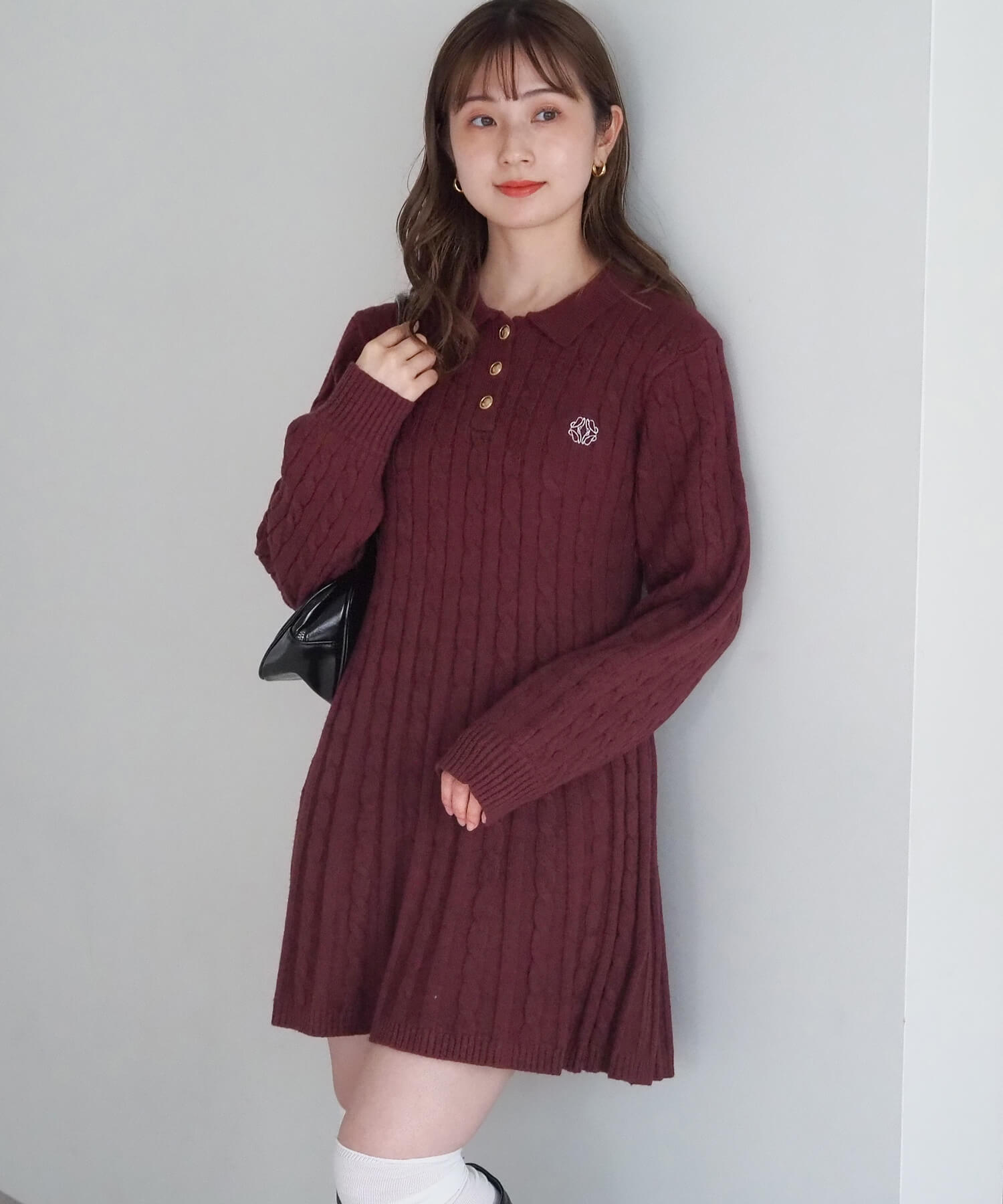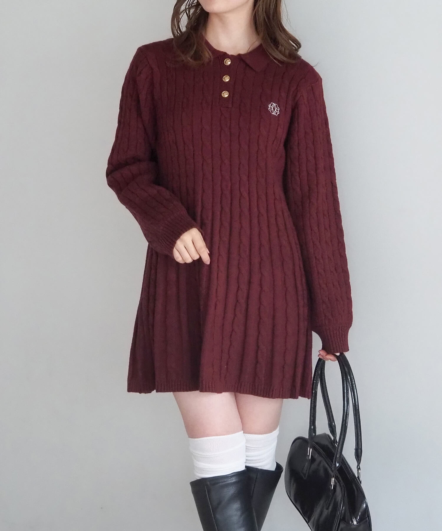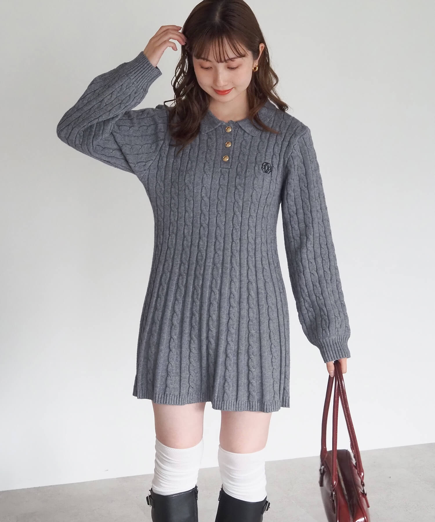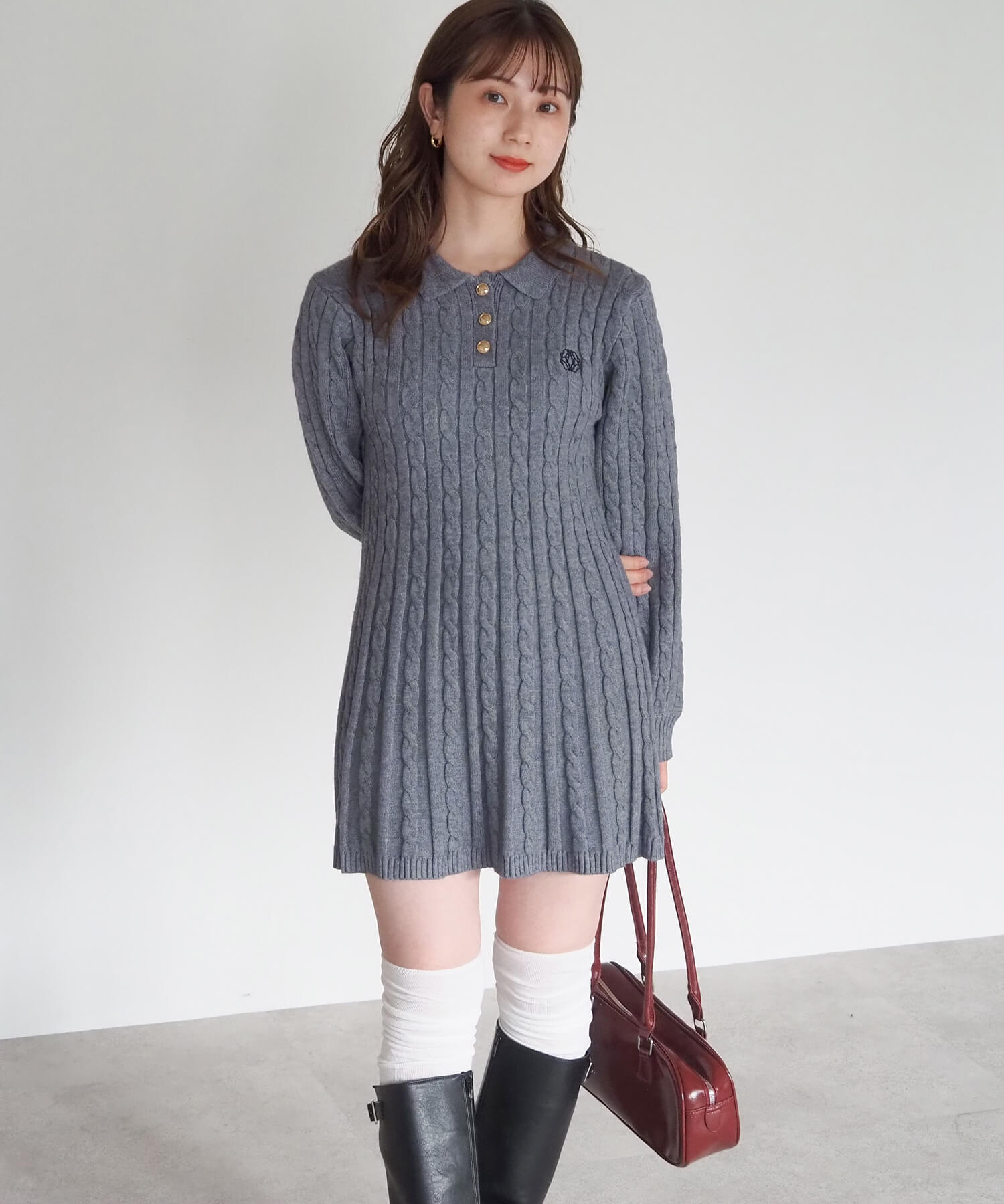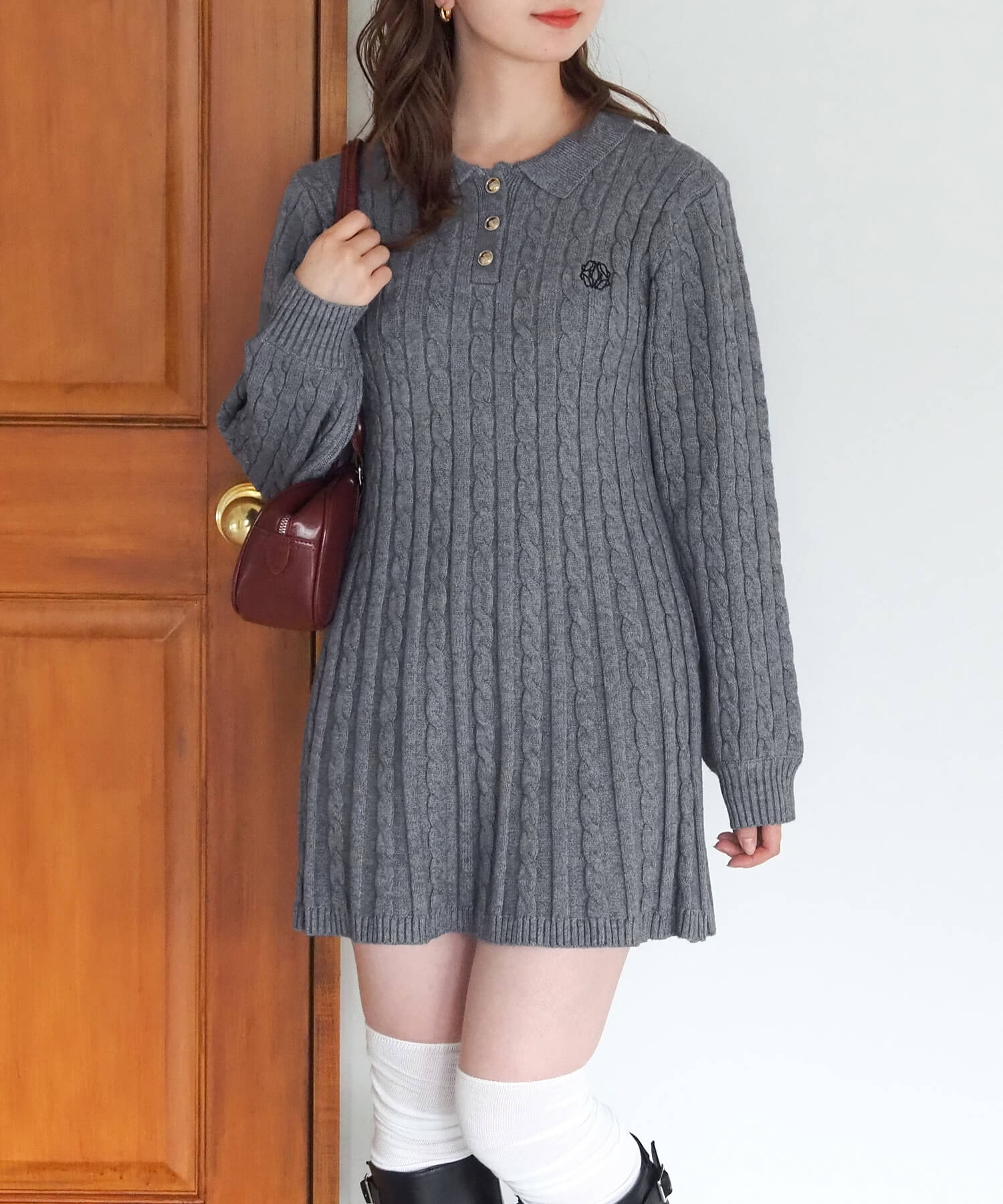 ケーブルニットポロワンピース