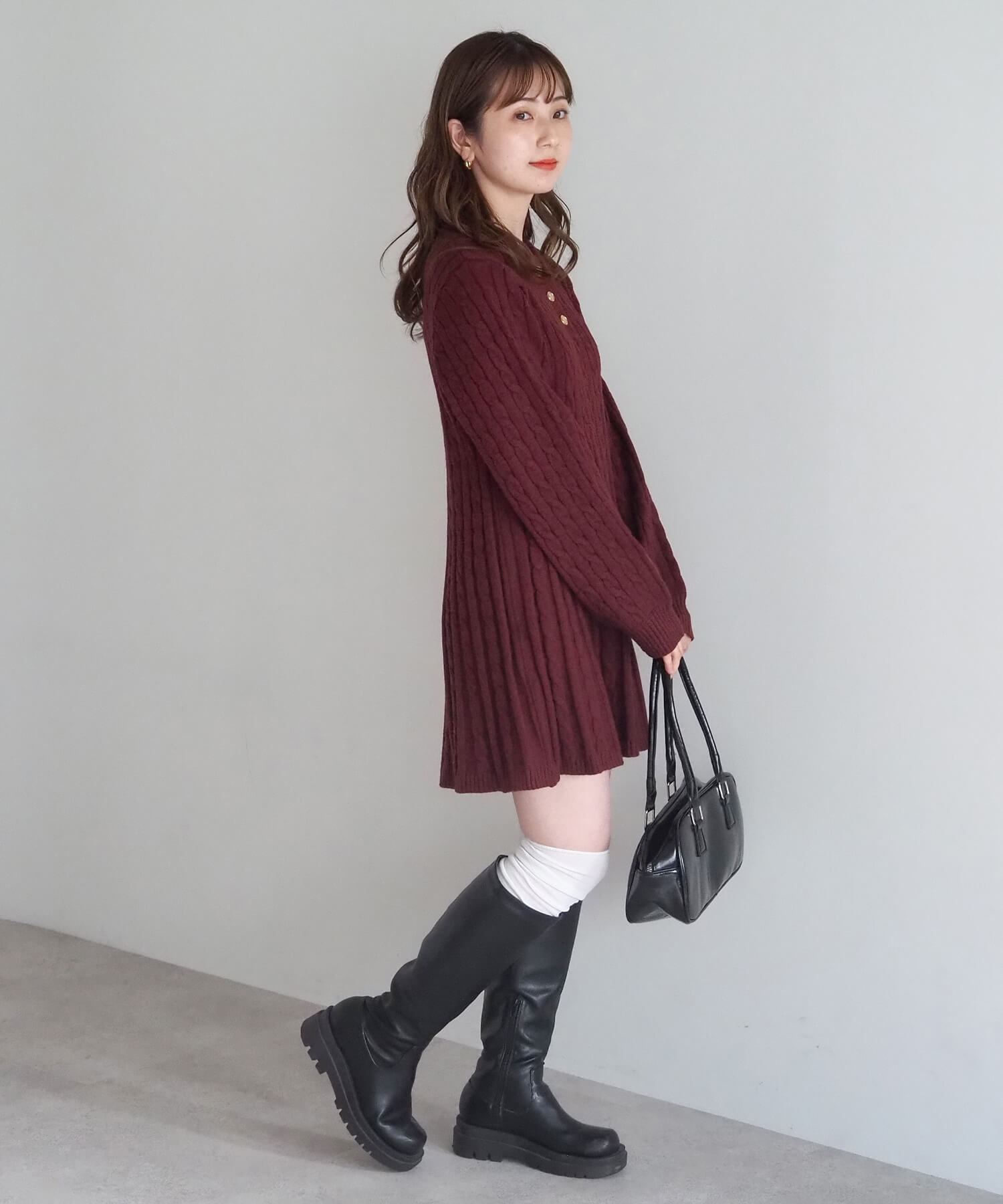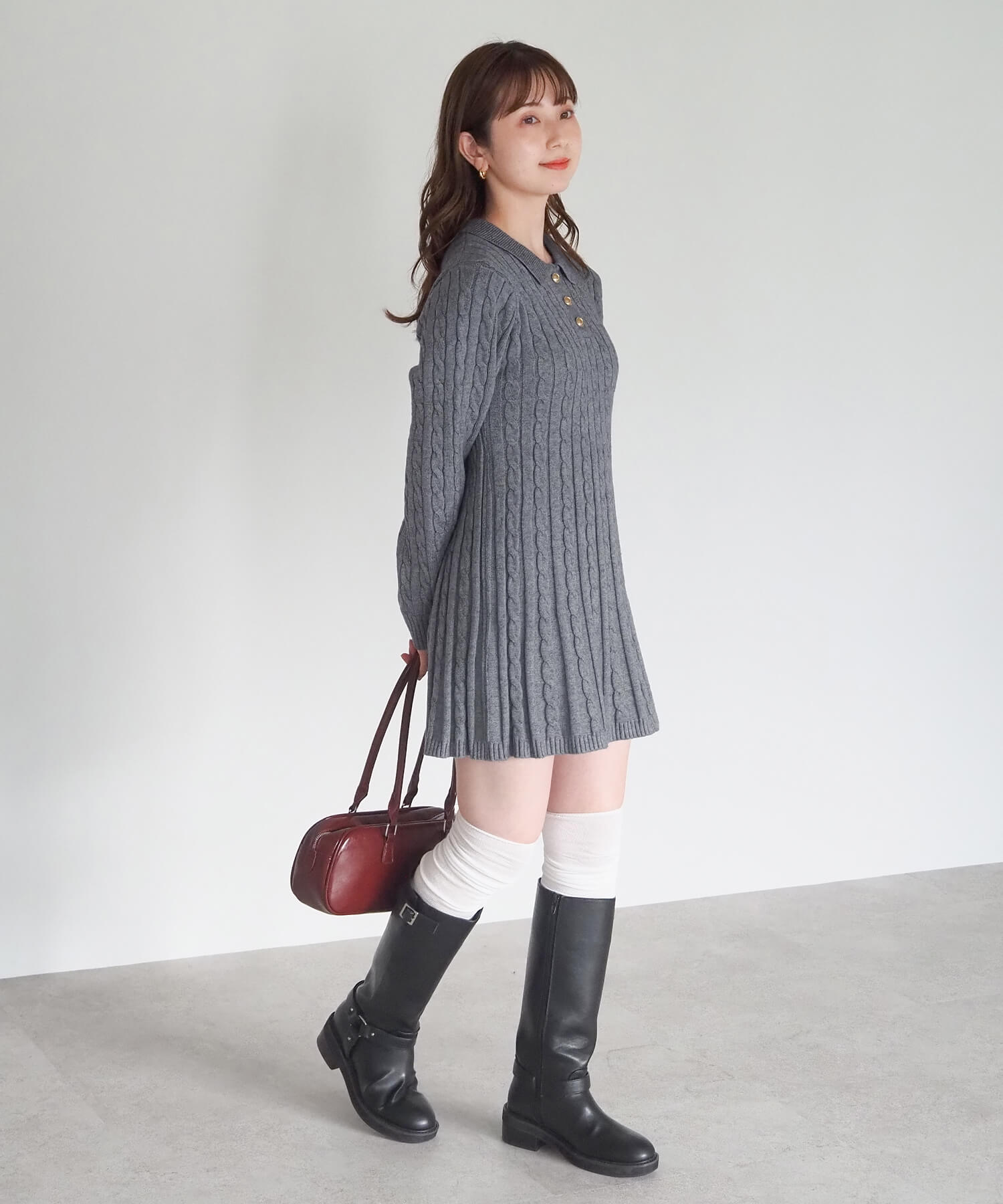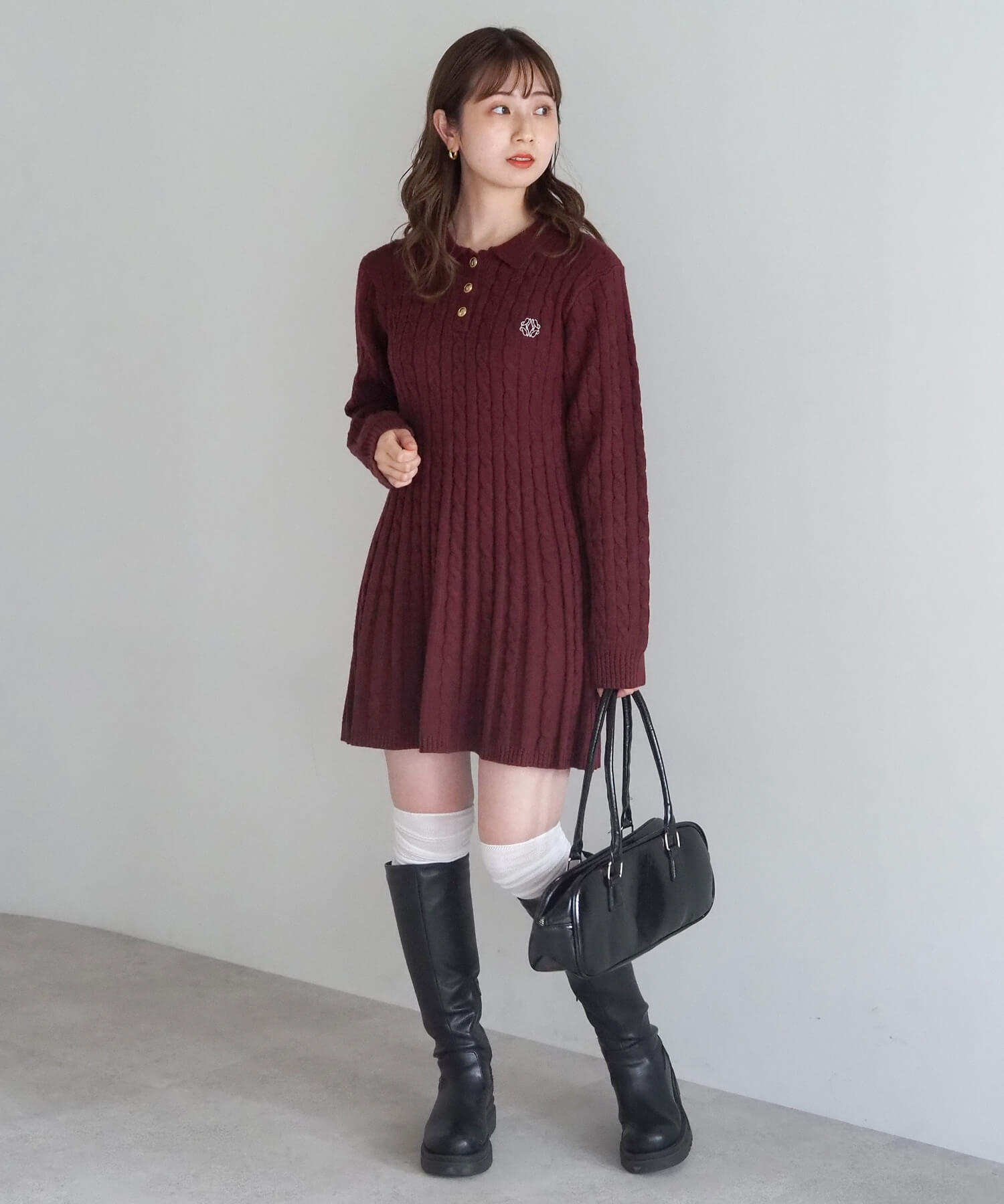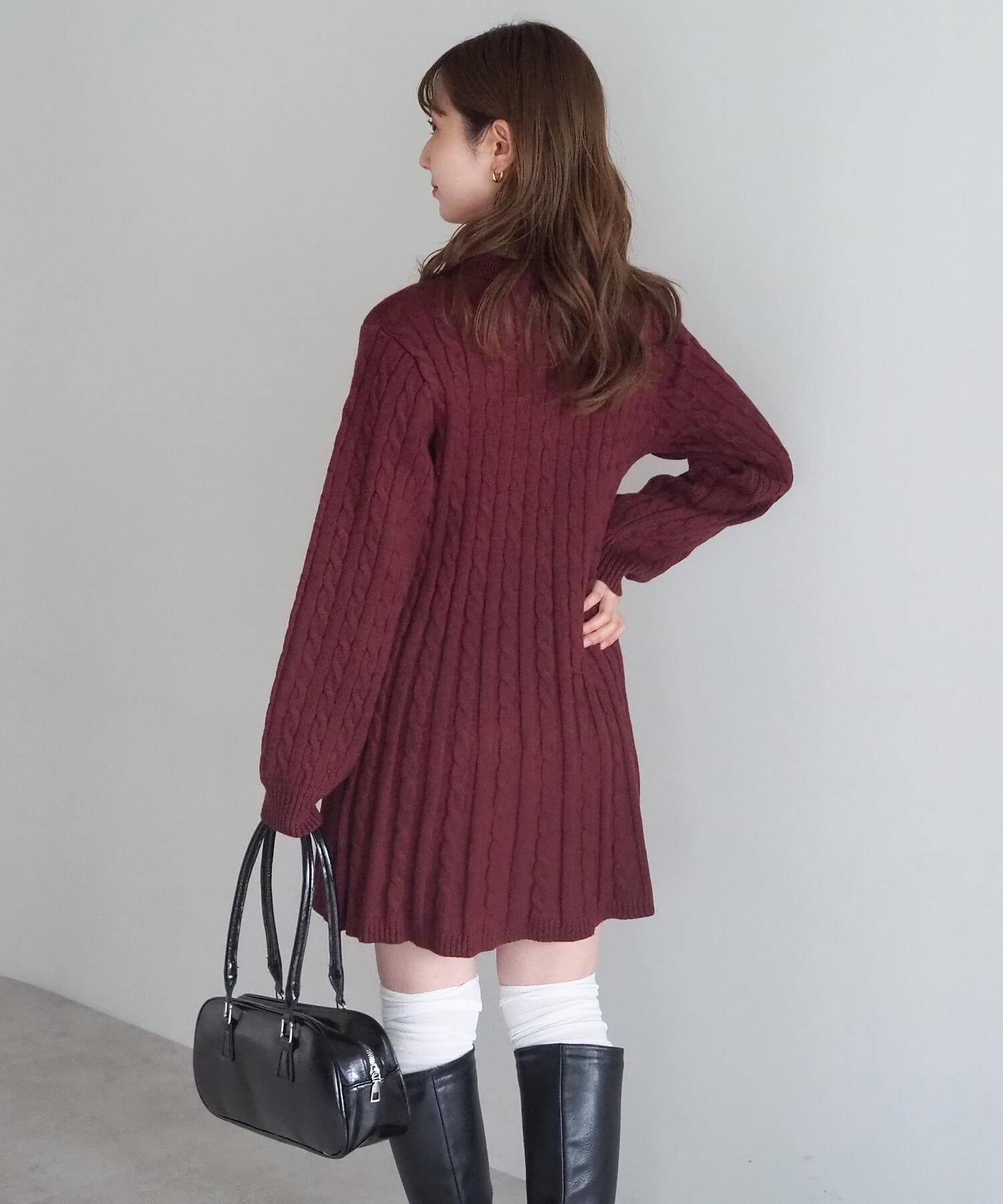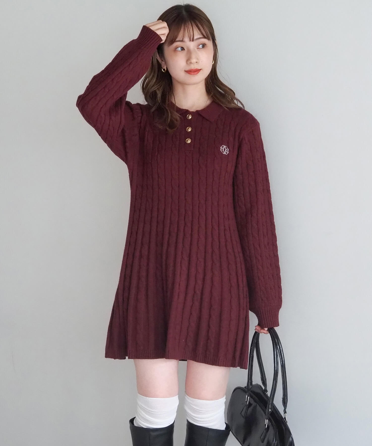 ケーブルニットポロワンピース