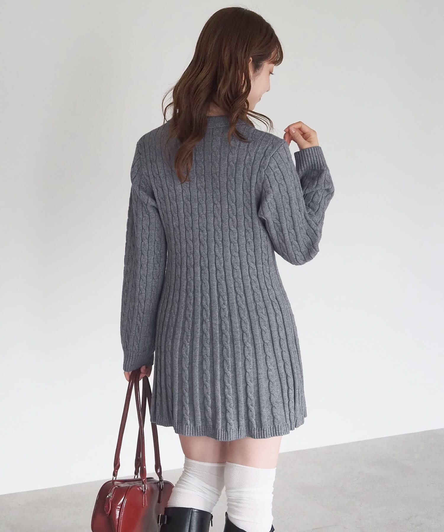 大人気の「ケーブルニットポロプルオーバー」が待望のワンピースになって登場‼