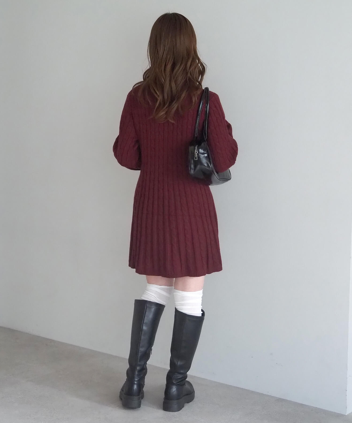 ・1枚でサマになる、ケーブル柄のニットワンピースです。