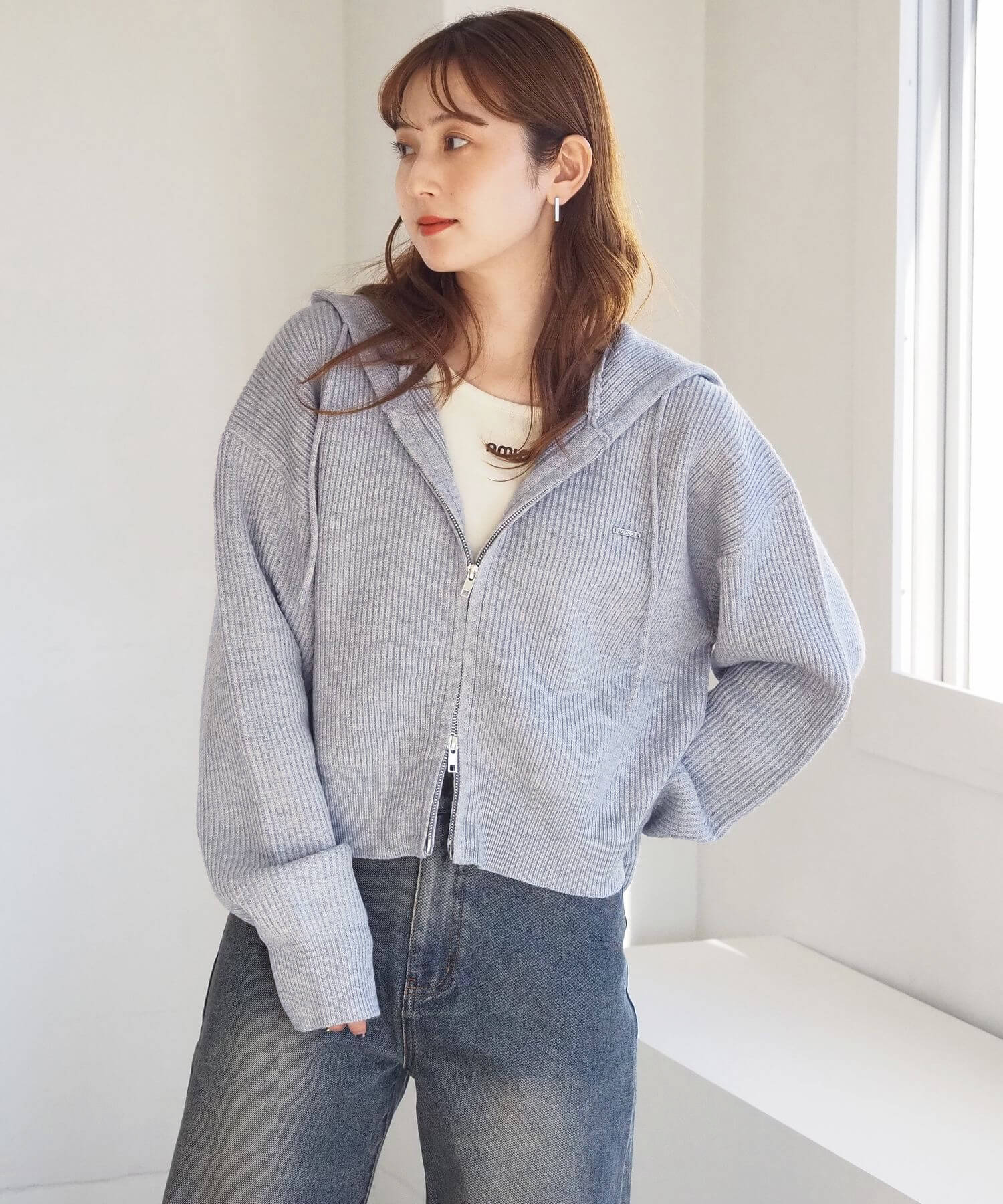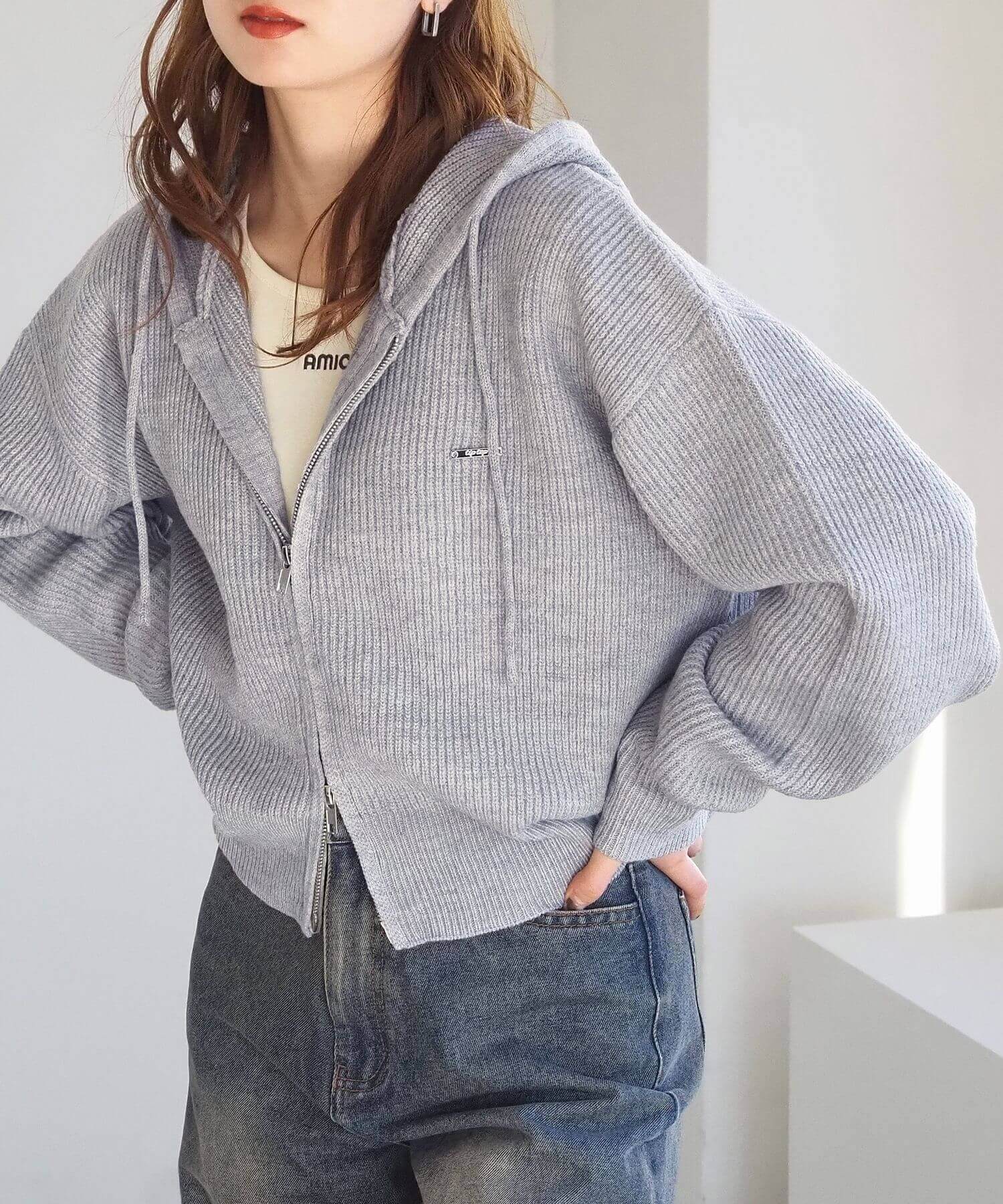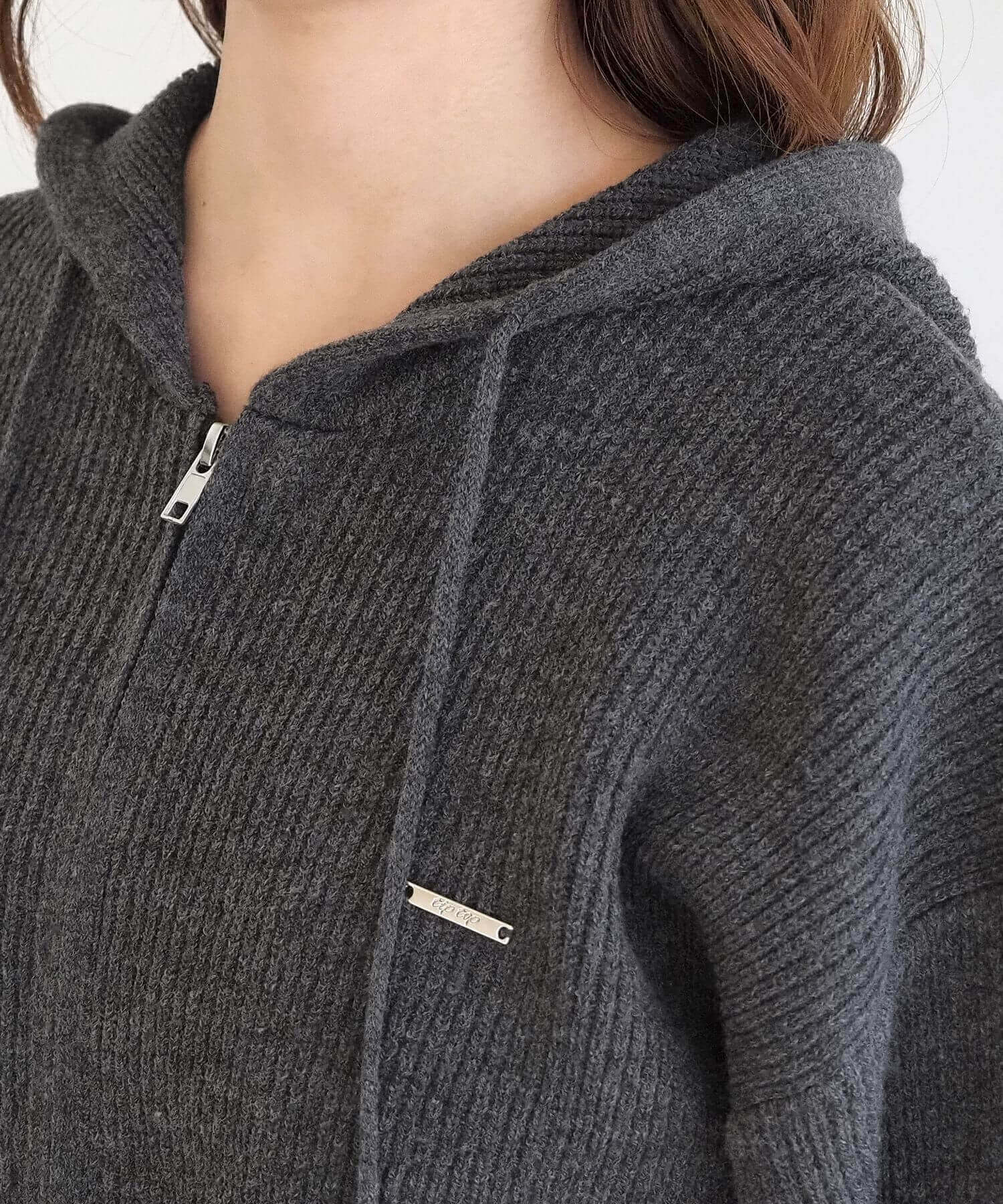 ・プレート付きが今年らしいニット素材のジップパーカーです。