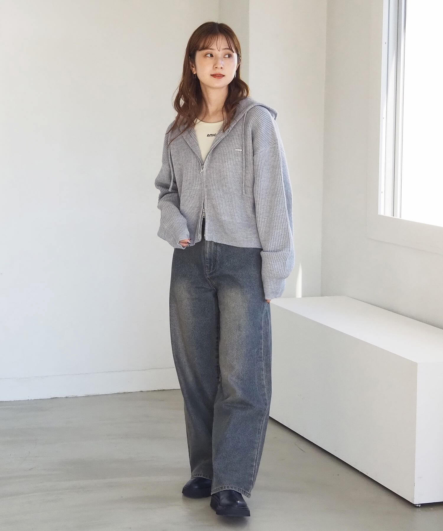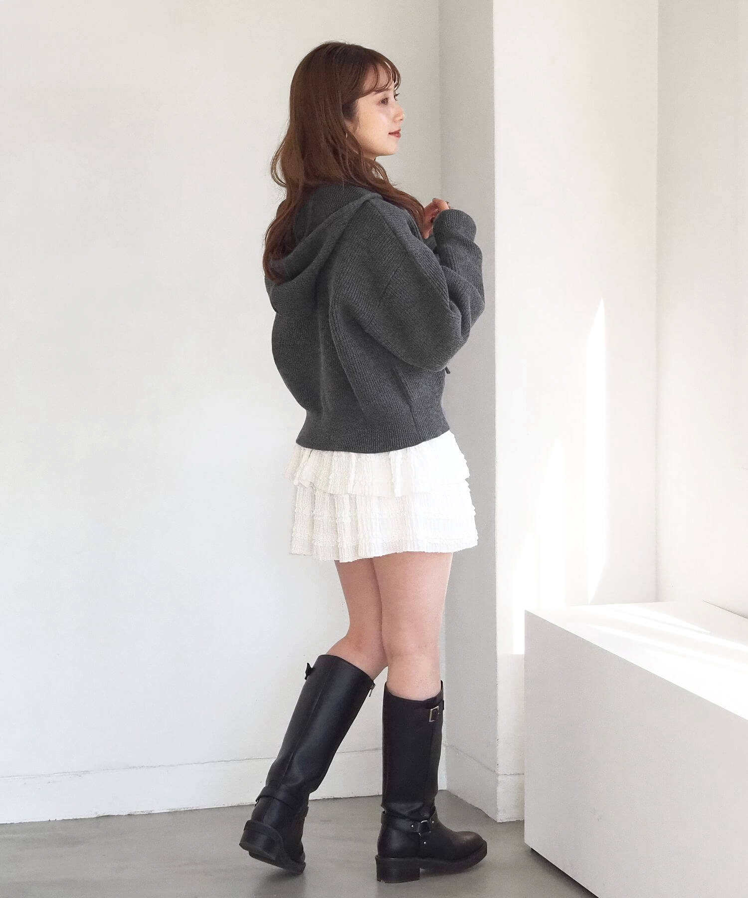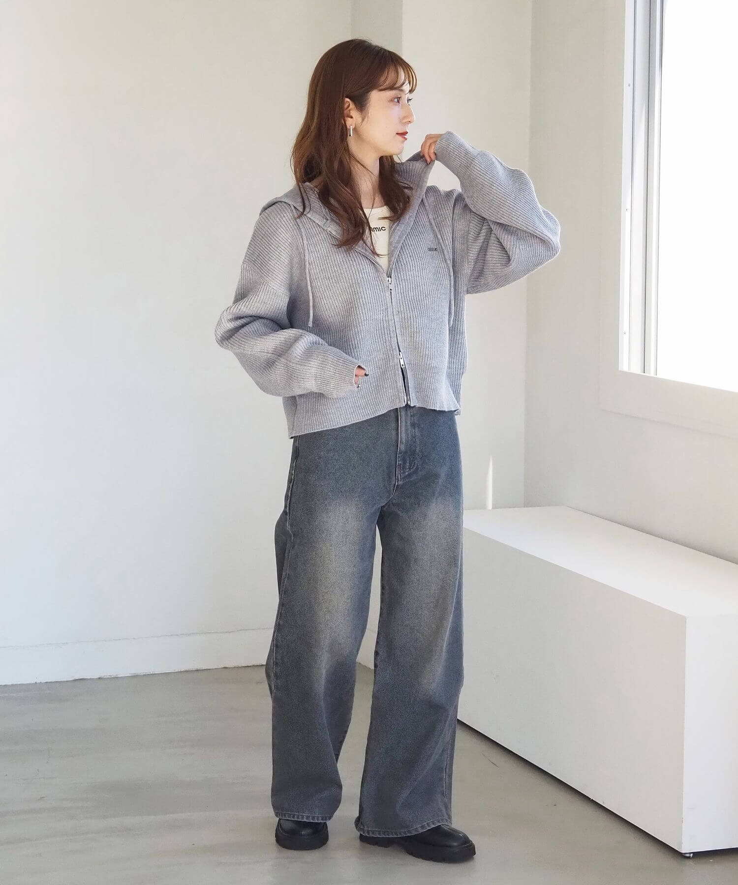 ・プレート付きが今年らしいニット素材のジップパーカーです。