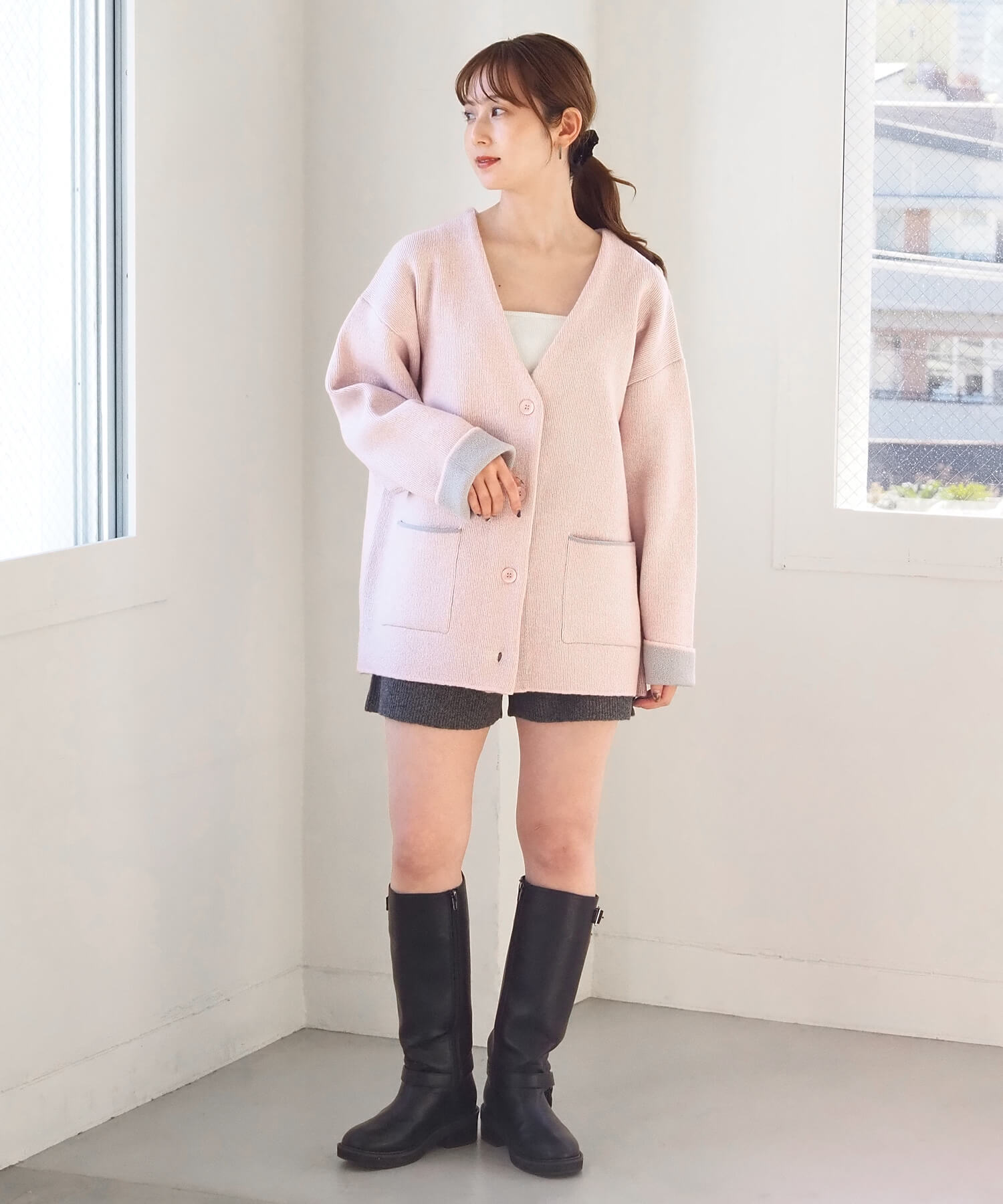 ・袖を伸ばしてシンプルな着こなしも楽しめます。