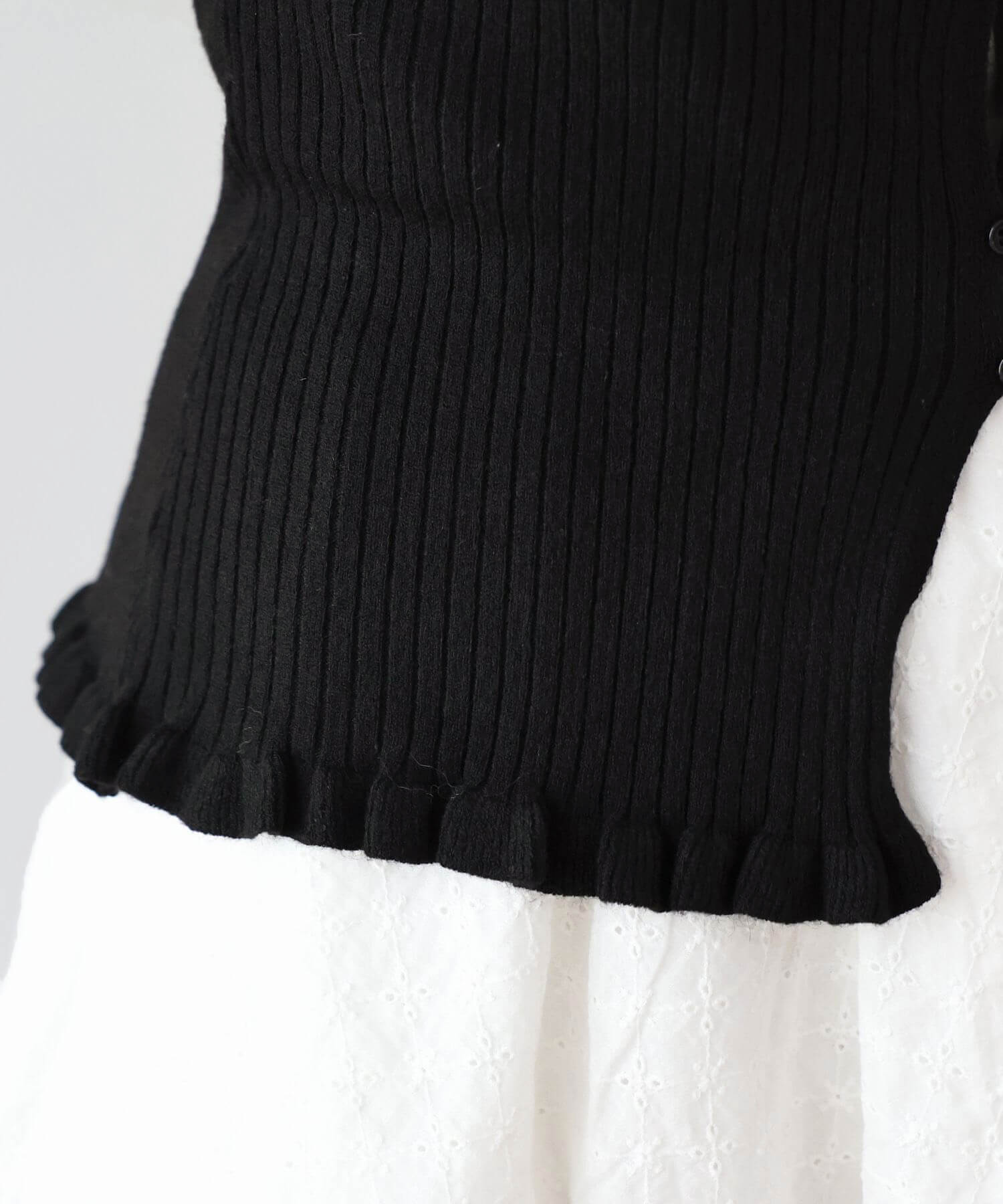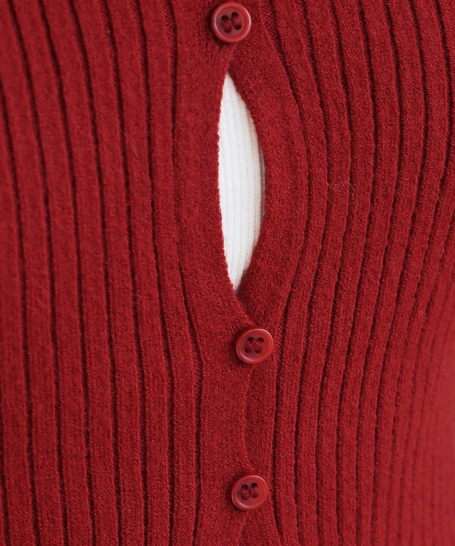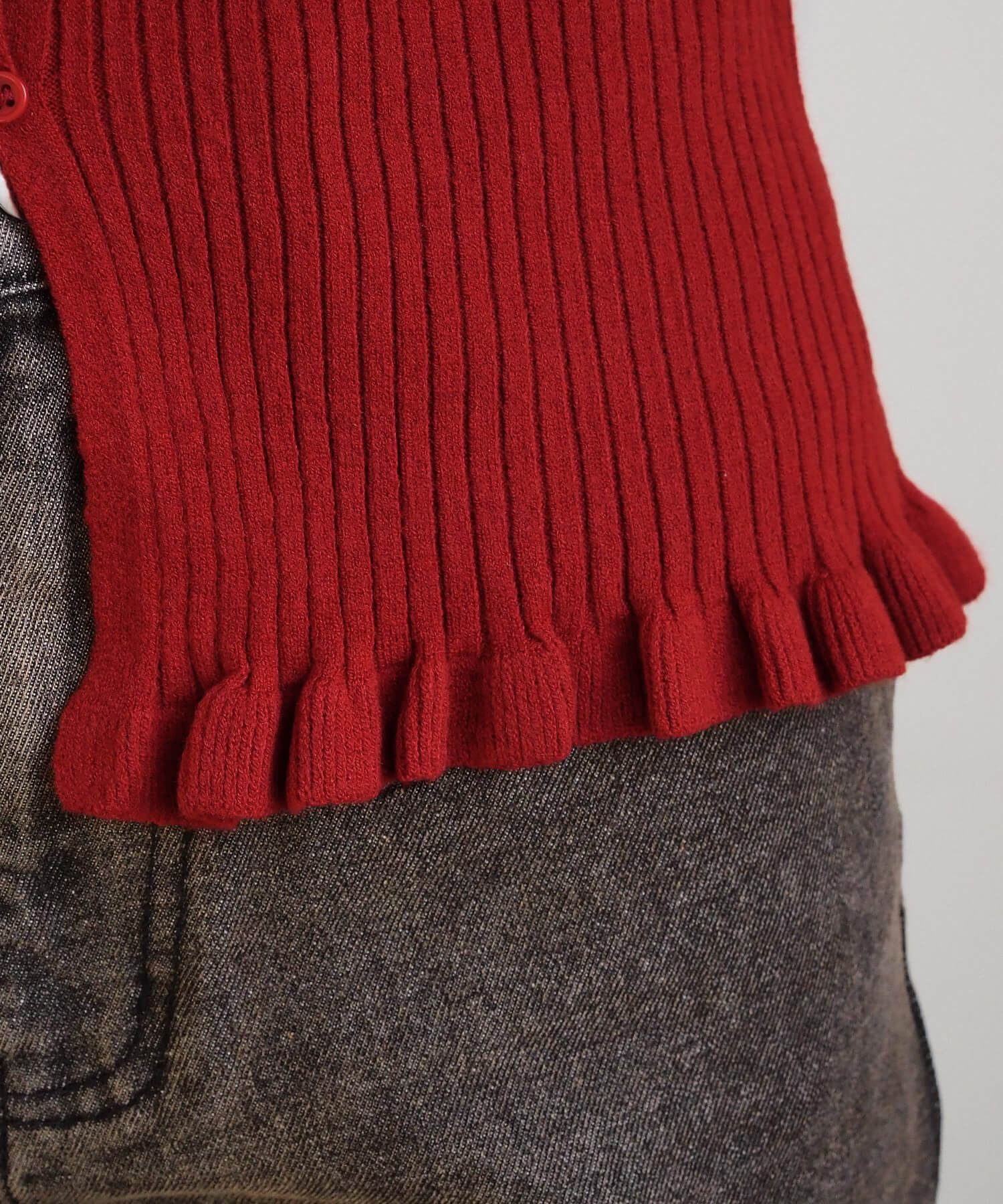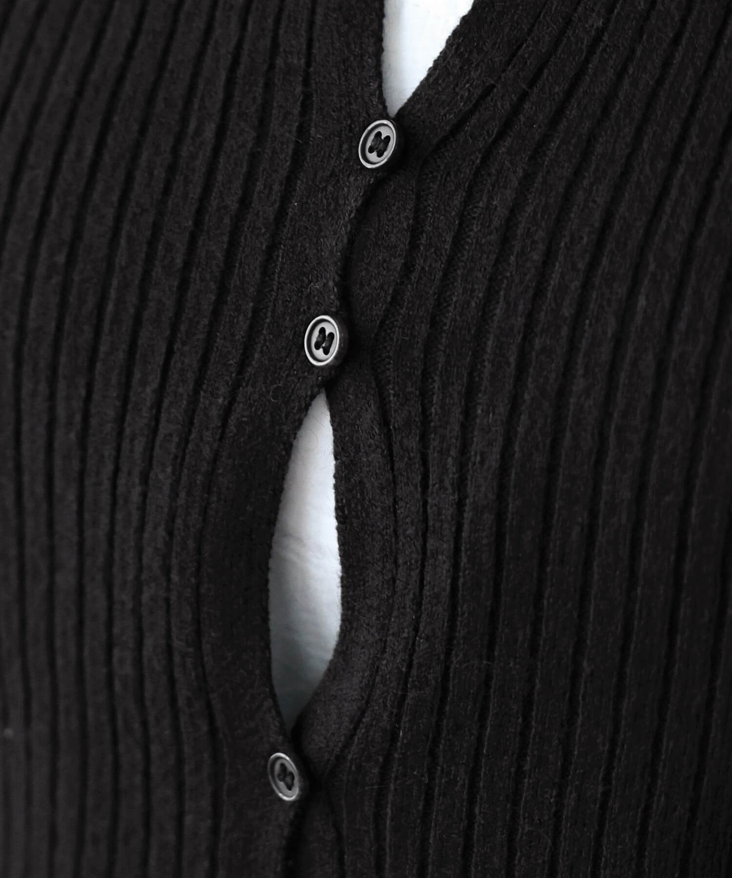 ・ランダムに配置されたボタンが女性らしい抜け感を演出するリブニットカーディガンです。