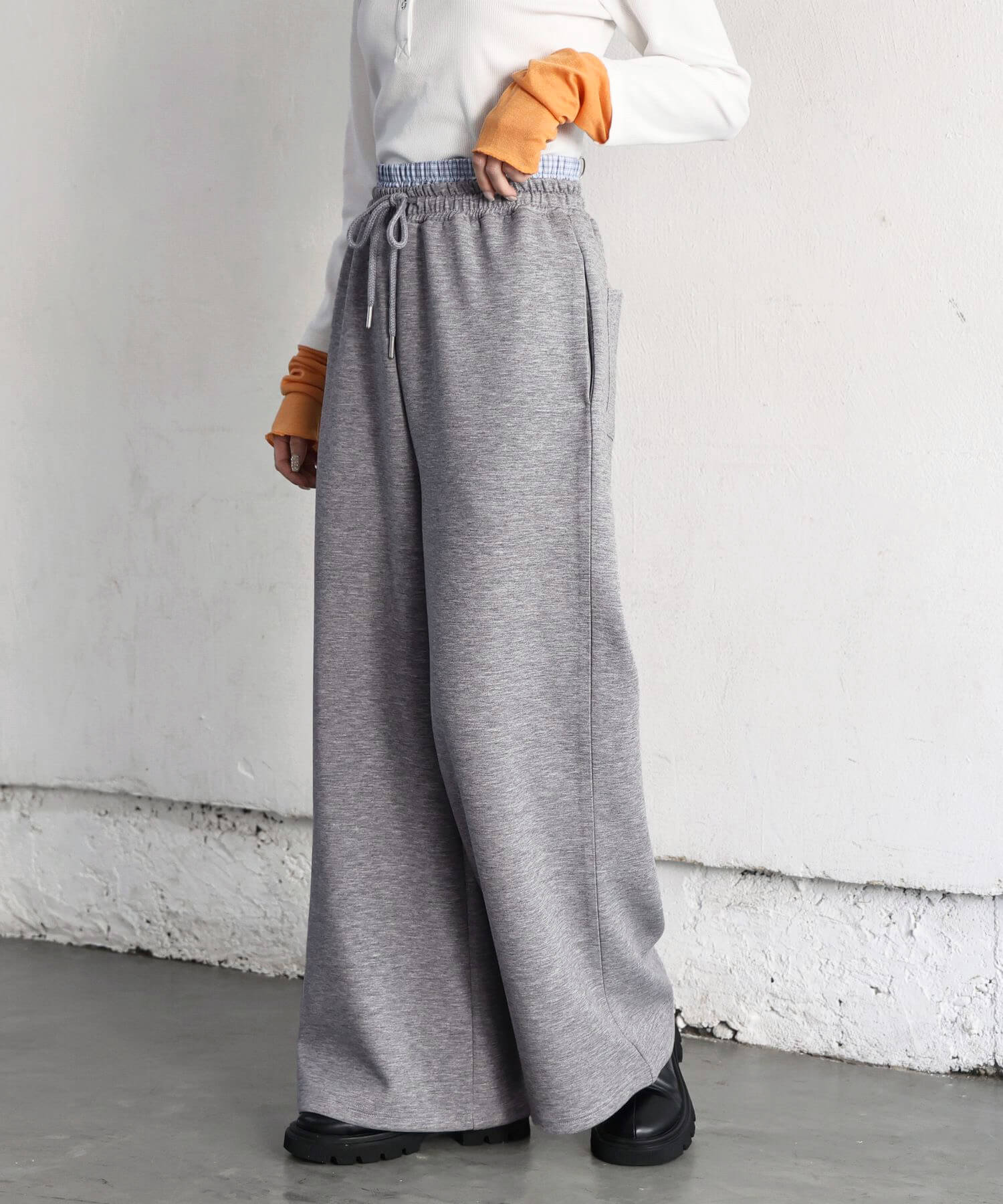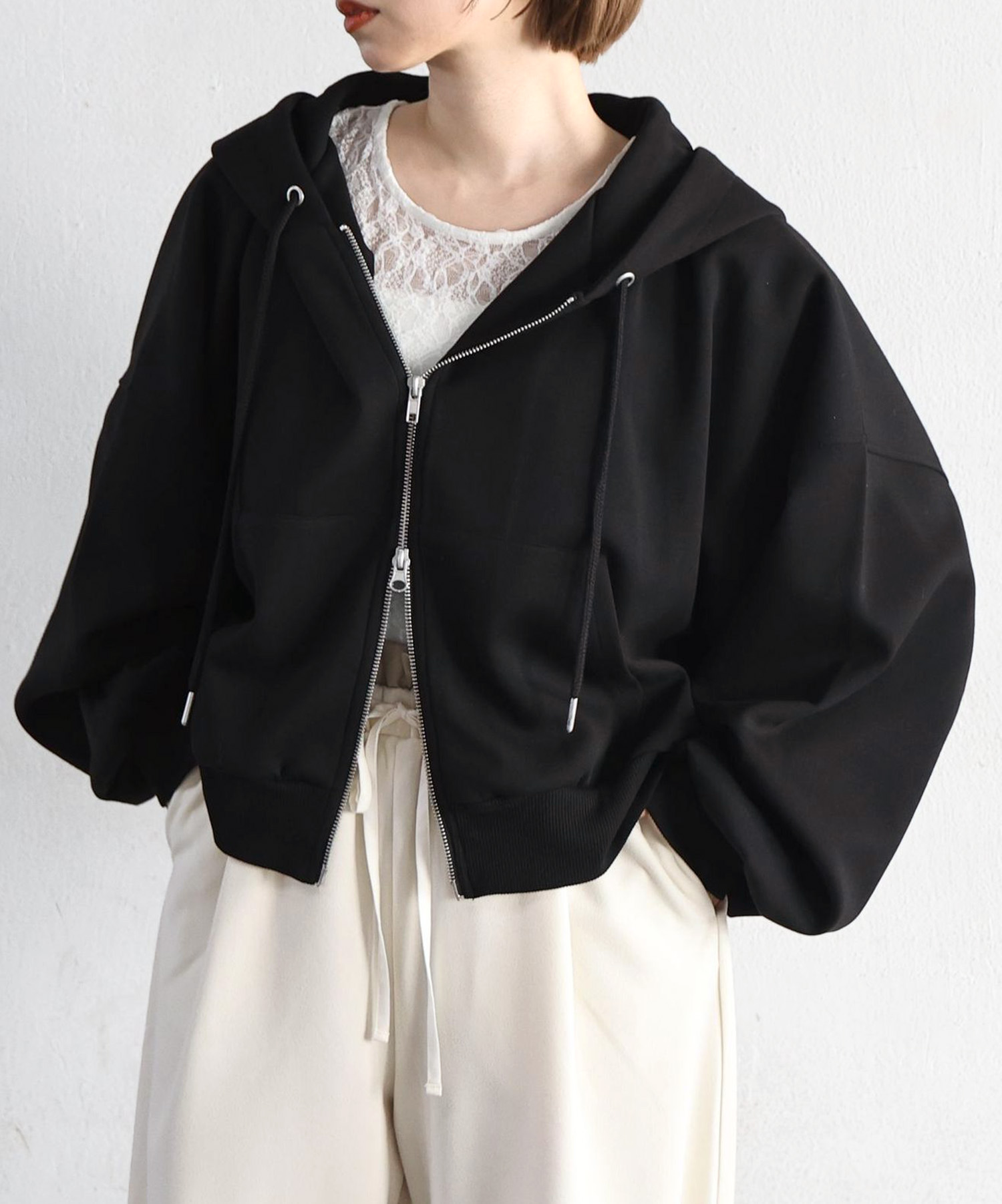 ・ドローコードで裾を絞れるので、2wayのシルエットで着用できます。