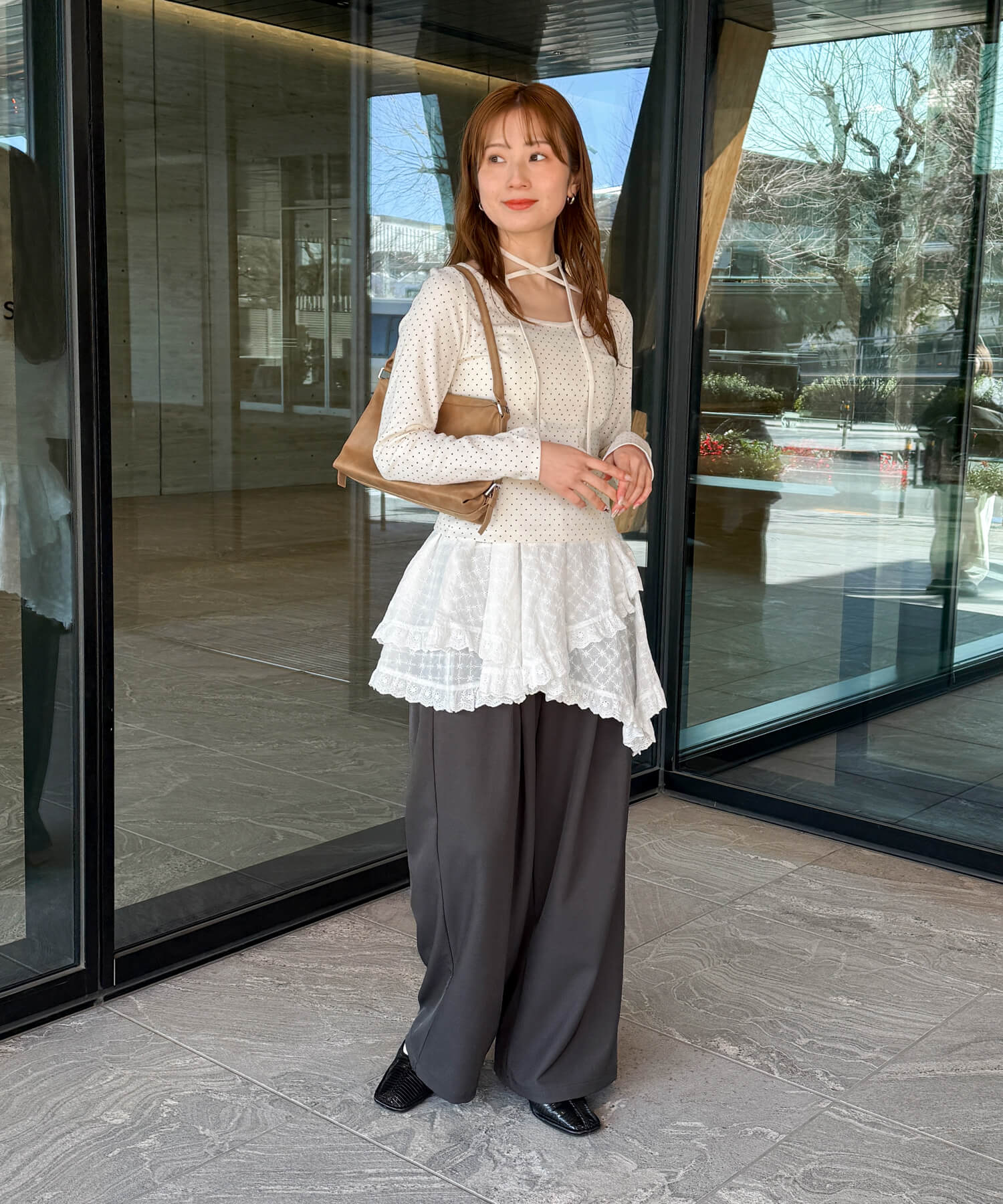・すっきり見えするデザインなので、トレンドのワイドパンツと好相性です。