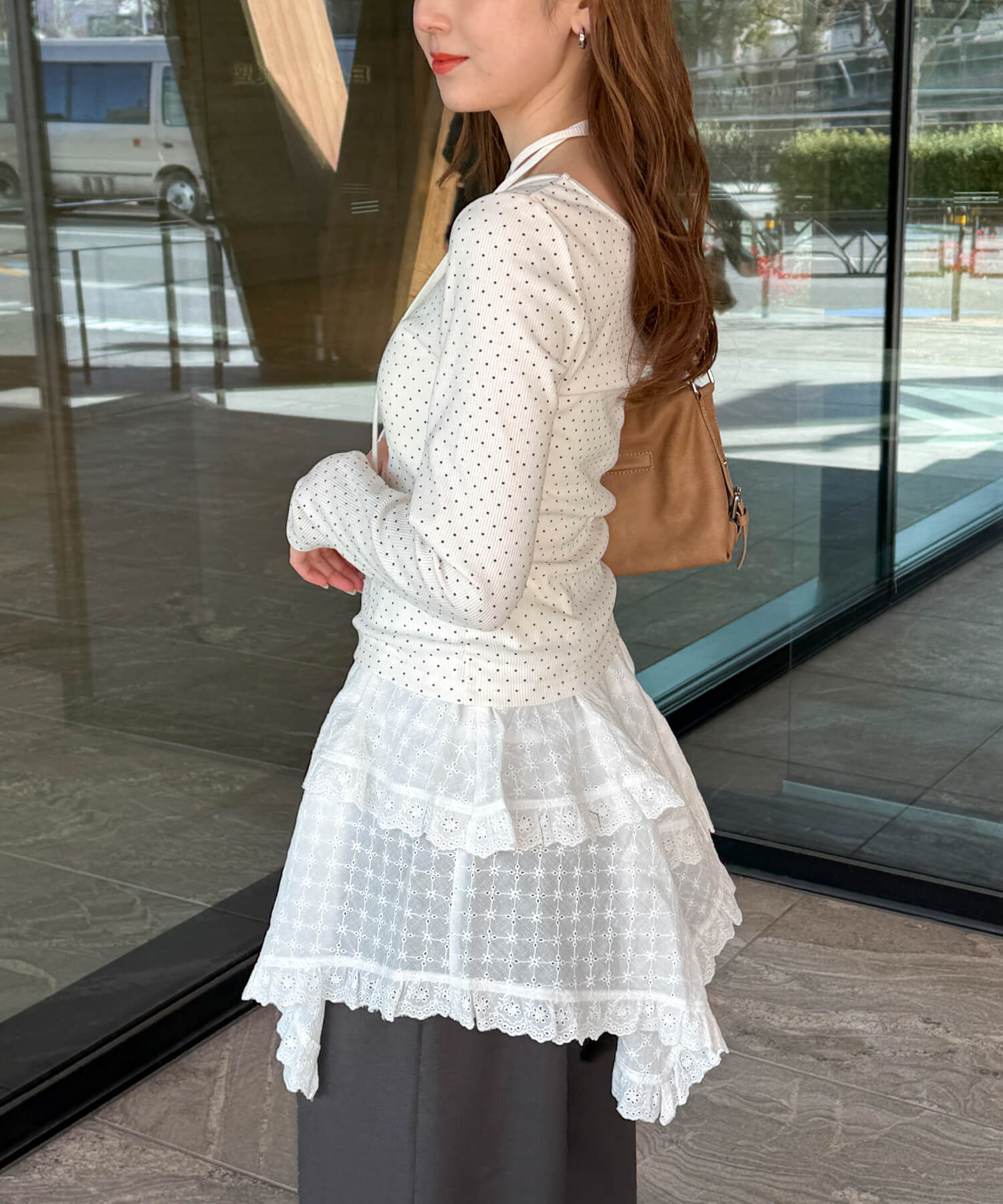 ・メインとしてはもちろん、カーディガンやニットプルオーバーのインナーとして、チョーカーを見せるレイヤードコーデもおすすめです。