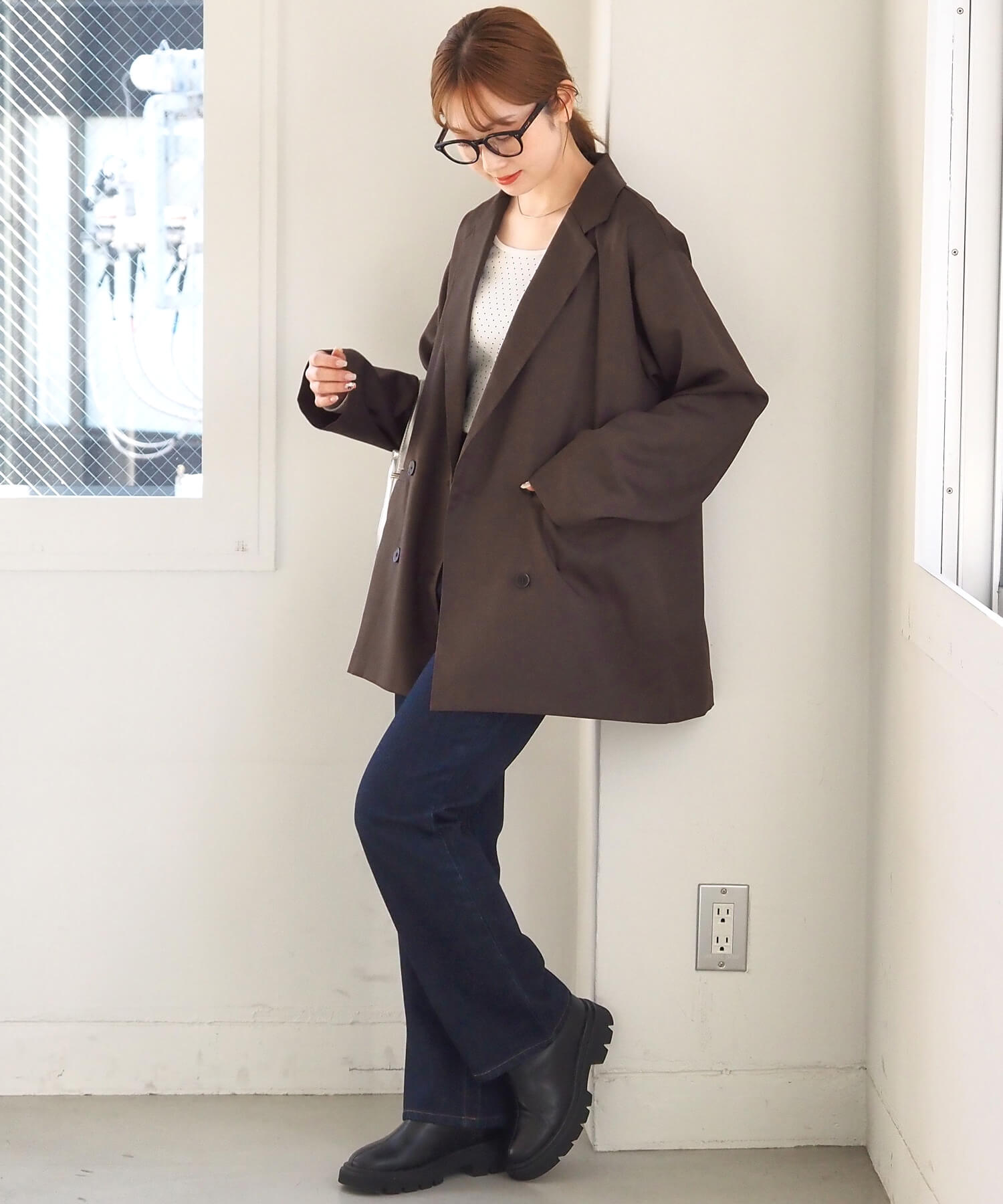 ・ドロップショルダーと長めの袖丈もポイント。メンズライクになりすぎず、自然とこなれ感で出ます。