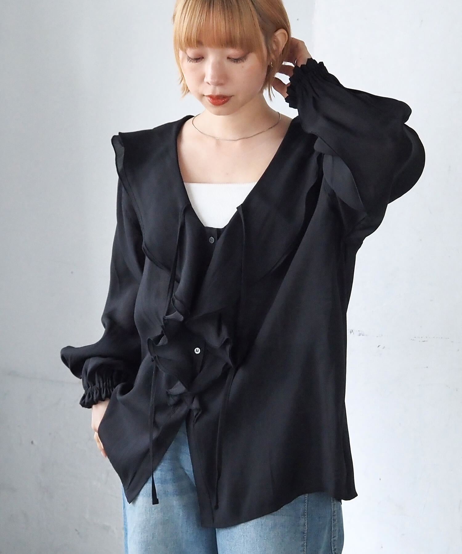 フリルカラーシアーブラウス