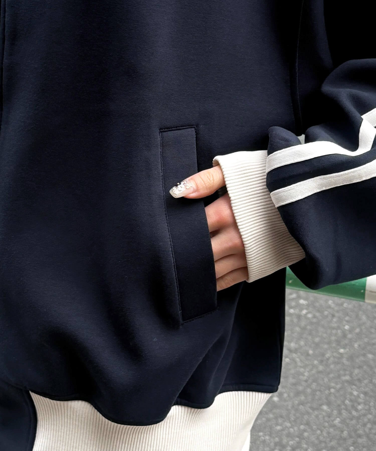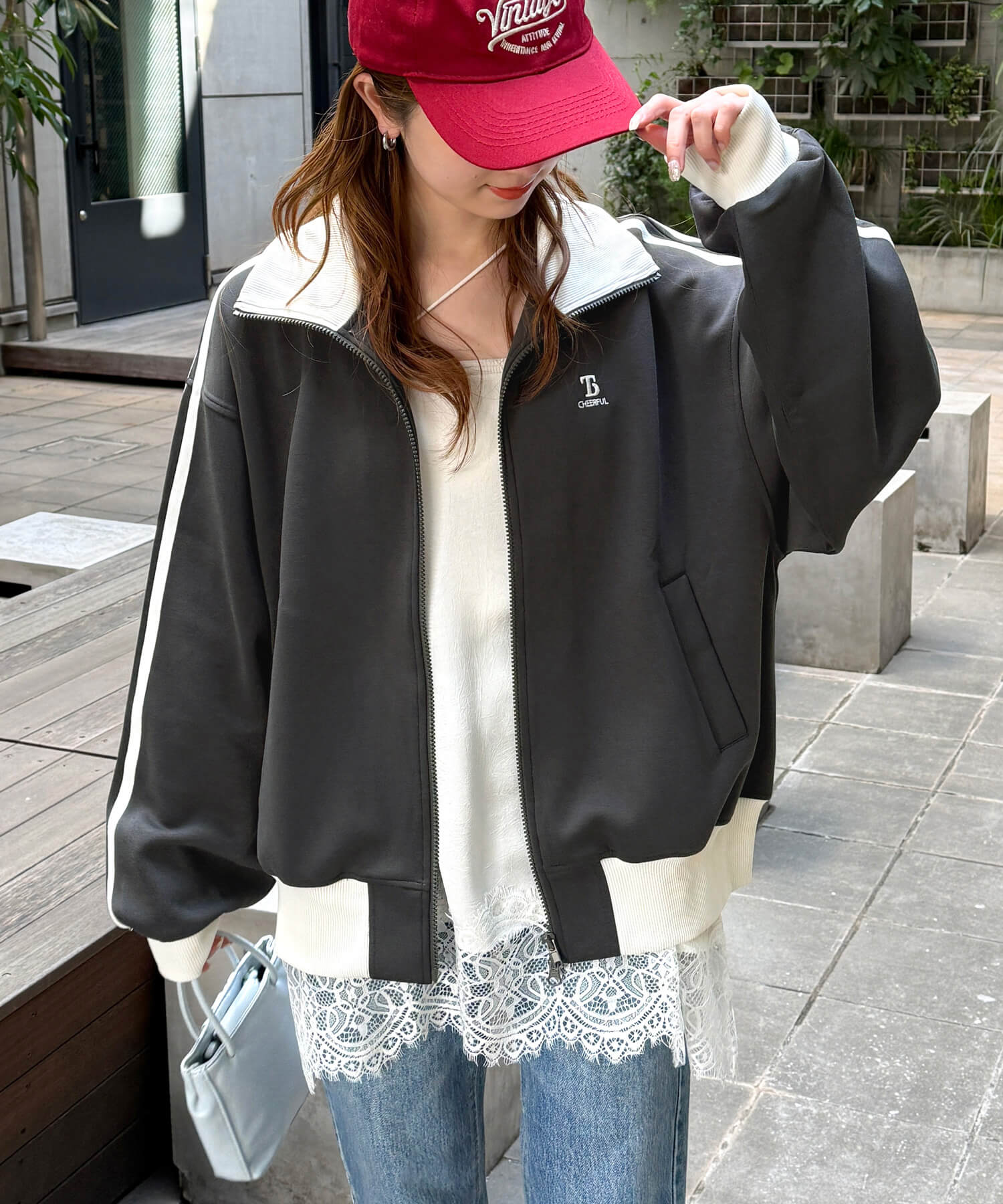 ・コーディネートの主役になるバイカラーのトラックジャケットです。