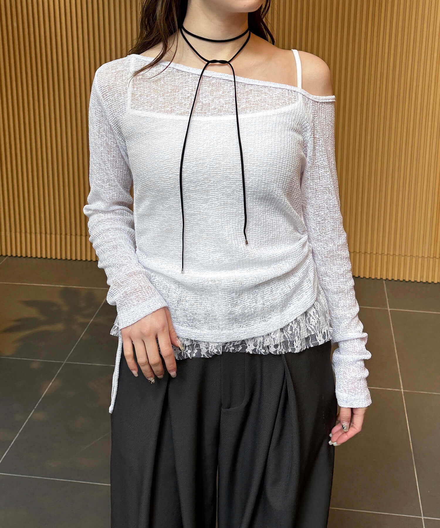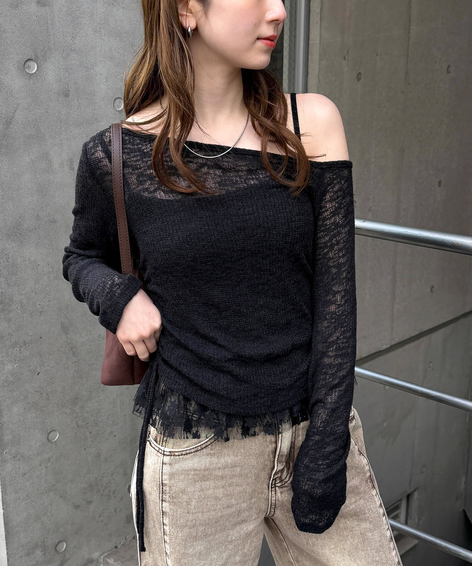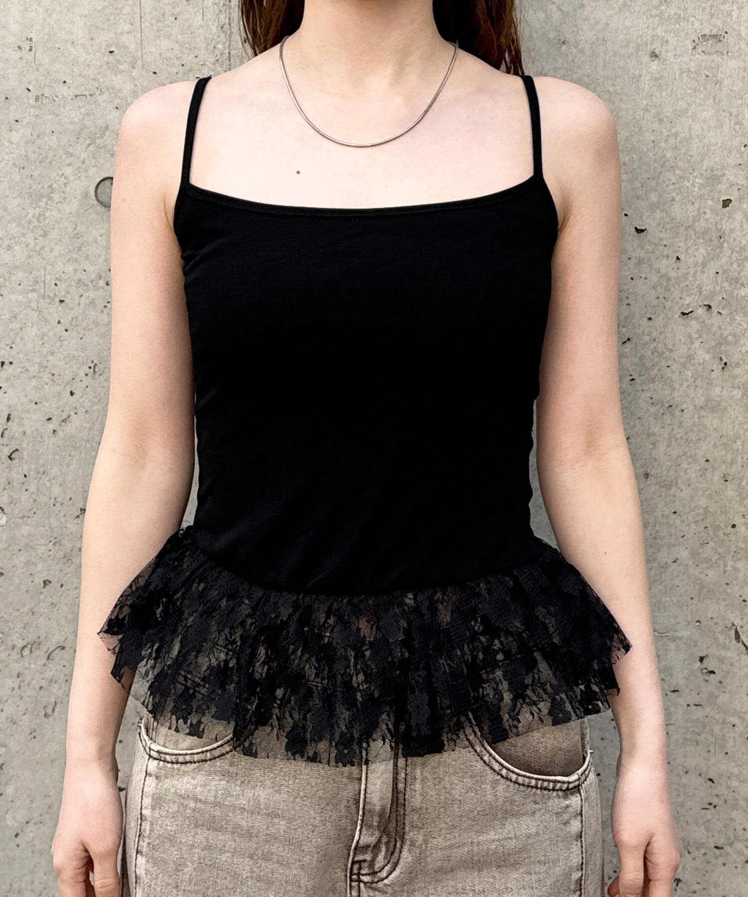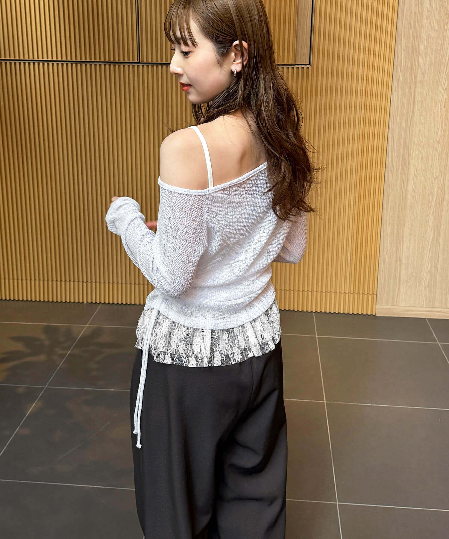 シアーカットソー×裾レースキャミソールのセットアイテム♪