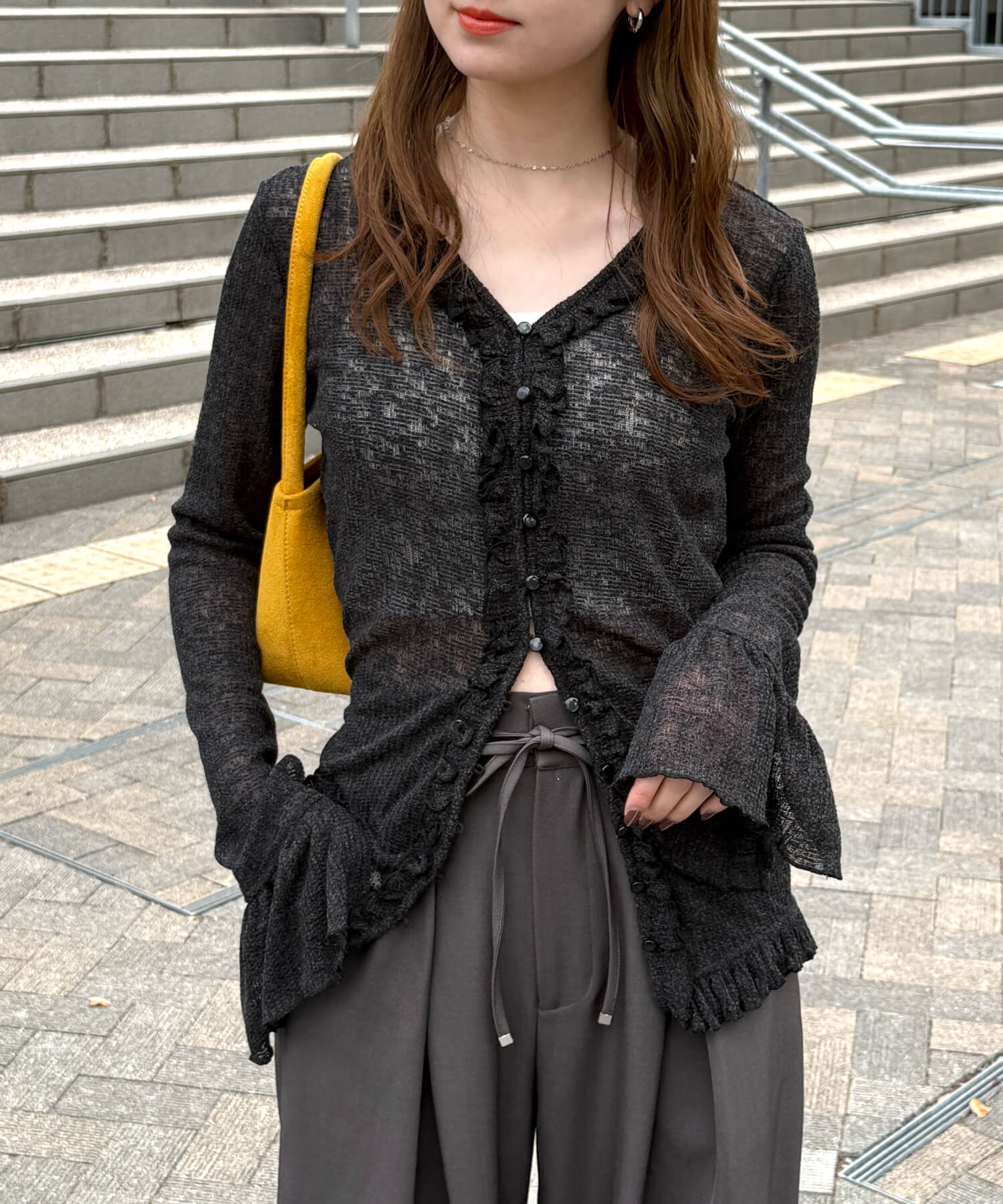 ・フェミニンなフリル使いと甘過ぎないディティールが効いたデザインカーディガンです。